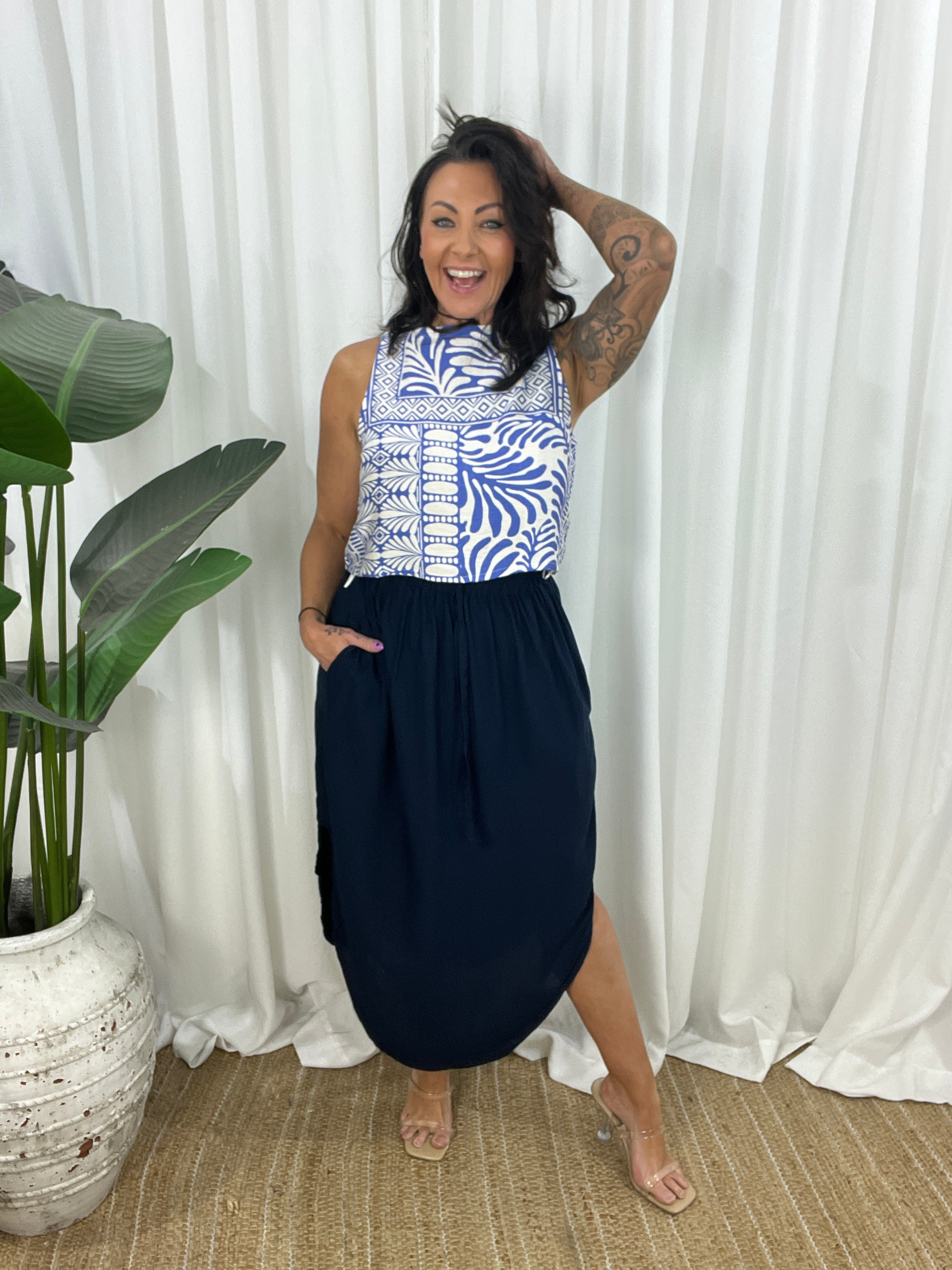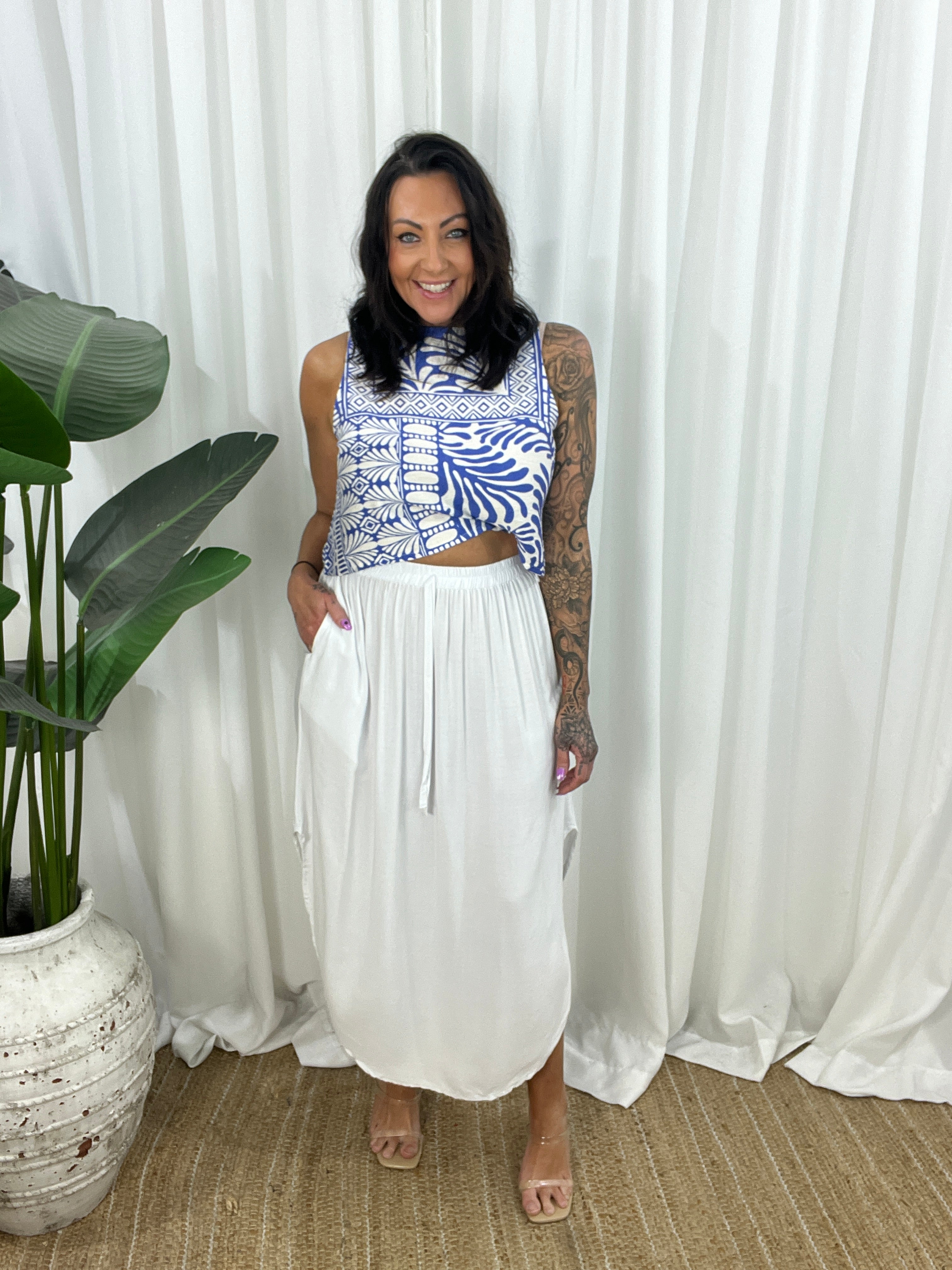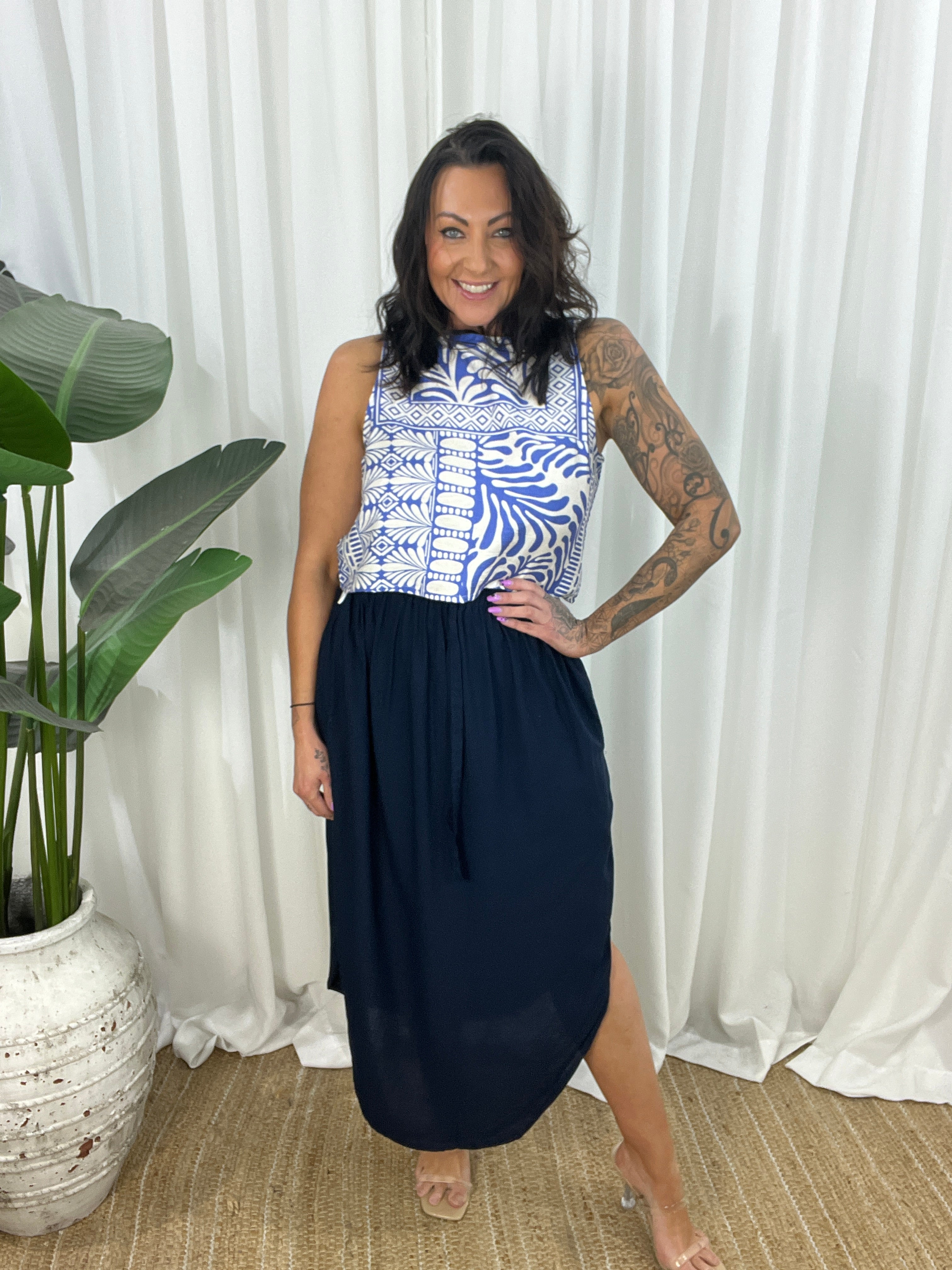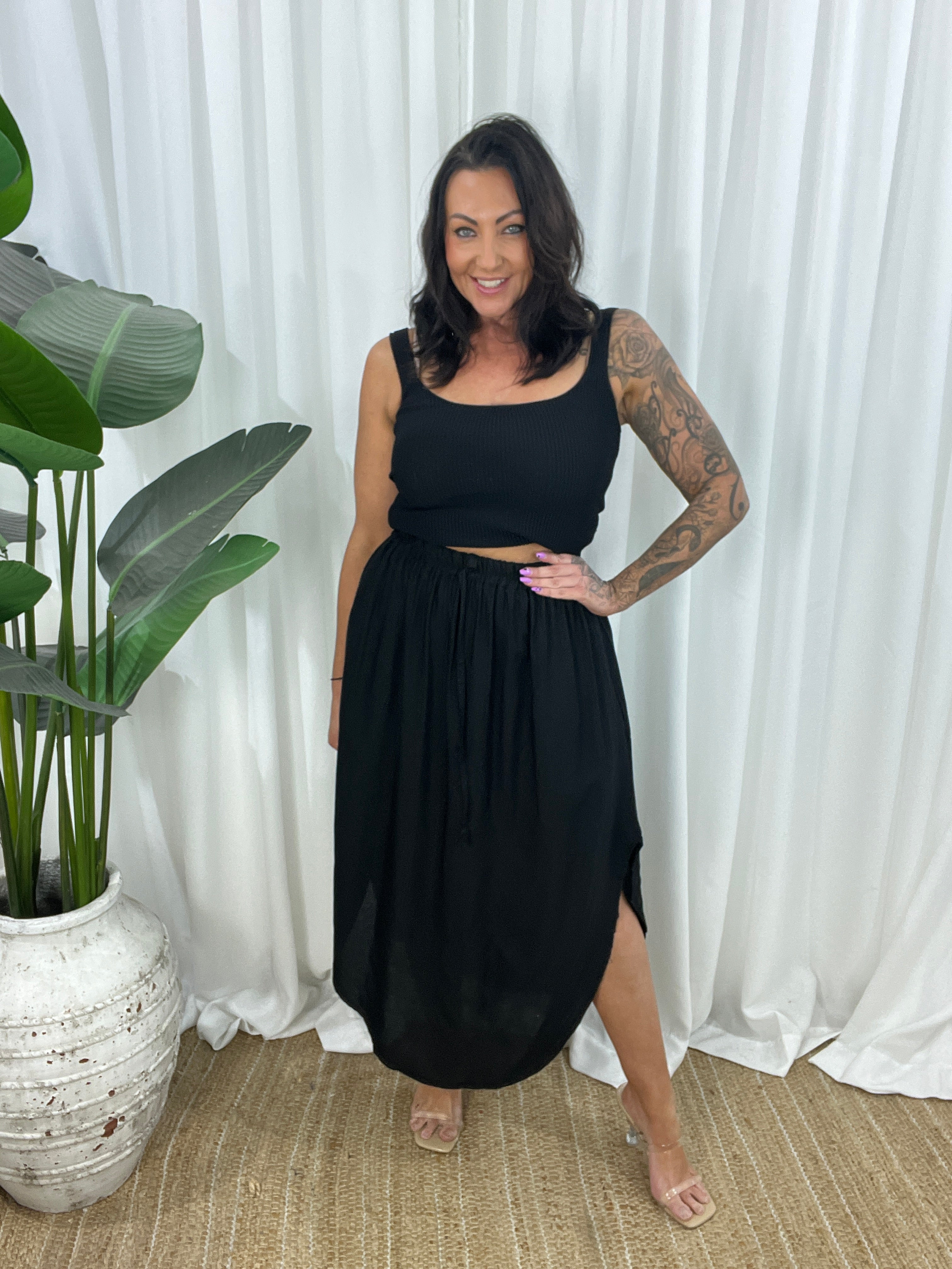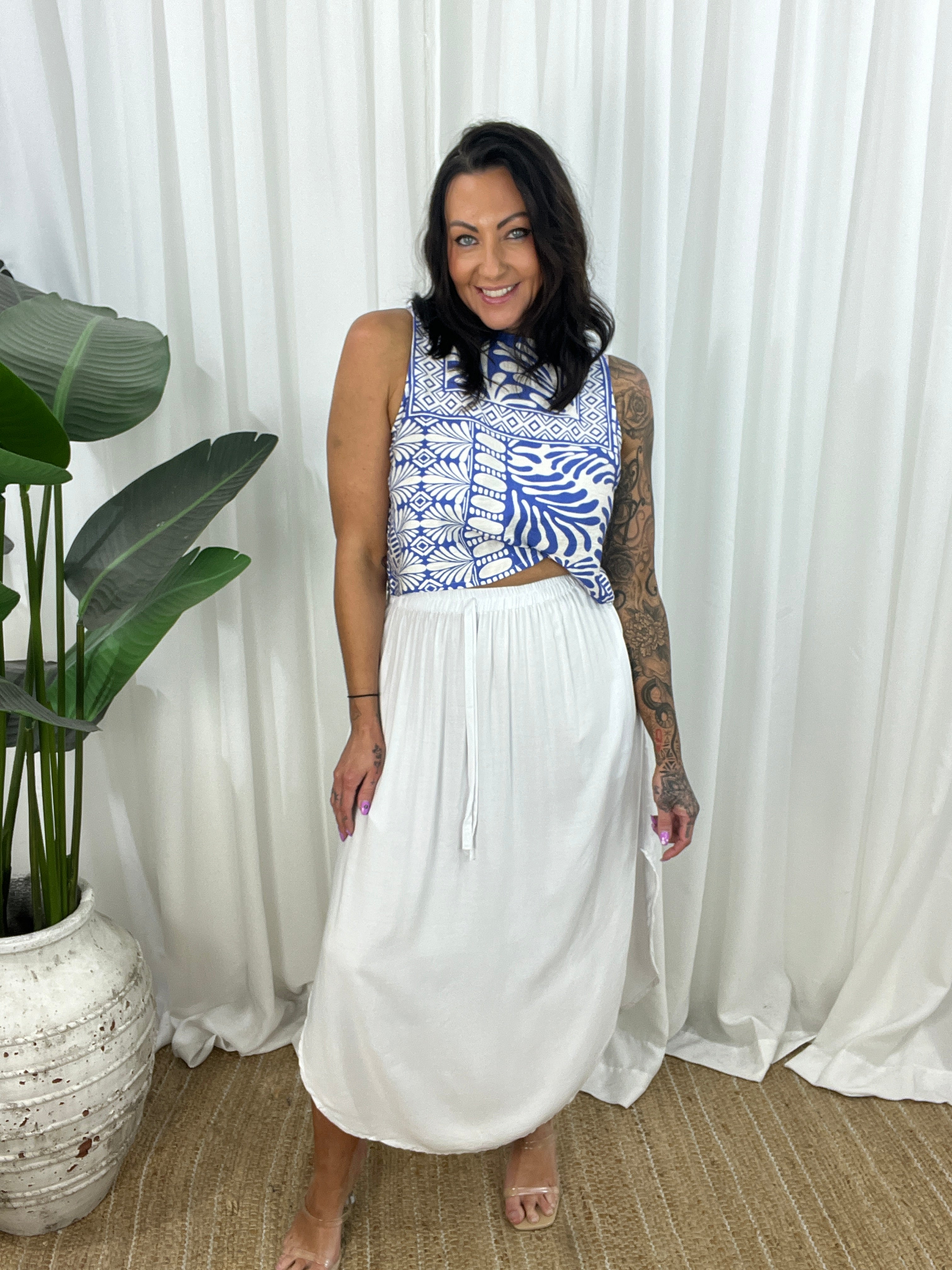 • Warm Weather Chic: Pair the Gemma Skirt with our Serenity Singlet and sandals for a cool and effortless summer look.