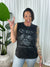 Designed as a sleeveless tank, it boasts small distressed cutouts around the sleeve hem for an edgy touch. This versatile piece pairs effortlessly with jeans, skirts, or even layered under jackets. Whether you're channeling your inner rock star or adding a bit of attitude to your outfit, this is the tank that you need. Rock on with style!