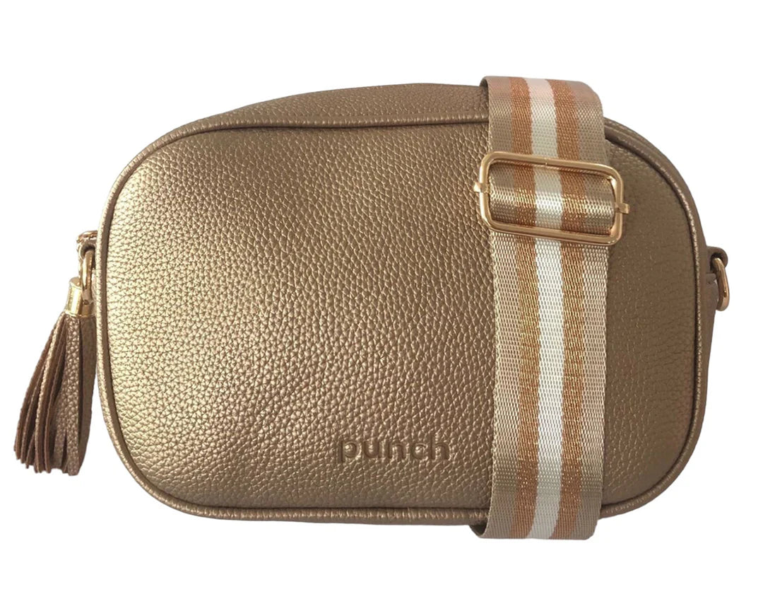 Inside, you’ll find a 4-slot card holder, a zip section making Cross perfect for on-the-go days when you want to travel light. Finished with gold hardware trim, a tassell with a detachable Bronze, gold and white webbing strap, it’s versatile enough to wear crossbody, over the shoulder, or as a clutch.
