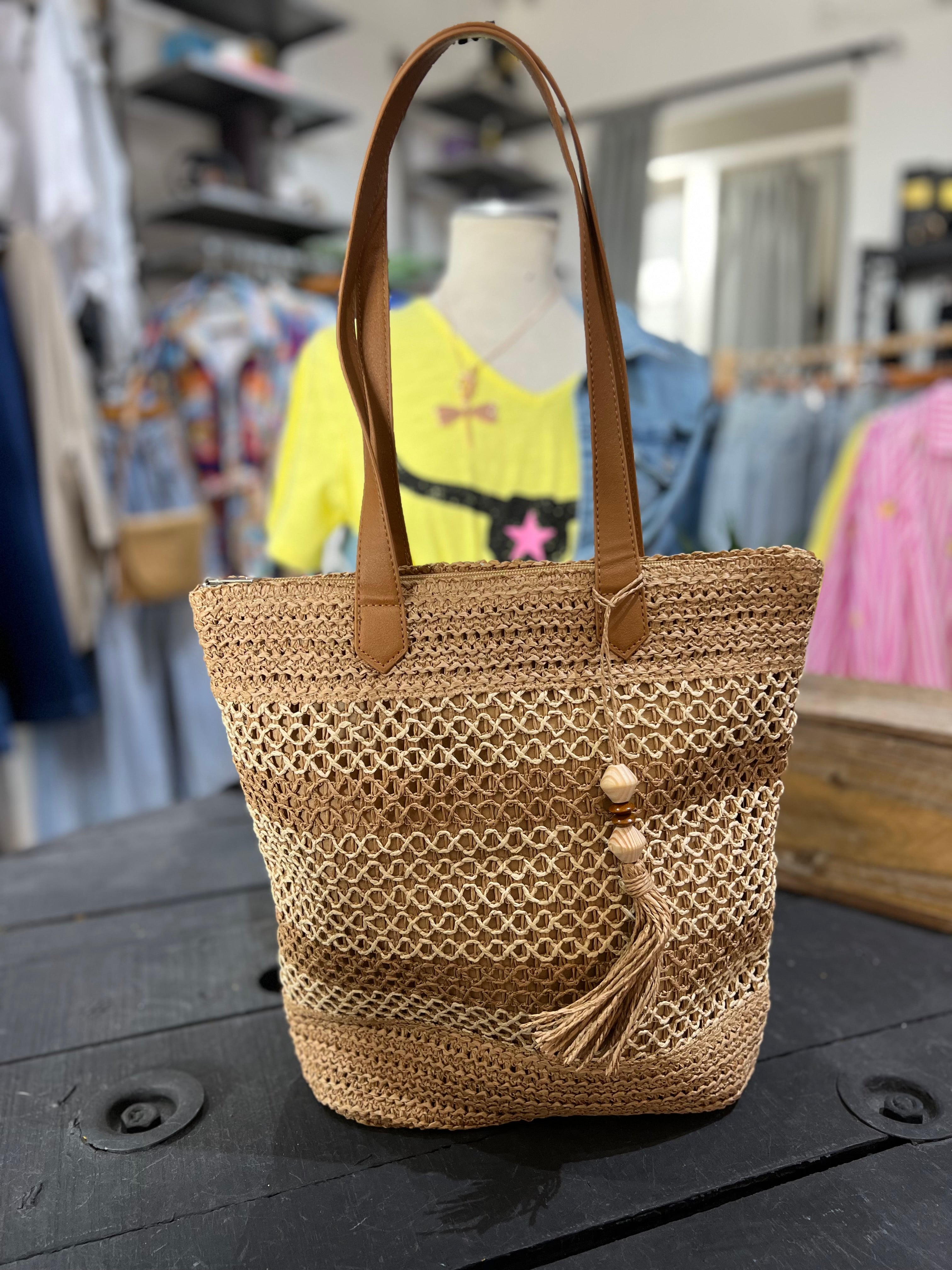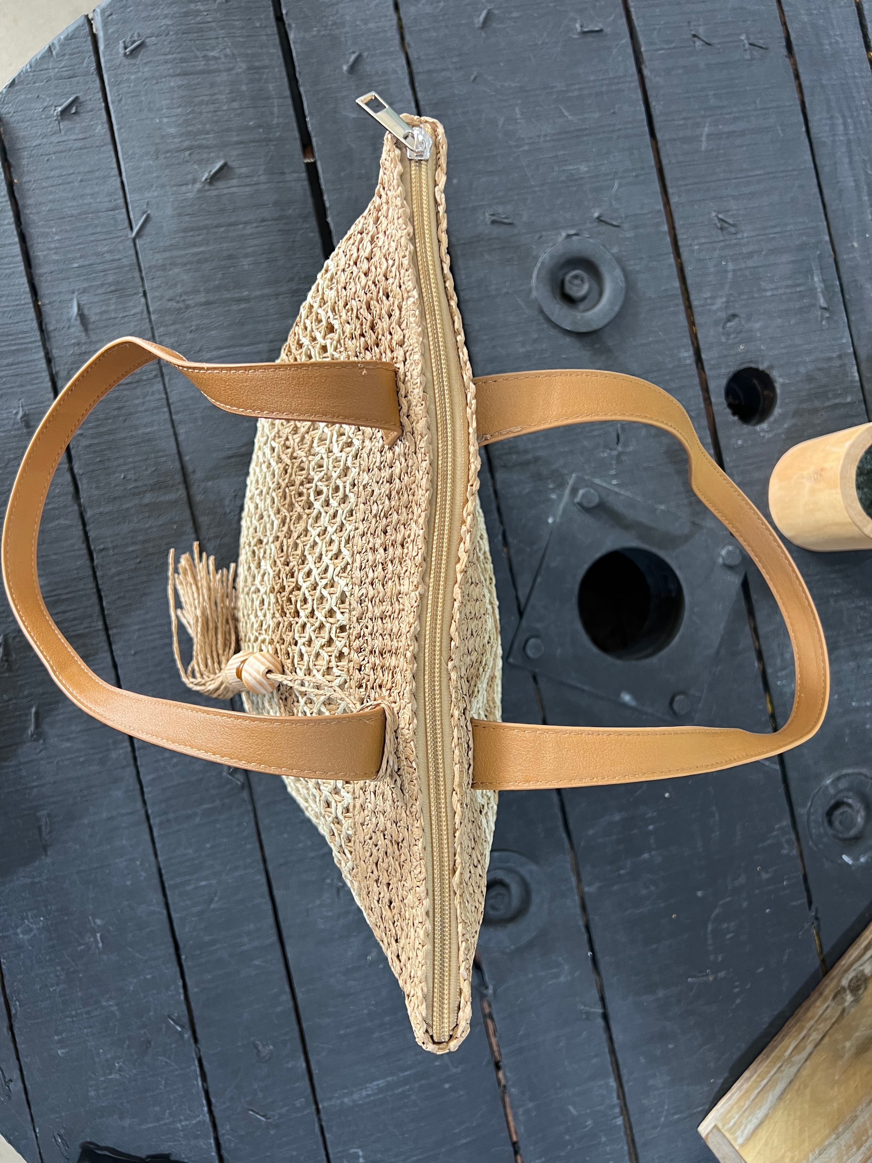 - Design: Zip Closure, Pocket detail in the lined interior. Tassell on handle