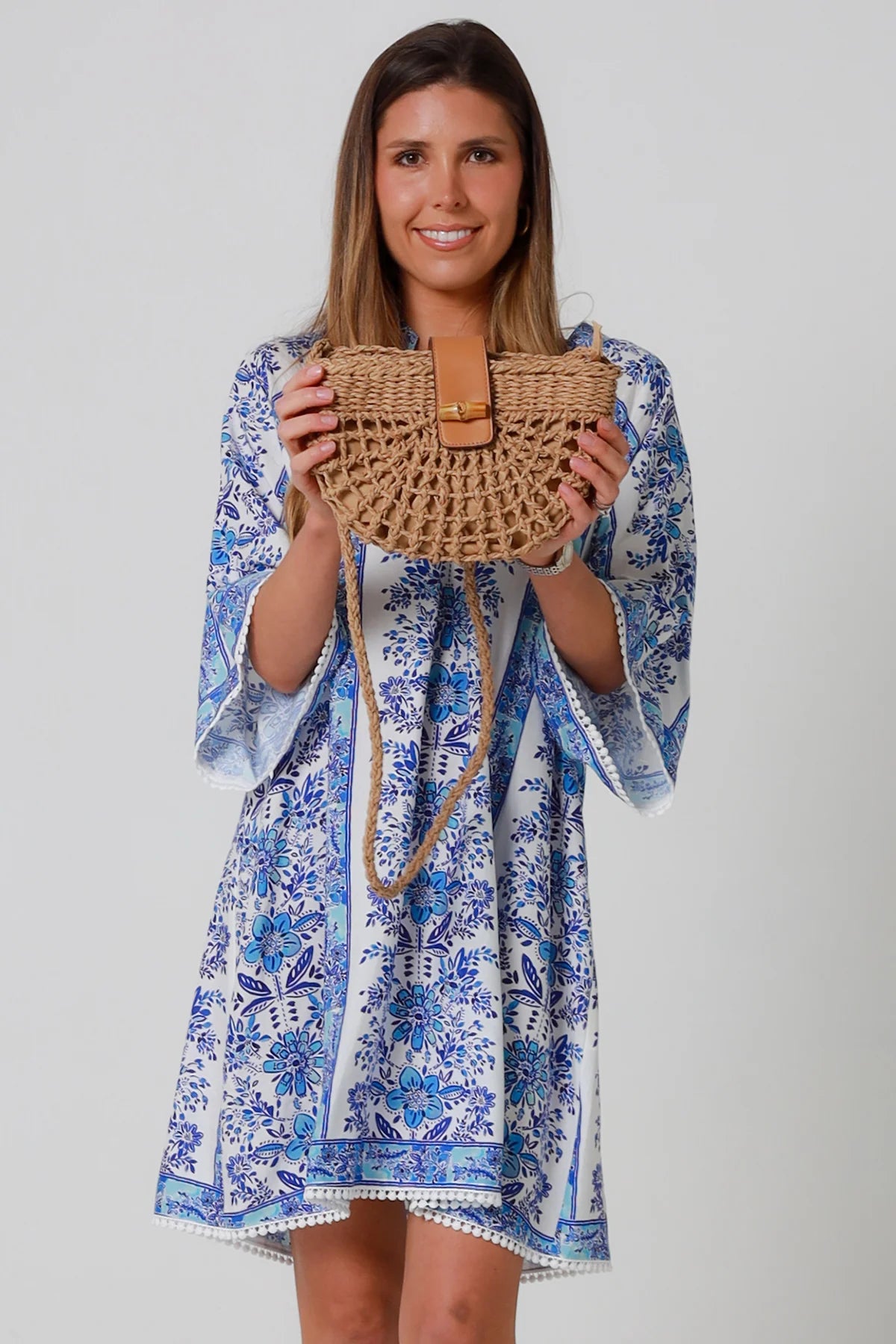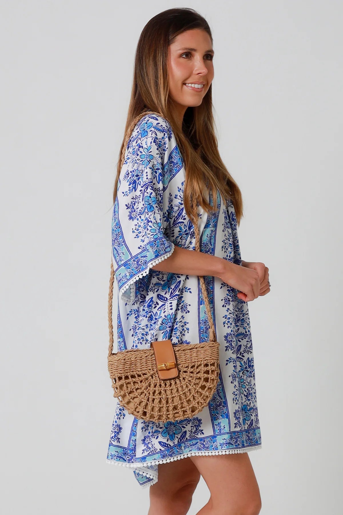 Small in size, big on style the U shape Woven Bag is your go to bag for warm days and effortless charm. Crafted with a natural rattan-style finish, this compact cutie features a leather-look flap and wood look closure.