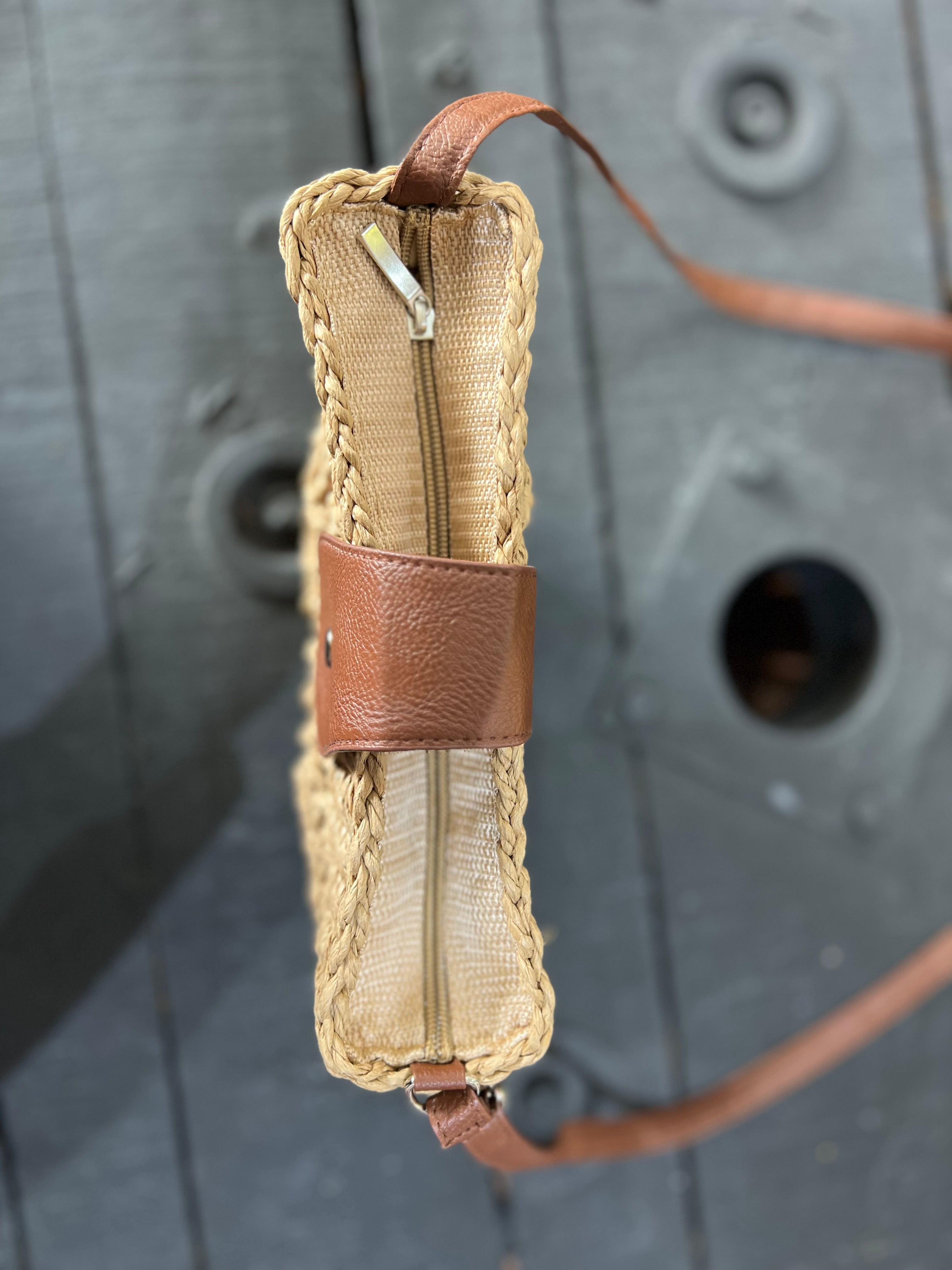 - Design: Flap with metal button and Zip Closure, Pocket detail in the lined interior.