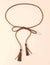 Introducing your versatile fashion piece: the Plaited Rope Tie Belt with Tassels. This tan-colored, thin belt is perfect for adding a boho-chic touch to any outfit. Its elegant design allows it to double as a tied necklace, offering endless styling possibilities.