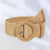 • Gorgeous woven stretchy straw details with round wood look buckle