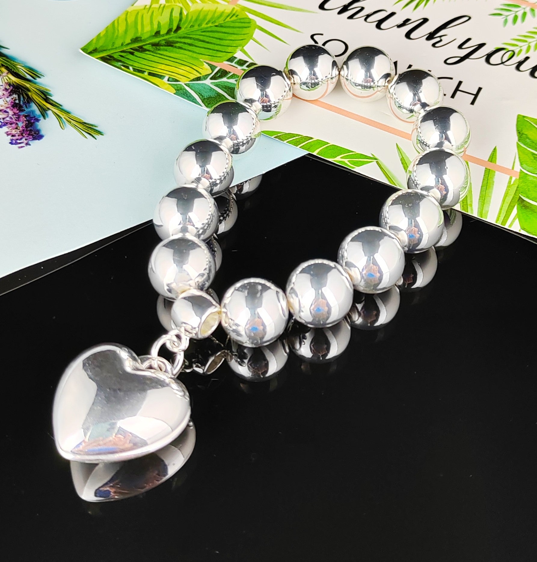 This Chunky bracelet blends sentiment with style. Featuring a large ball link design its on a stretchy elastic for ease of getting on, it’s adorned with a love heart charm that add a romantic touch to your everyday look. Available in silver and rose gold, it’s a versatile piece that layers beautifully or stands out on its own.