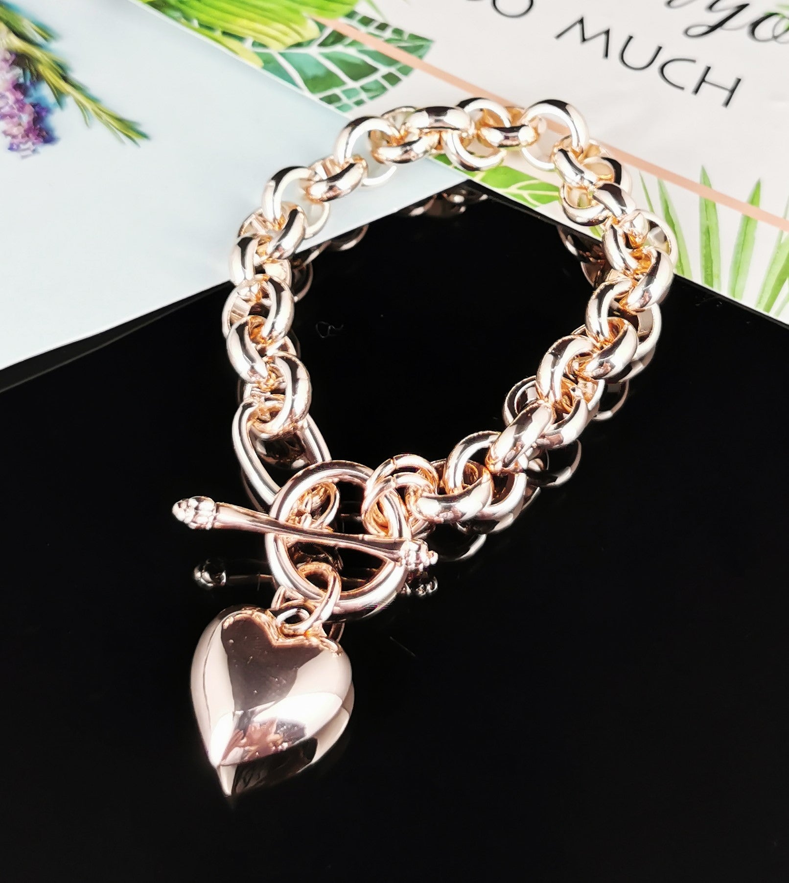 Bold, sculptural, and effortlessly cool, the Dainty Heart Bracelet is your new statement piece with a twist. Designed as costume jewellery, it features a sleek link chain and a T-bar closure, finished with heart charm that adds organic elegance to its modern silhouette.