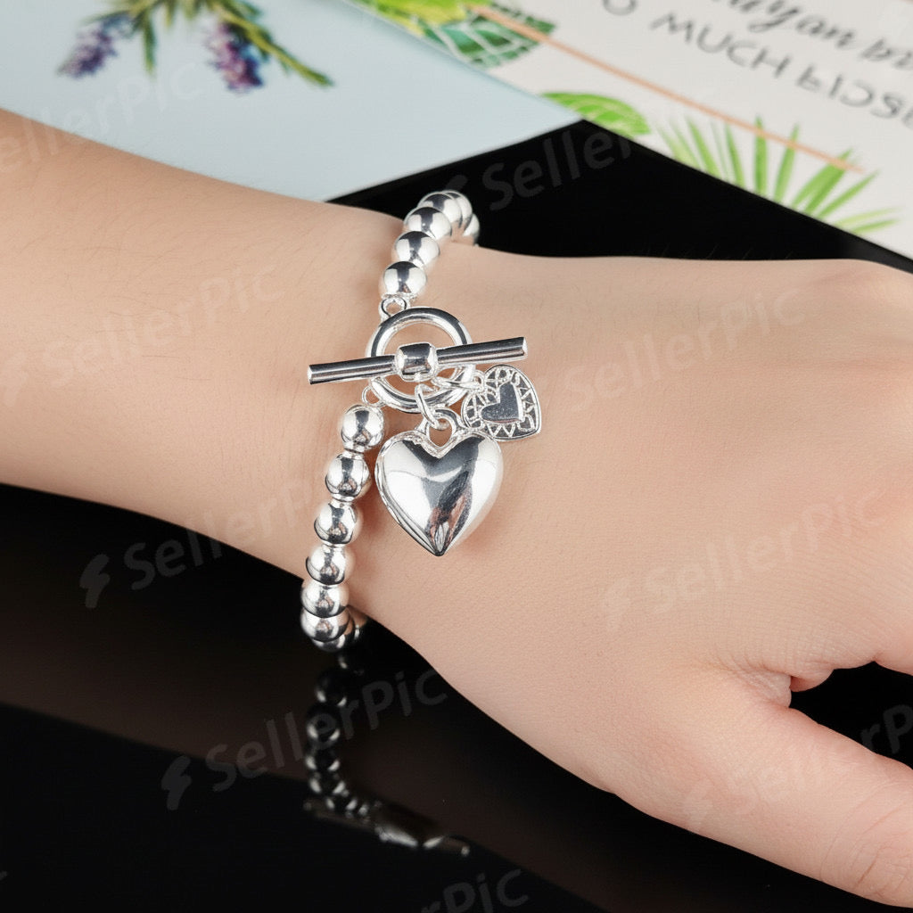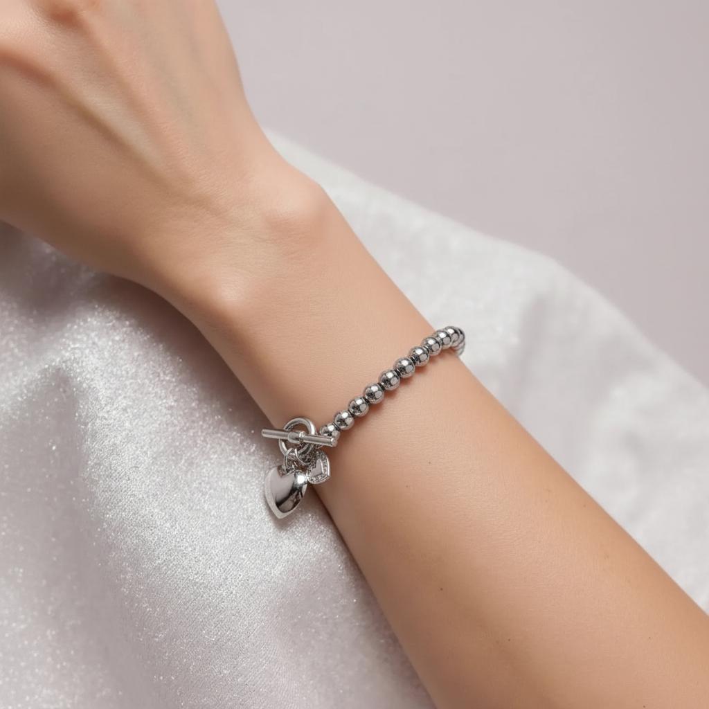 A delicate reminder that love always matters—this charming bracelet blends sentiment with style. Featuring a ball chain design and a sleek T-bar closure, it’s adorned with two love heart charms that add a romantic touch to your everyday look. Available in gold, silver, and rose gold, it’s a versatile piece that layers beautifully or stands out on its own.