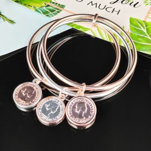 Minimalist with a touch of vintage charm, the Three Coin Bangle is a combination of three circular bracelets each featuring a single coin charm that adds subtle sophistication. With a 6.7 cm inner diameter, it offers a comfortable fit for everyday wear. Available in gold, silver, and rose gold, this piece is perfect for stacking or making a quiet statement on its own.