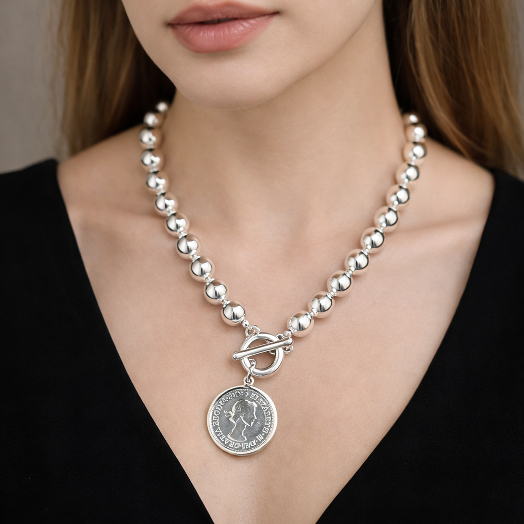 - Solid-Look Coin Pendant: Sculptural and sweet