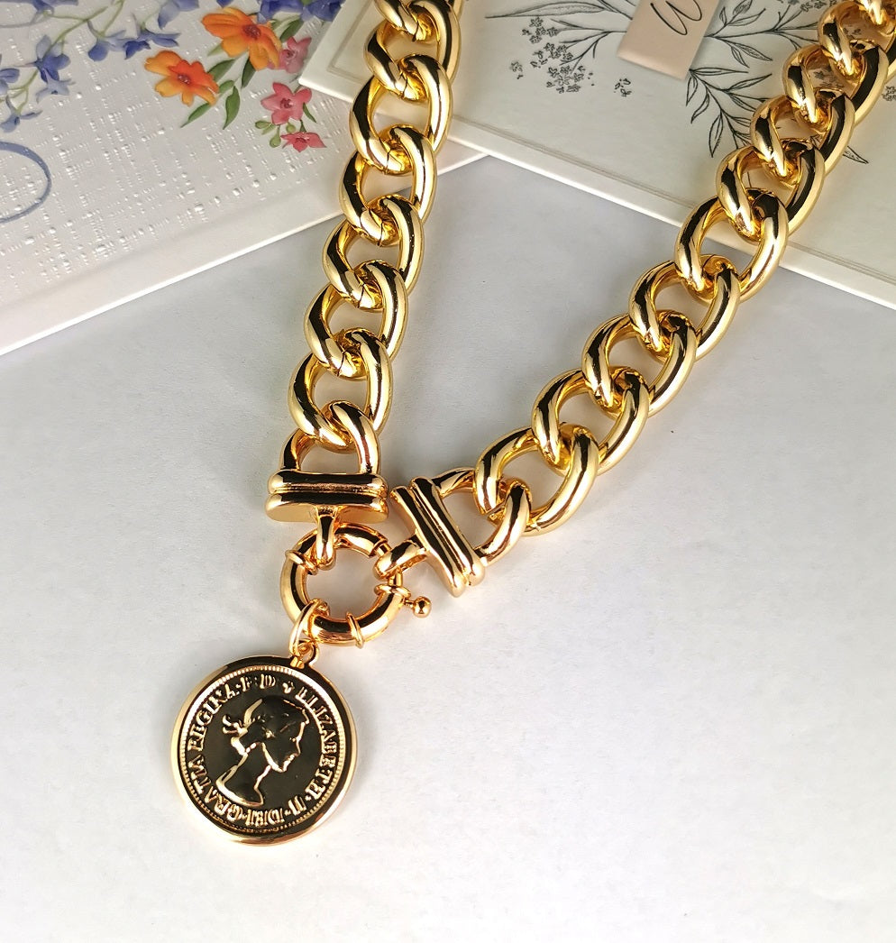 Sweet with a touch of strength—the Lucre Coin Necklace is a midline-length piece that brings effortless charm to any outfit. Suspended from a link chain, it features a front ring spring closure and a solid-look coin pendant with mixed metal edge that adds just the right amount of statement to your neckline.