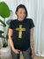 Our Gorgeous exclusive Millie n Me Gold Leopard designed tee is a statement you will want to wear over and over. A stretchy tee boasting a feminine leopard gold foil cross in the centre. She has a Scoop tee design with a round cut neck and is perfect for day to day wear. Our exclusive designs have a M on the back top of tee as an extra little bonus.