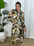 A dress that does it all with elegance, ease, and a touch of playful charm. The Gwen Dress is a midi-length shirt-style stunner, designed to flatter with its empire waist, collar detail, and button-down front. Crafted in a black base fabric with a gemstone-inspired abstract print in muted green and tan tones, it’s finished with white piping along the button placket and belt edge for a crisp, elevated touch.