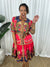 - Design : Button down knee length with adjustable belt. Drop waist. Pockets. Red base with desigher inspired pattern with cheetah print and some pretty roses