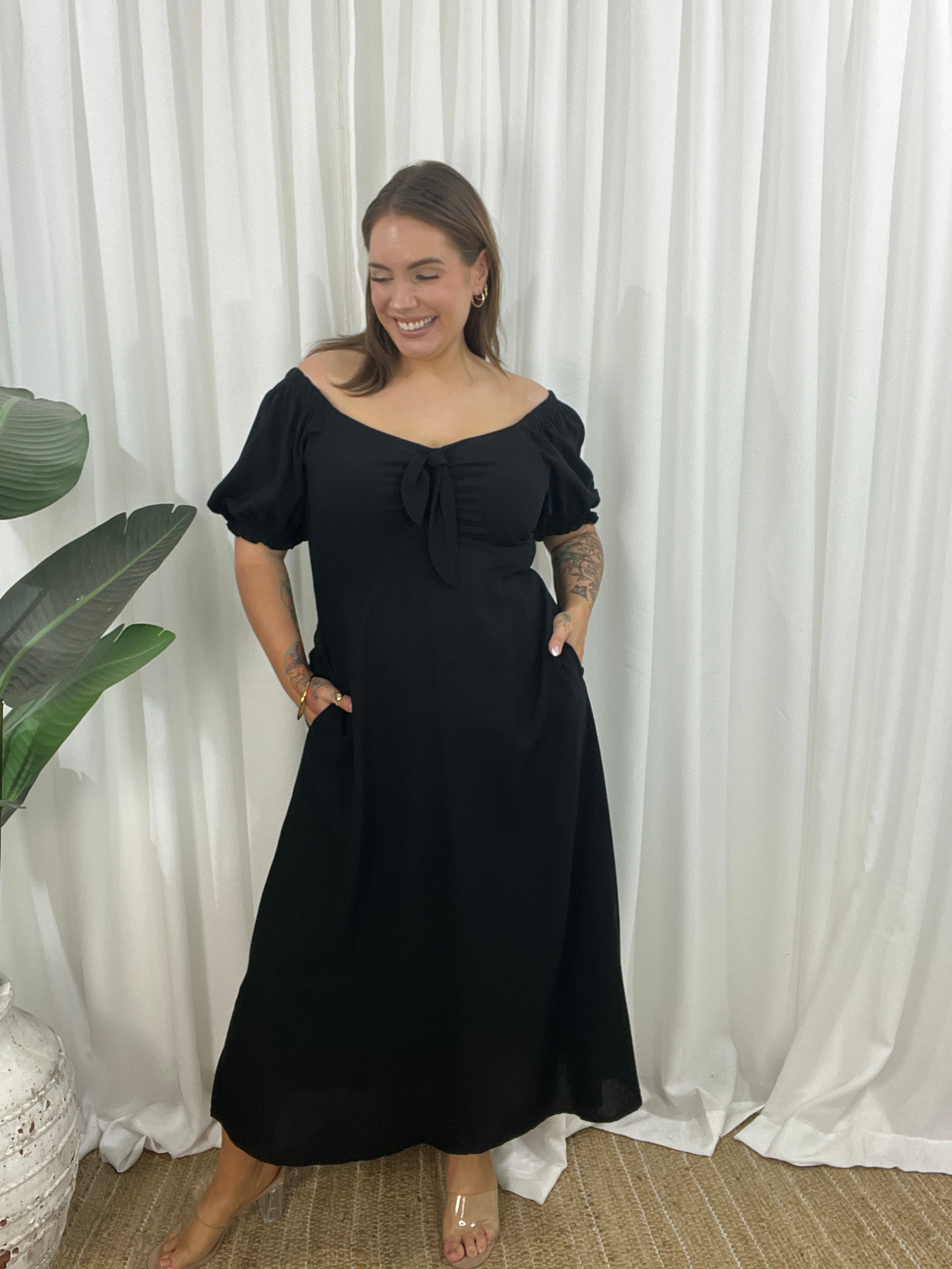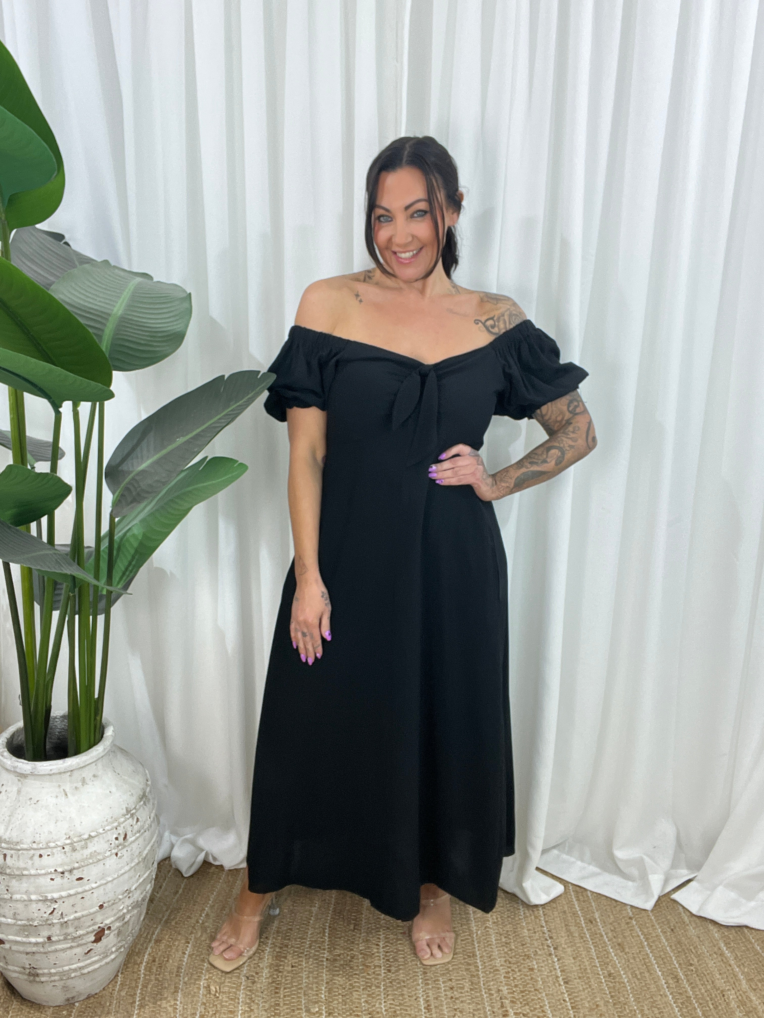 Floaty, flirty, and full of attitude, the Tully Maxi Dress is your go-to for effortless glam with a boho twist. Made from 100% viscose, she’s soft, breathable, and moves like a dream. The shirred bust hugs you just right, while the tie-front detail adds a playful touch. And the best part? You can wear her on or off the shoulder, depending on your mood.