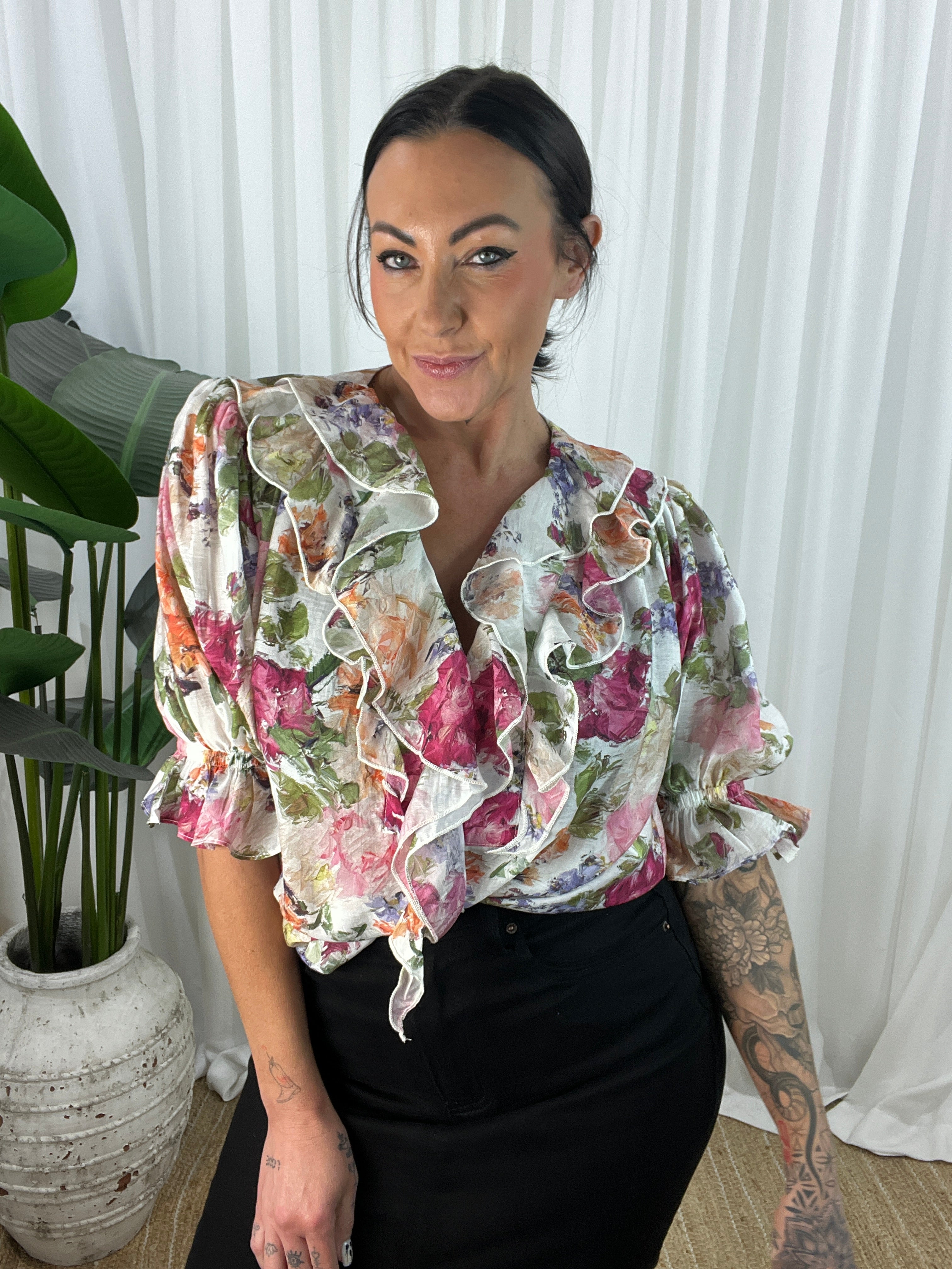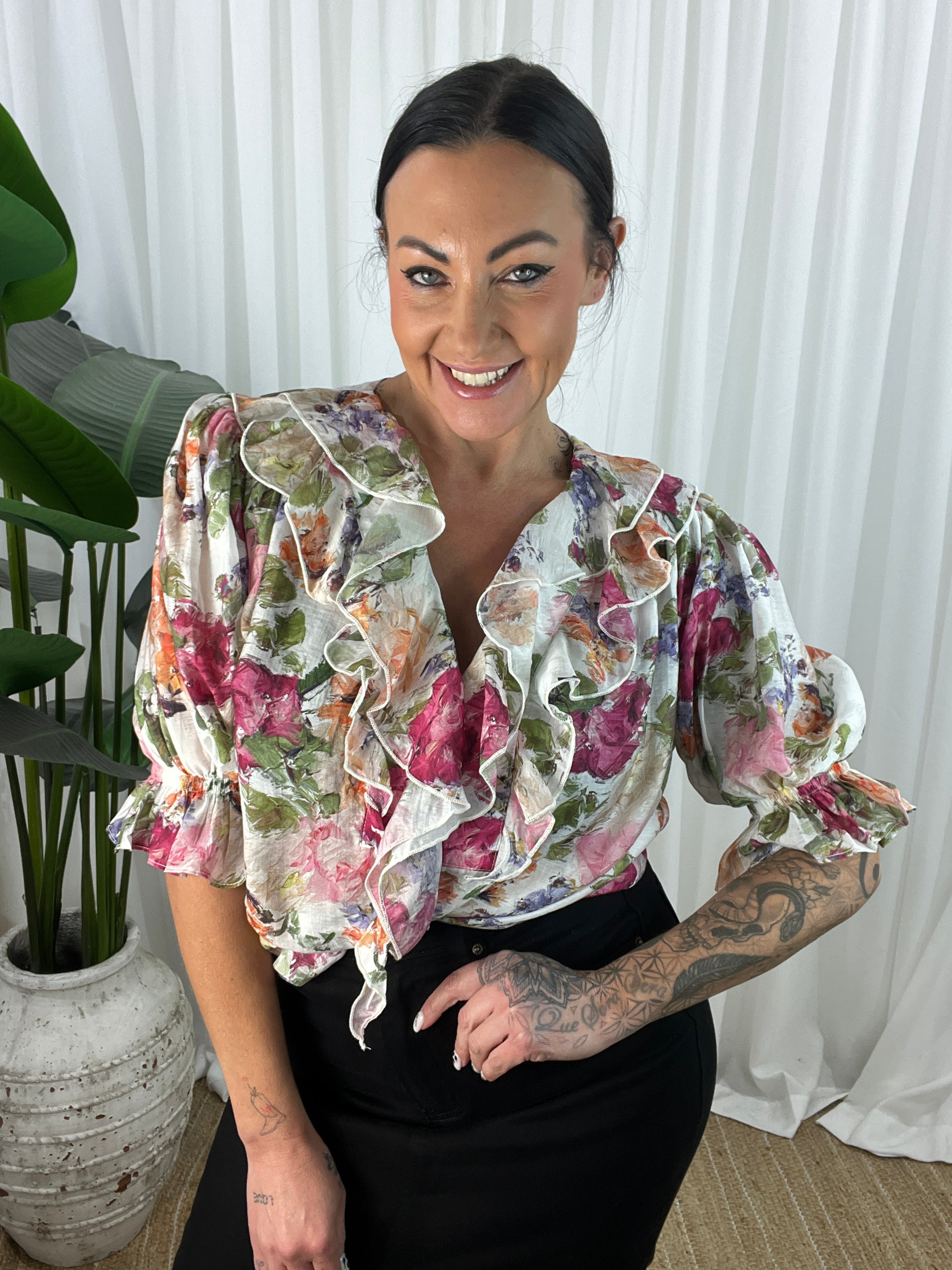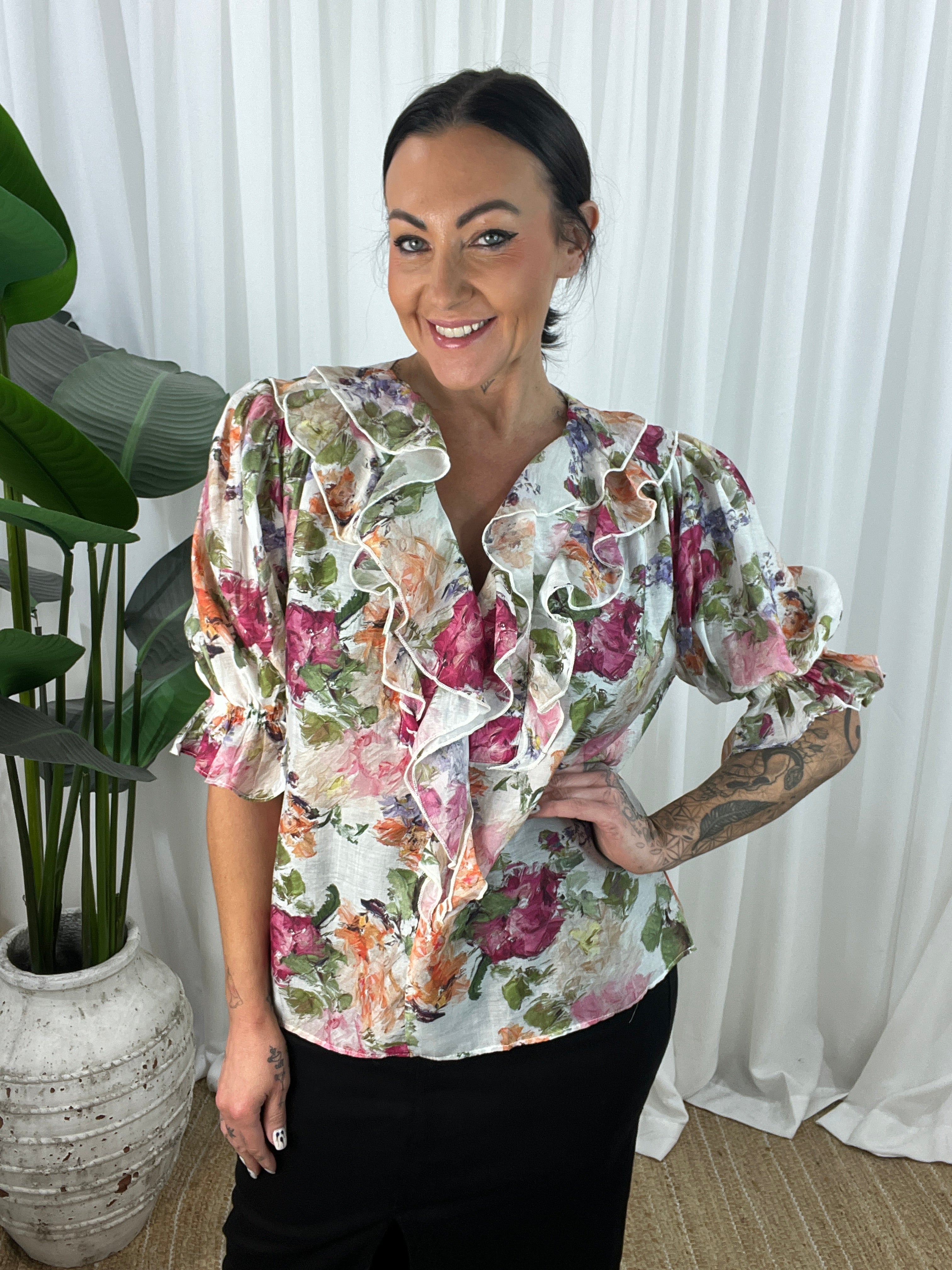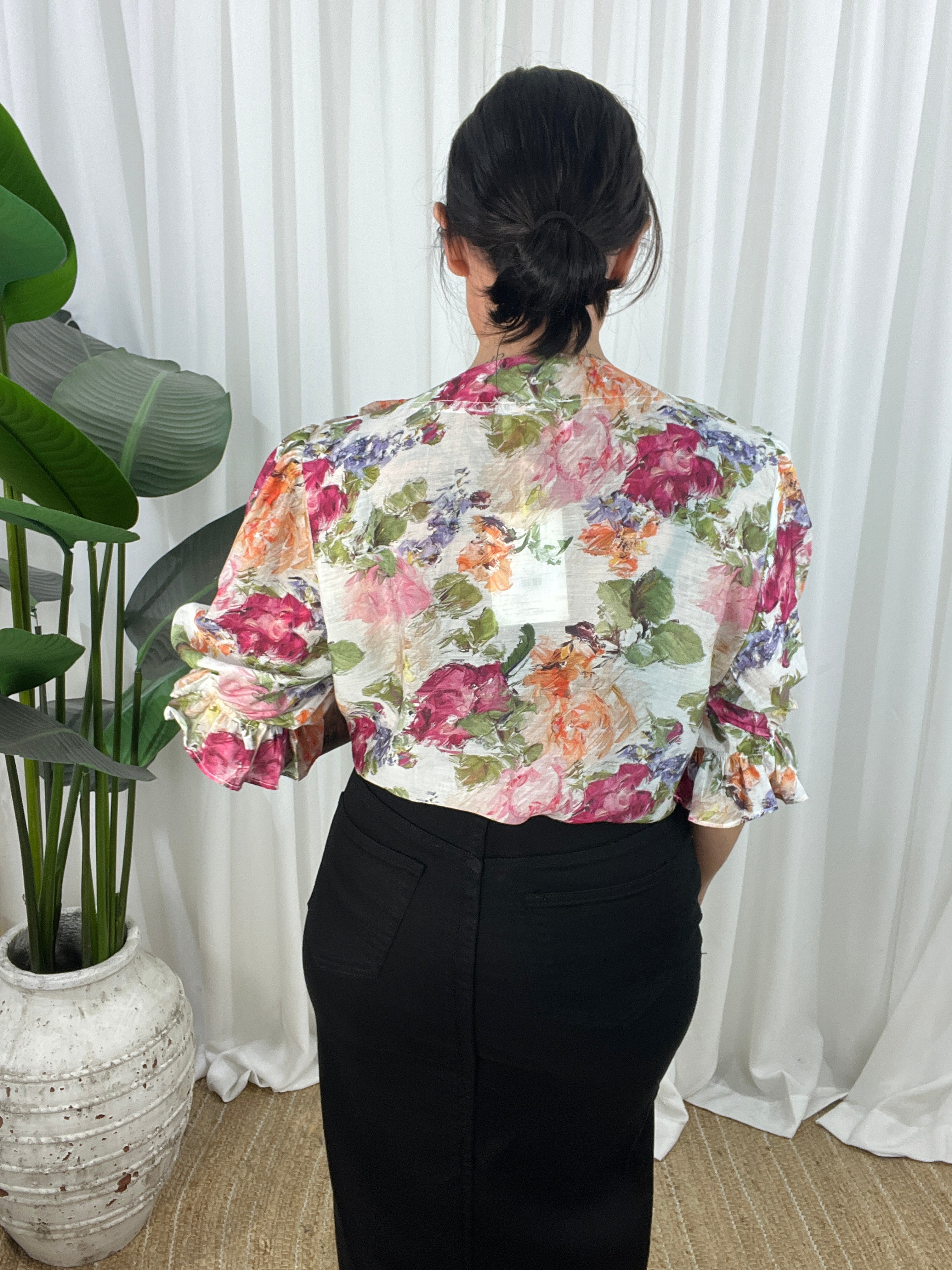 The standout tulip sleeves fall just above the elbow and are finished with a subtle elasticated hem, creating a gentle puff that flatters without fuss. Whether you're styling it for work or weekend, Melanie brings a whisper of elegance to every look.