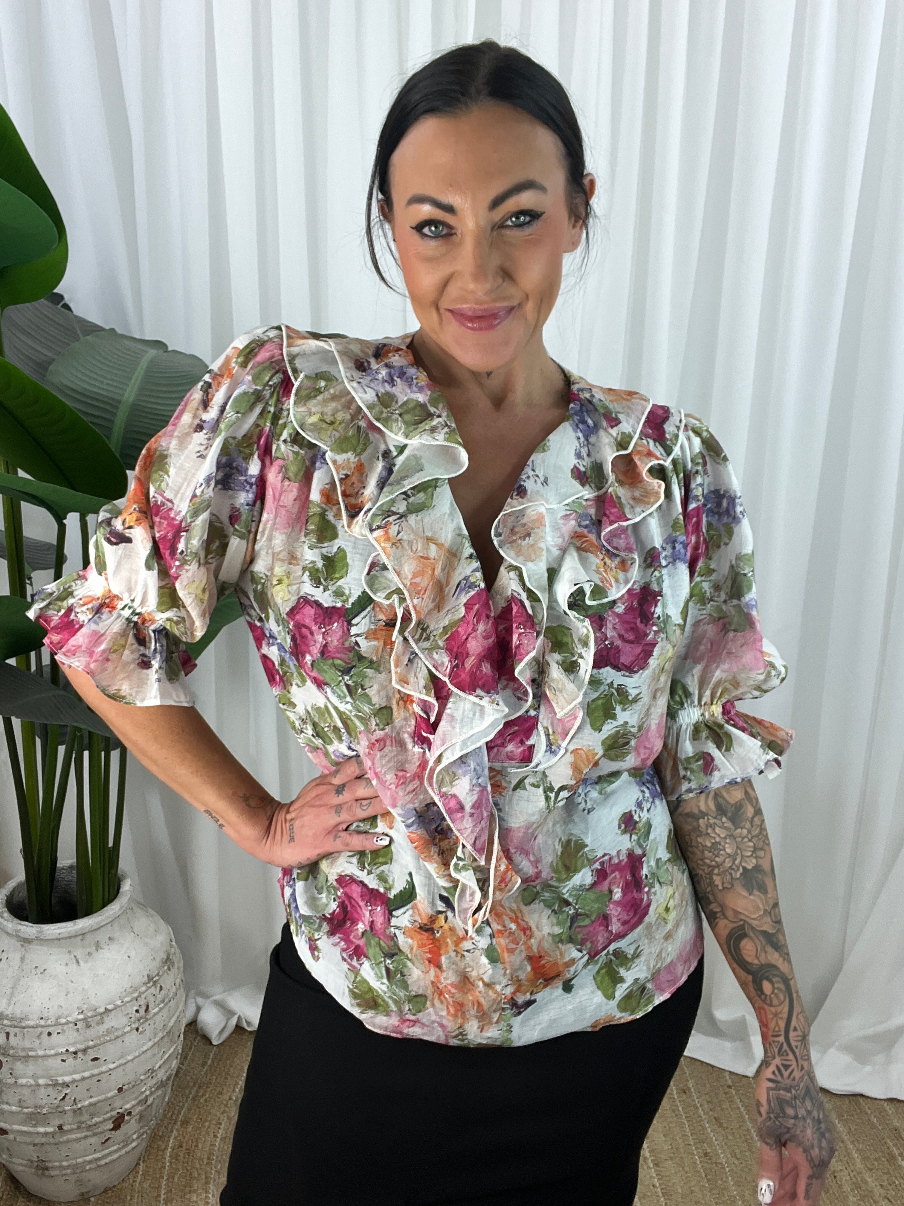 Feminine, floaty, and full of charm, the Melanie Blouse is your new go-to for soft sophistication. Crafted from a lightweight Tencel blend, this semi-sheer beauty features a delicate ruffle trim along the V-neckline, adding a romantic touch to your everyday wardrobe.