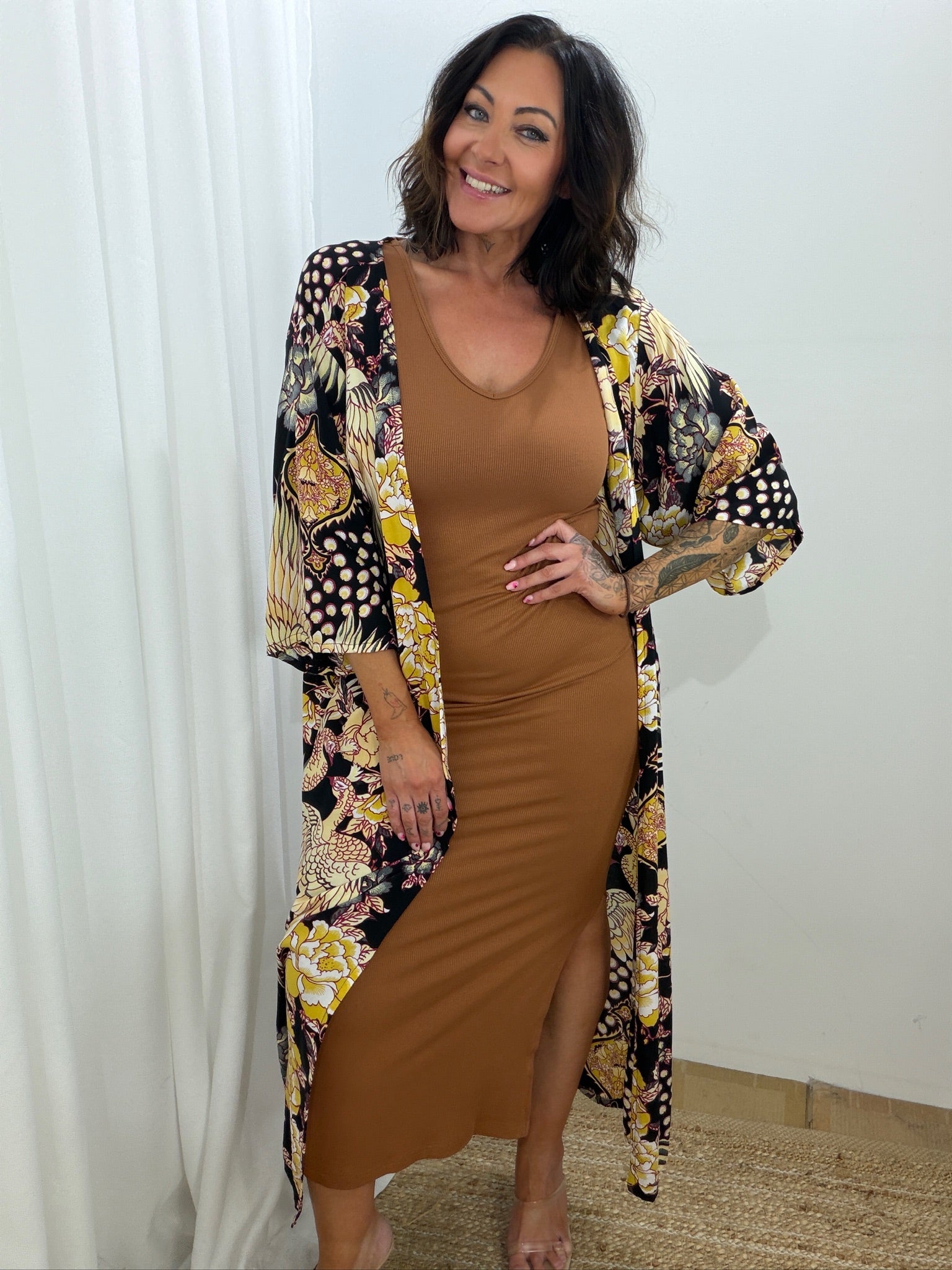- Design : Kimono/Duster, midi length, mix of beautiful colours