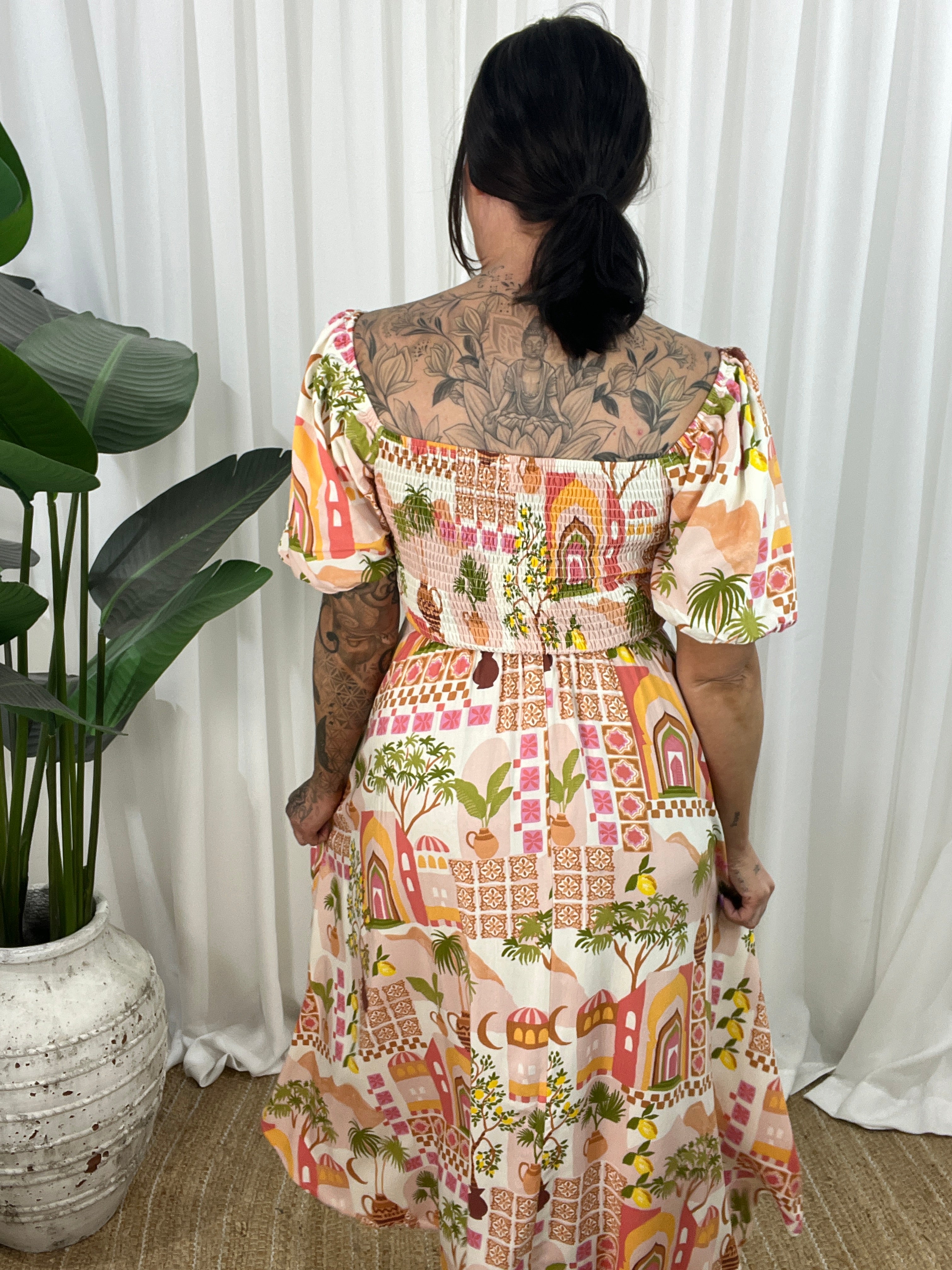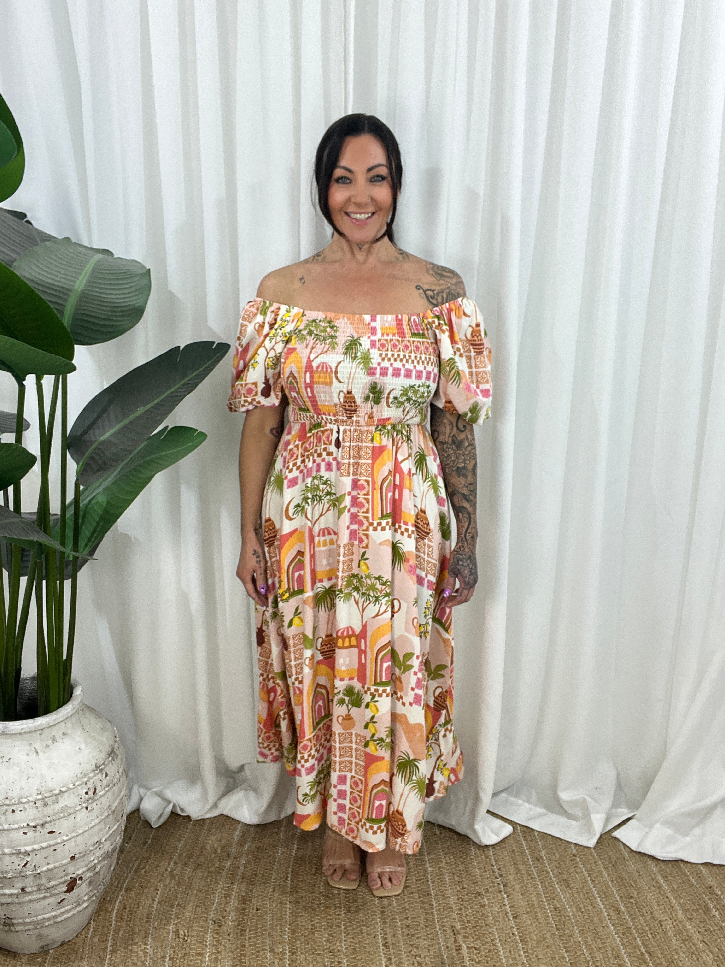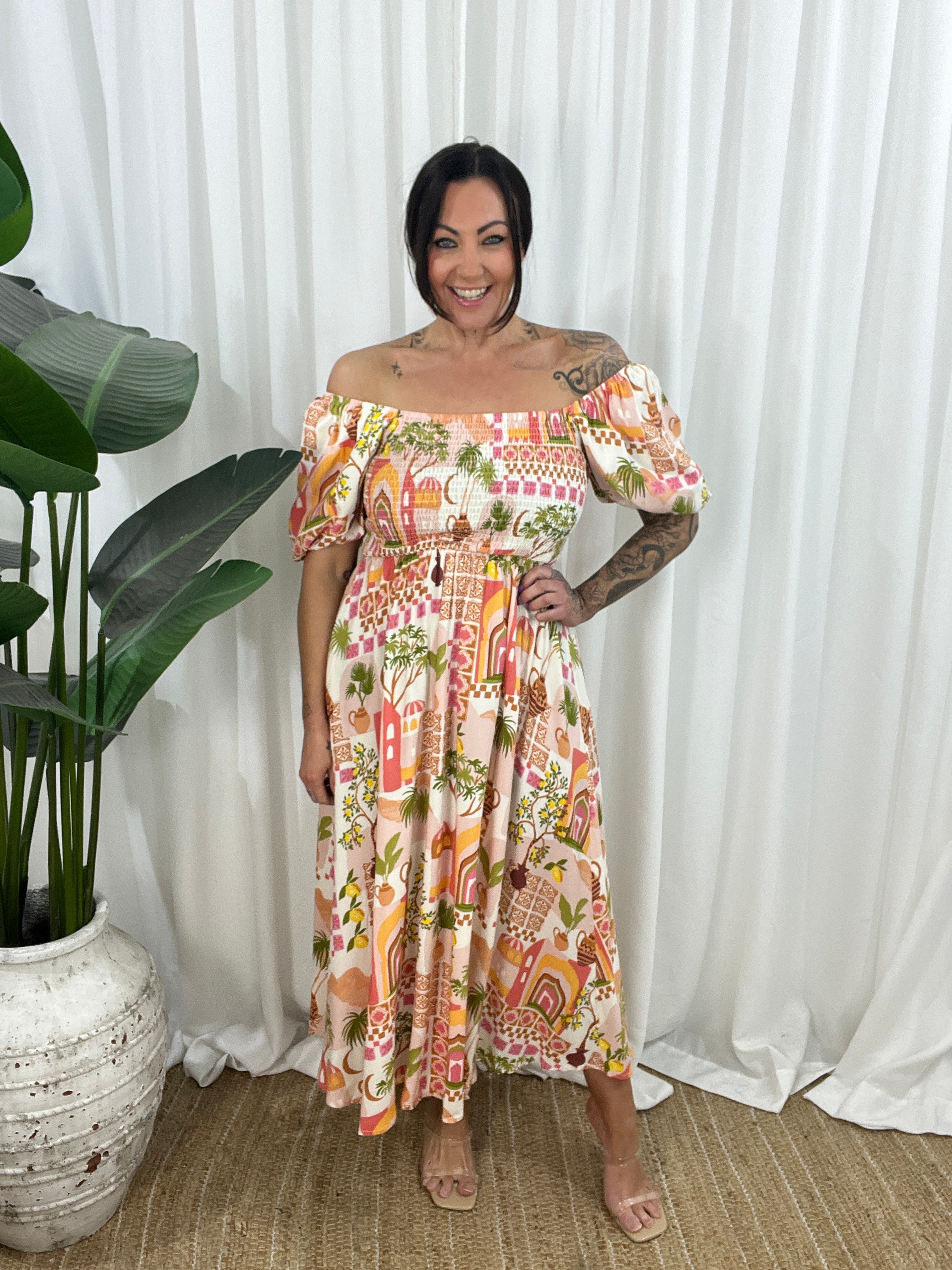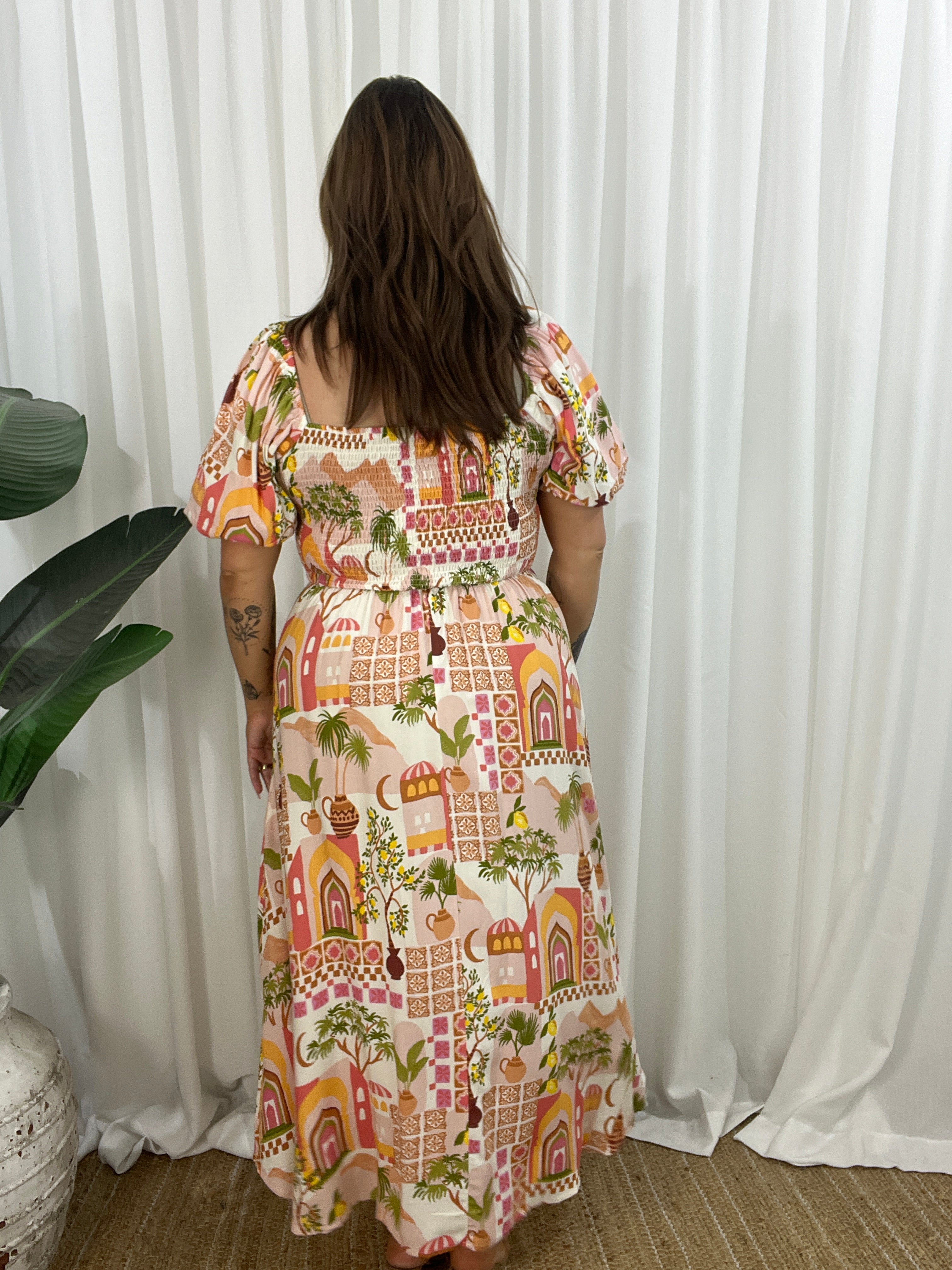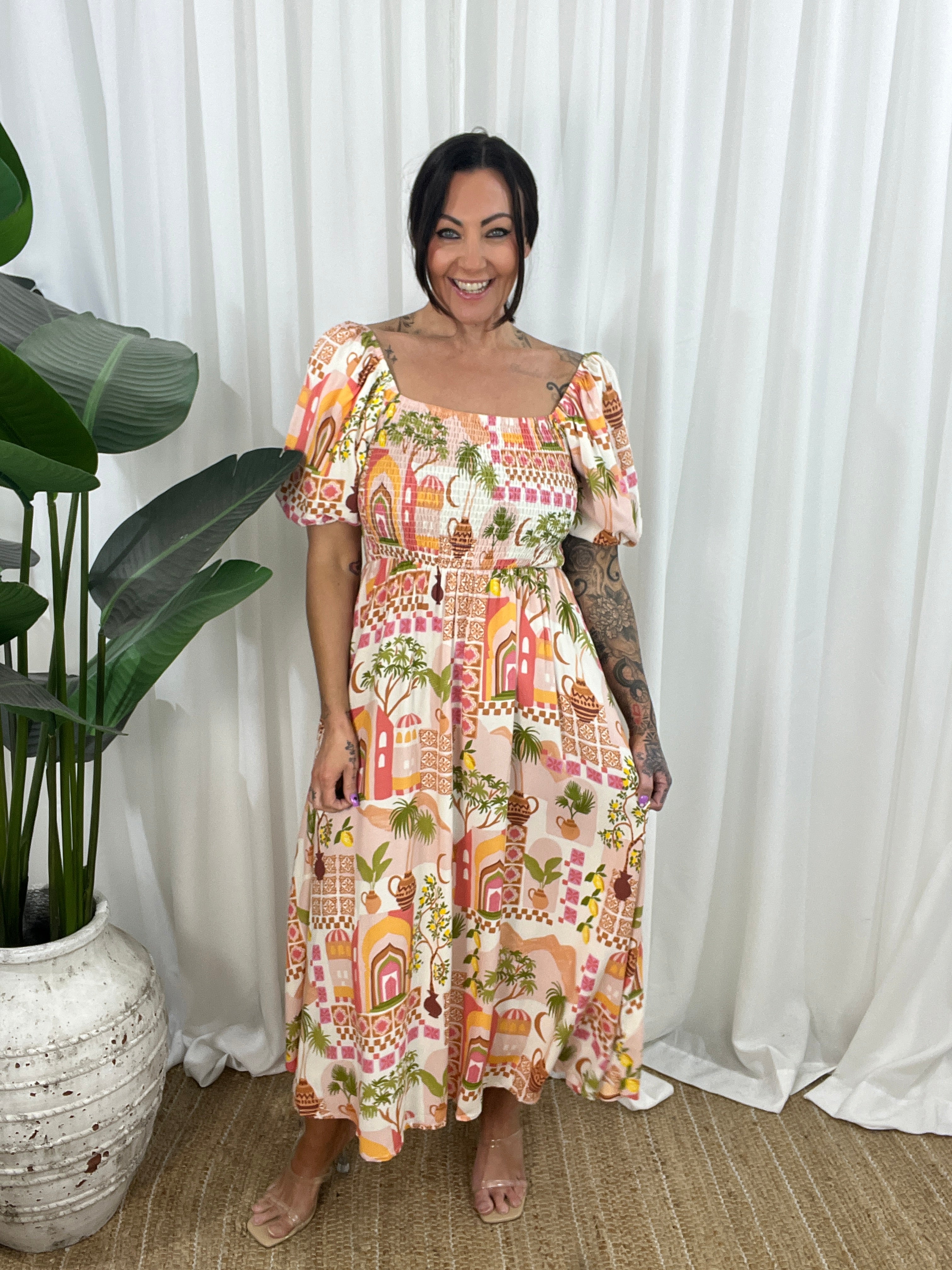 Romantic, relaxed, and ready for sunshine, the Marcy Maxi Dress is your passport to effortless style. Featuring a dreamy pastel Tuscan-inspired print, this flowy number is made from 100% rayon for that soft, breathable feel you’ll want to live in.
