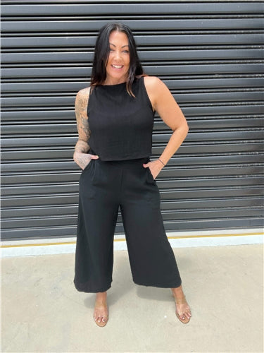 The Pheobe wide leg pants are a sophisticated linen blend piece. These versatile pants are perfect for the spring/summer season. The pants feature a relaxed wide leg, 7/8th length depending on height, with a comfortable pull-on style, flat front, elasticated shirred back, and essential pockets.