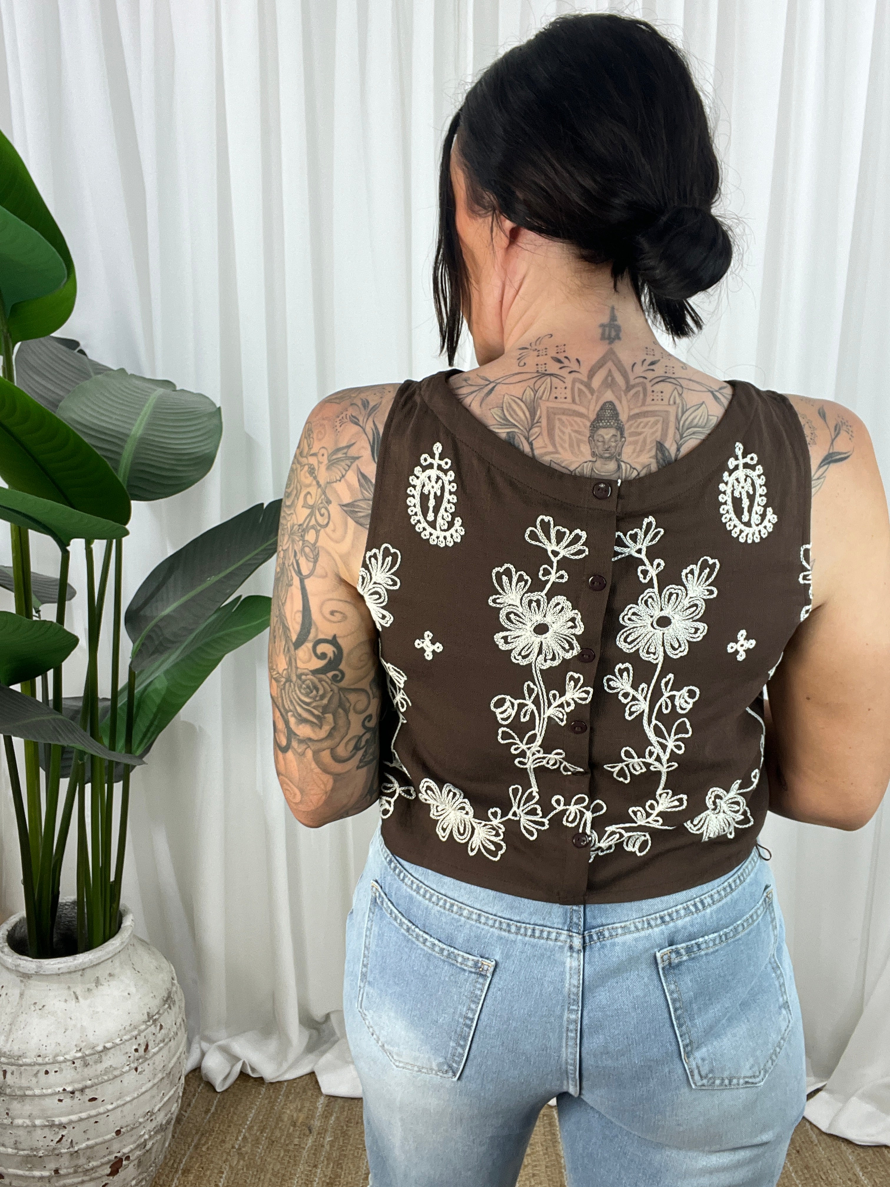 The Poppy Top is a sophisticated light weight sleeveless top. These versatile tops are perfect for the spring/summer season.. The top is a cropped design with a high neckline and non-functional buttons down the back for added style. Thicker straps ensure bra straps are covered, making it the perfect little top. The Poppy top: perfect for those who love versatile, comfortable, and stylish pieces that can easily transition from day to night. Whether you’re heading out for a casual outing or a special event, this set will make you look and feel fabulous.