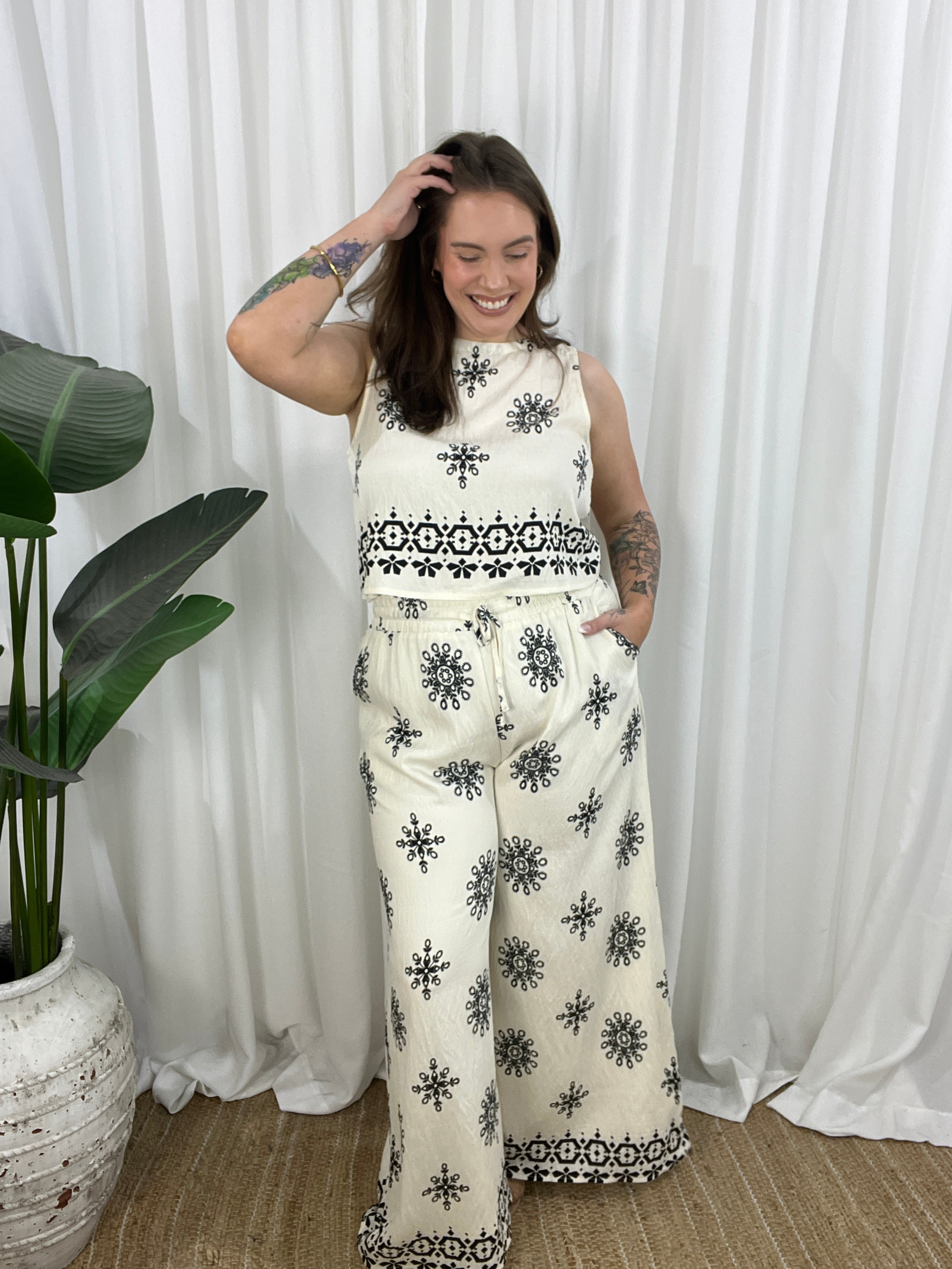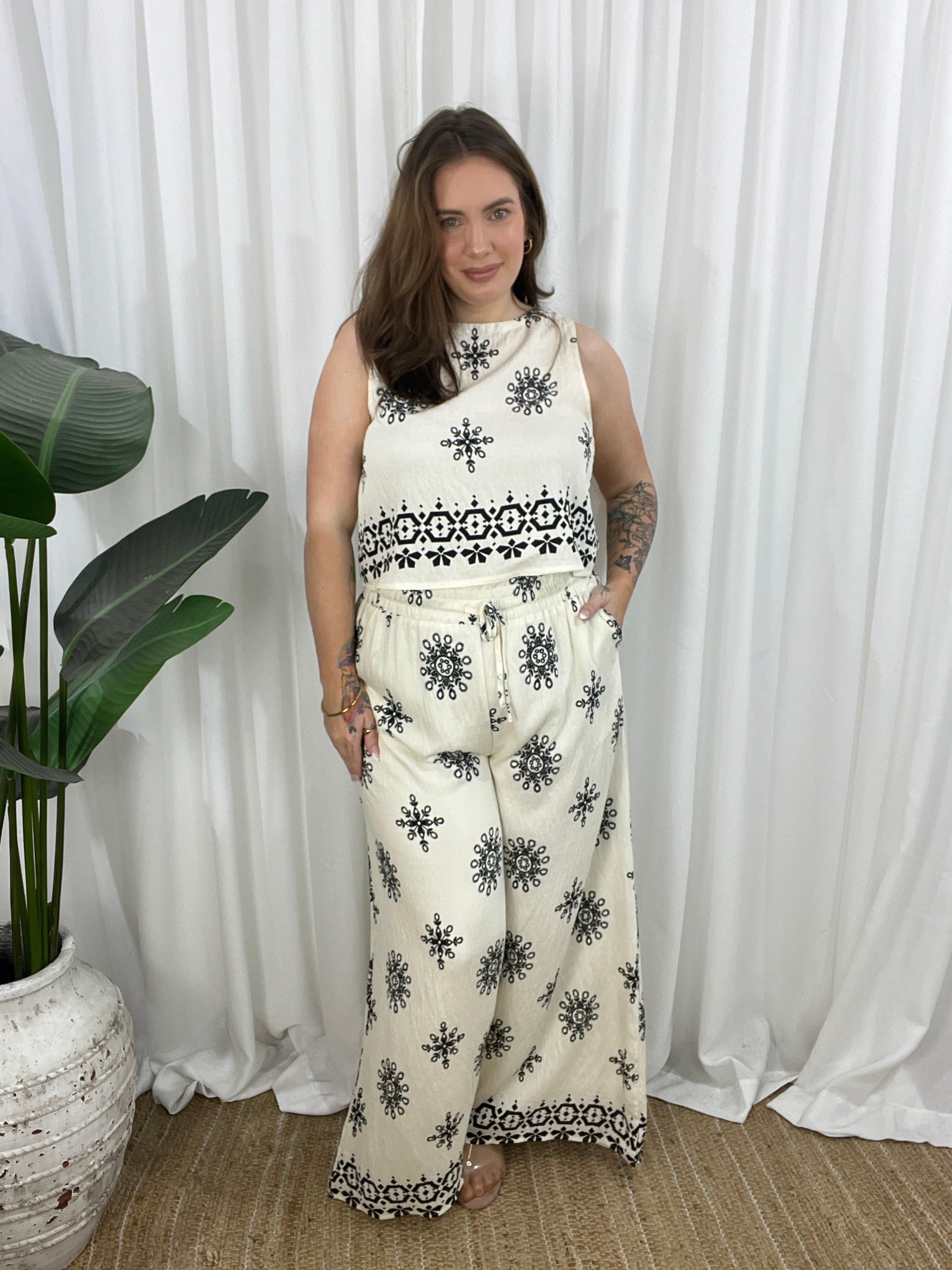 The Wren Top is a sophisticated light weight sleeveless top. These versatile tops are perfect for the spring/summer season.. The top is a cropped design with a high neckline and non-functional buttons down the back for added style. Thicker straps ensure bra straps are covered, making it the perfect little top. The Wren top: perfect for those who love versatile, comfortable, and stylish pieces that can easily transition from day to night. Whether you’re heading out for a casual outing or a special event, this set will make you look and feel fabulous. Linen Blend