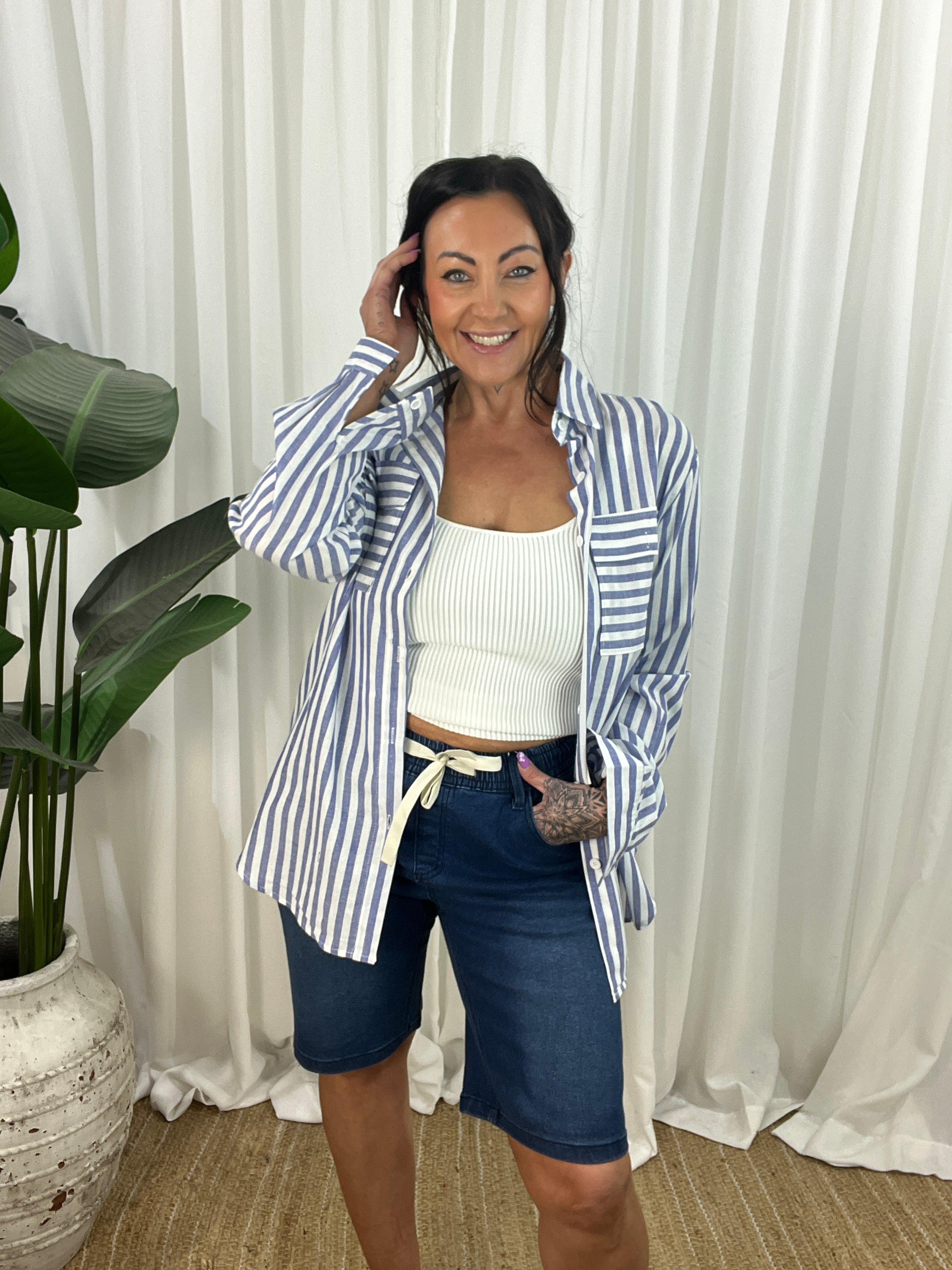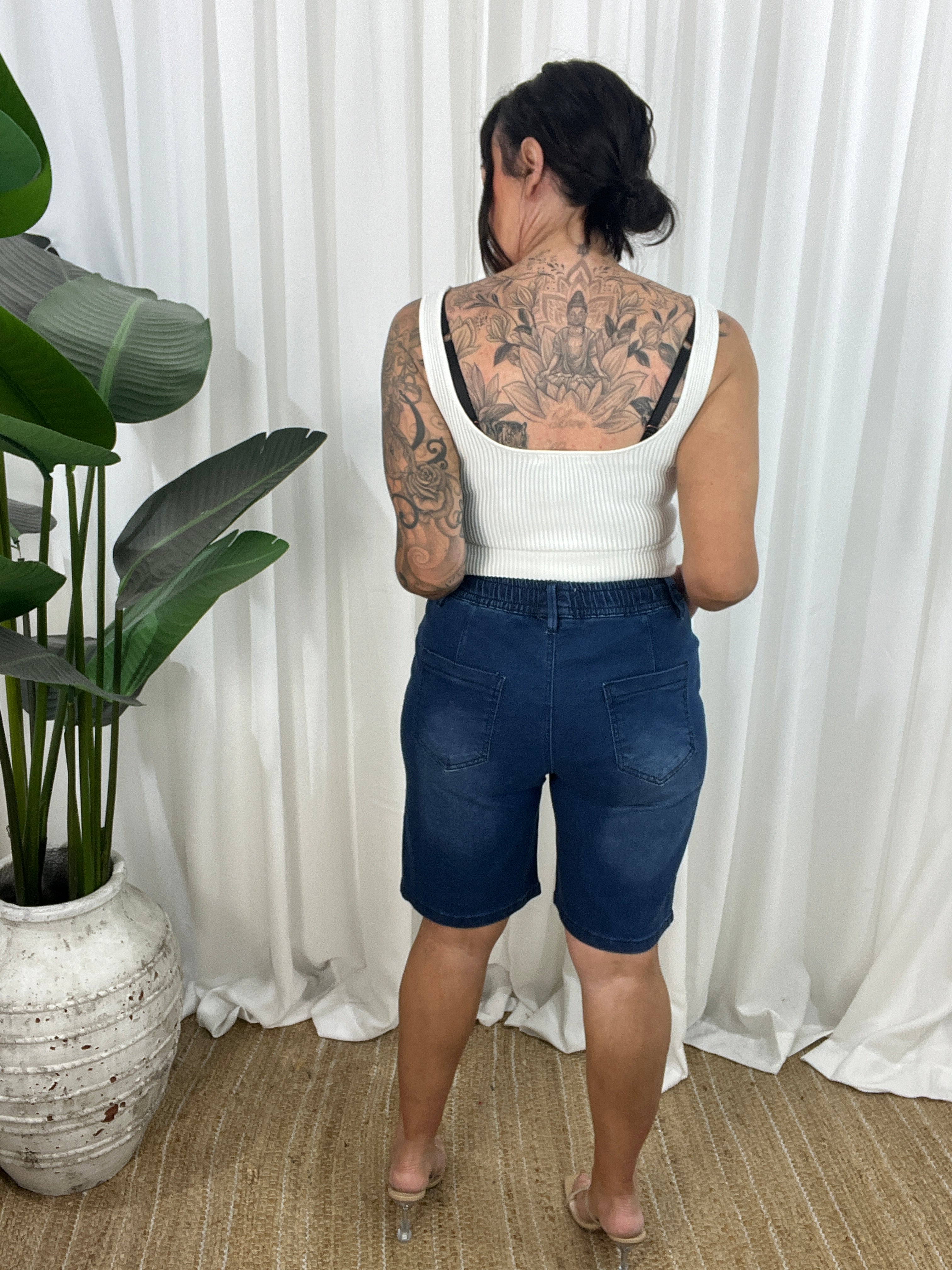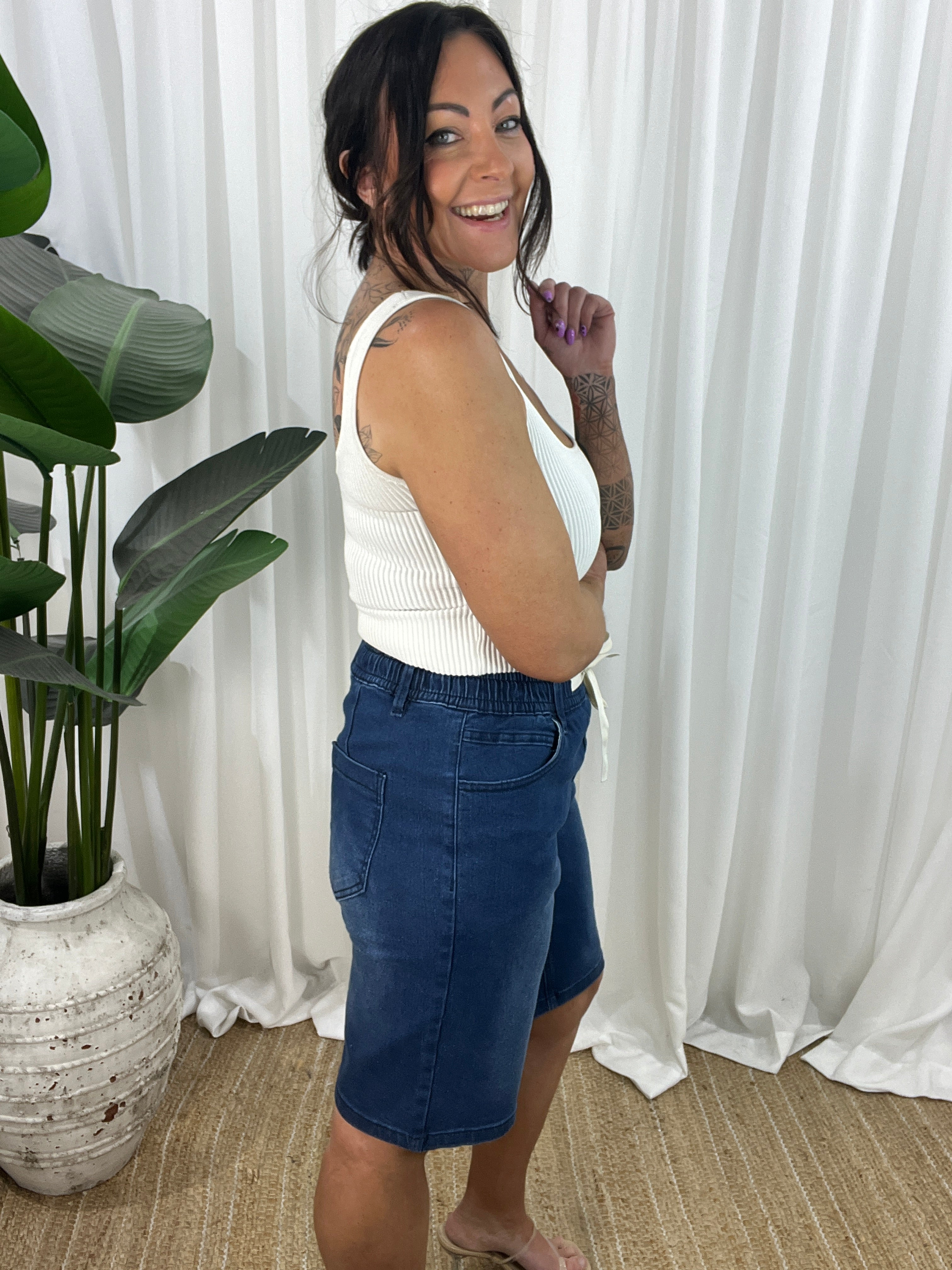 Slip into sunshine with our Bermuda Jean Shorts, the ultimate blend of comfort and casual-cool. Made from an ultra-stretchy denim blend, these shorts are designed to move with you, whether you're brunching, beach-hopping, or just soaking up the day.
