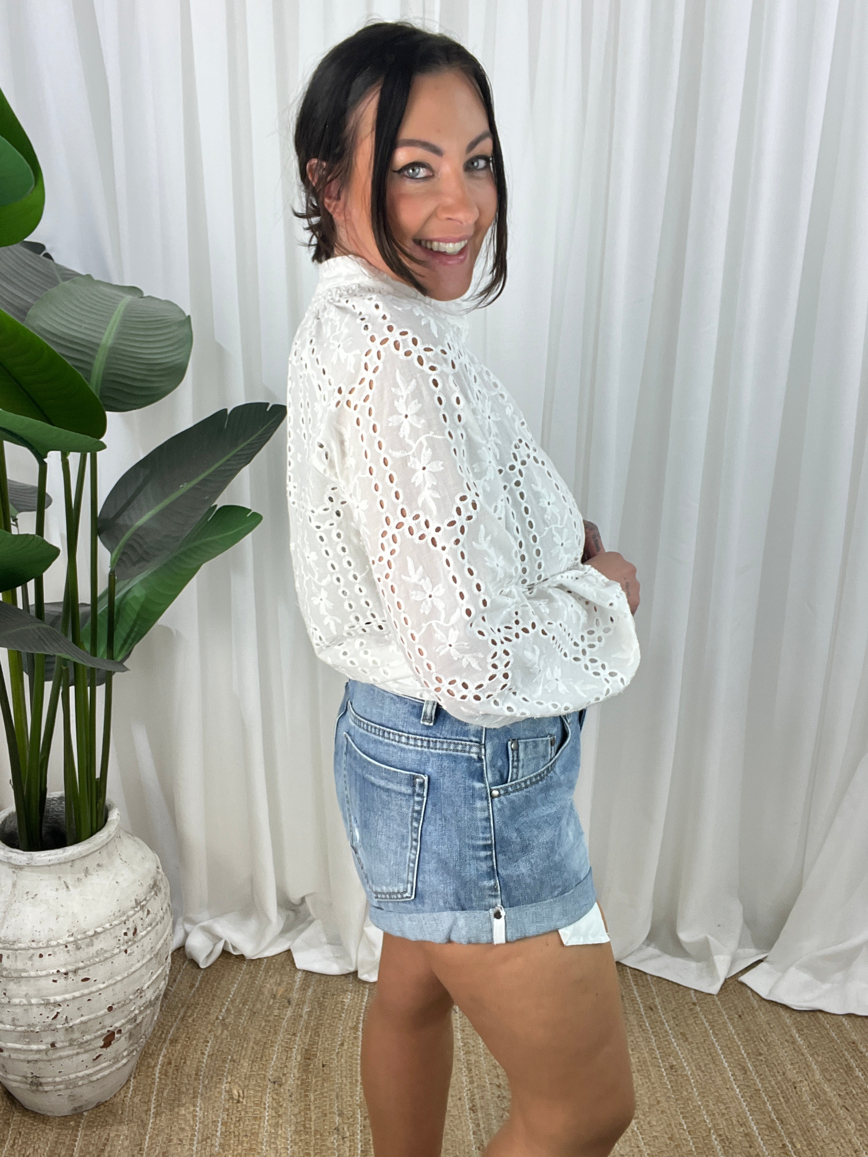 Bold, cheeky, and madefor fun the Bessie Denim Short is your go-to for sun-soaked days and off-duty cool. Designed in a rigid denim, this booty-length short features a cuffed hem, and classic zip-and-fly closure for that authentic denim feel. With functional pockets and a flattering fit that hugs in all the right places, Bessie is the kind of piece that brings confidence to every step.