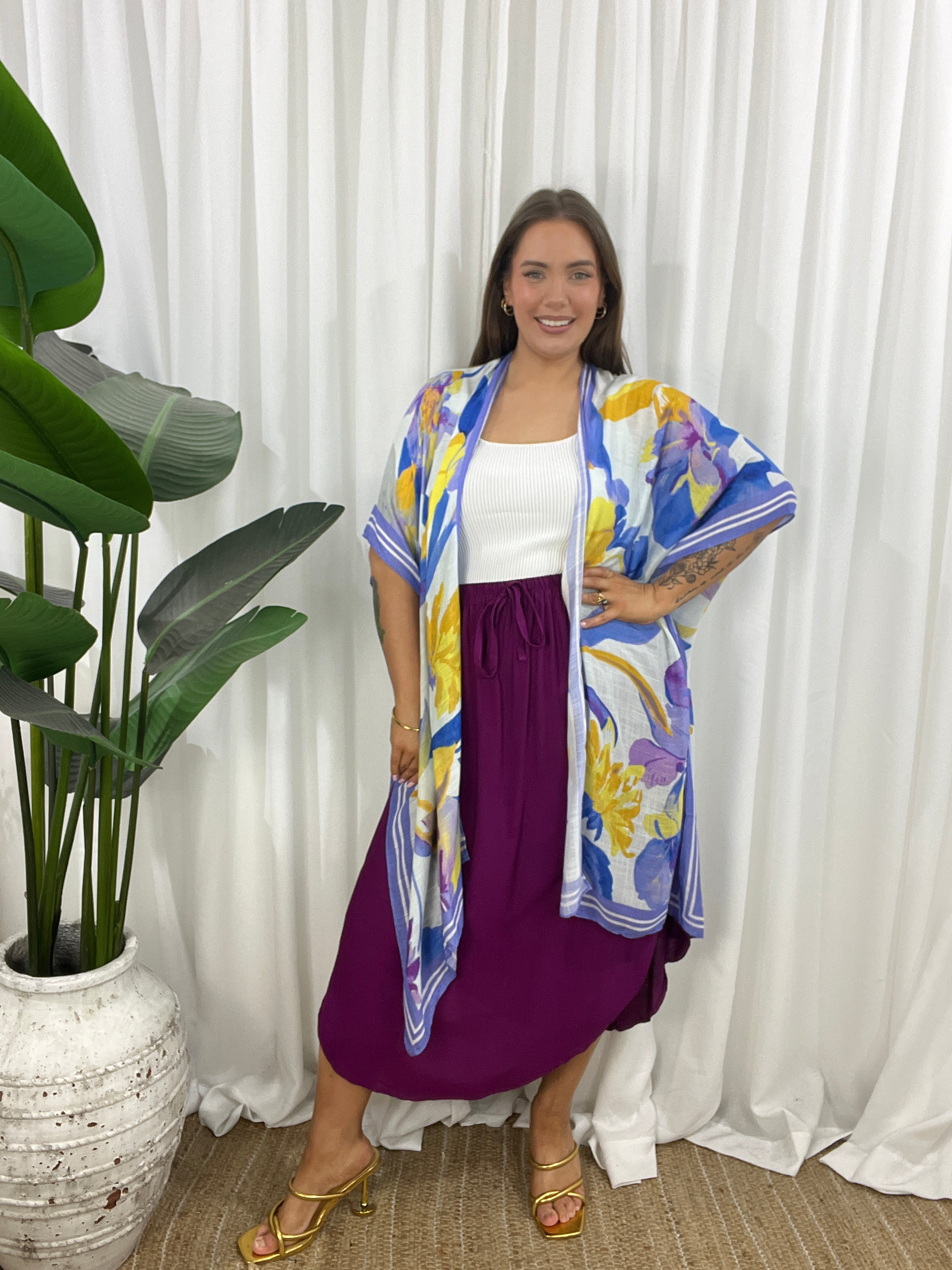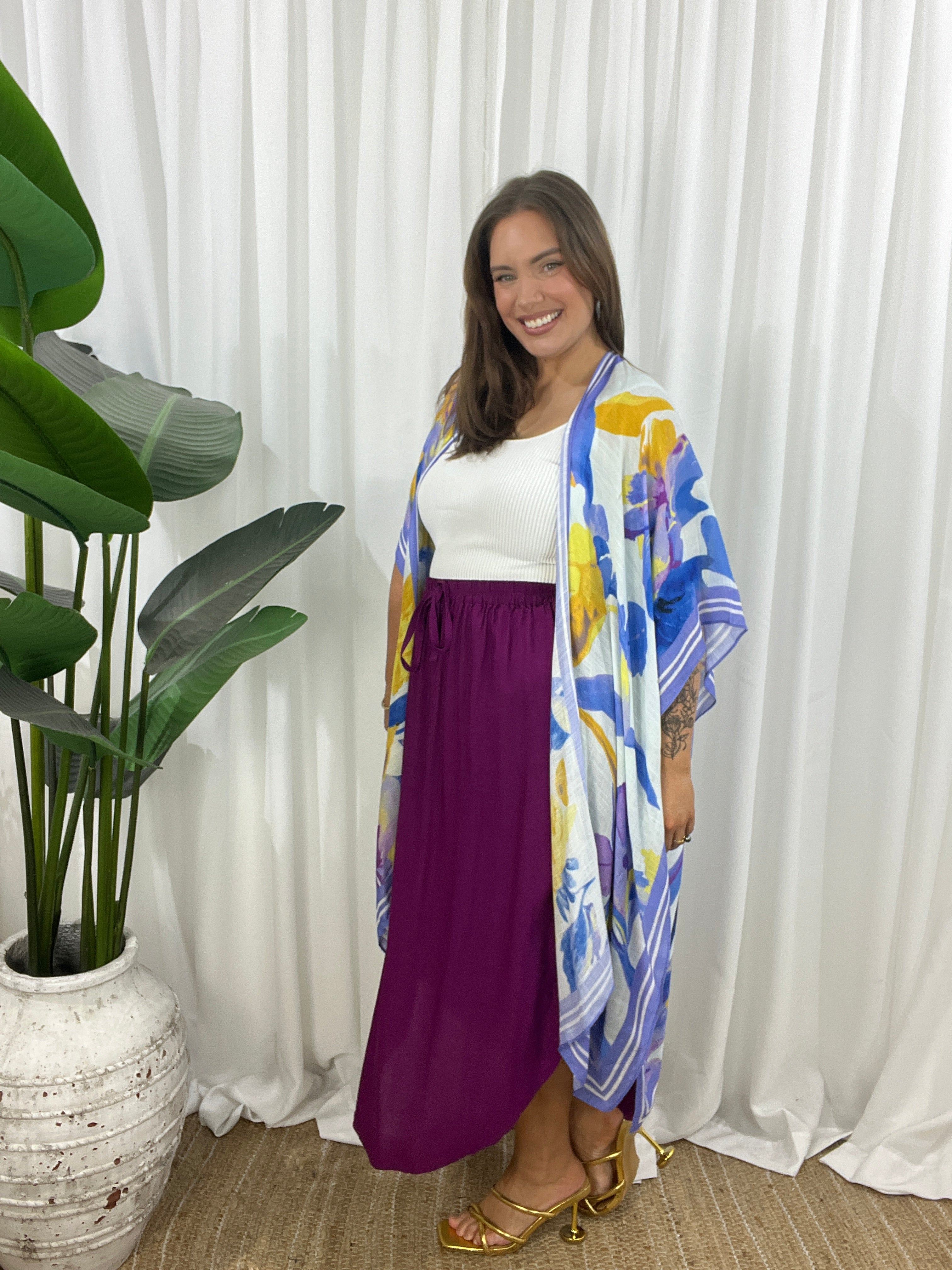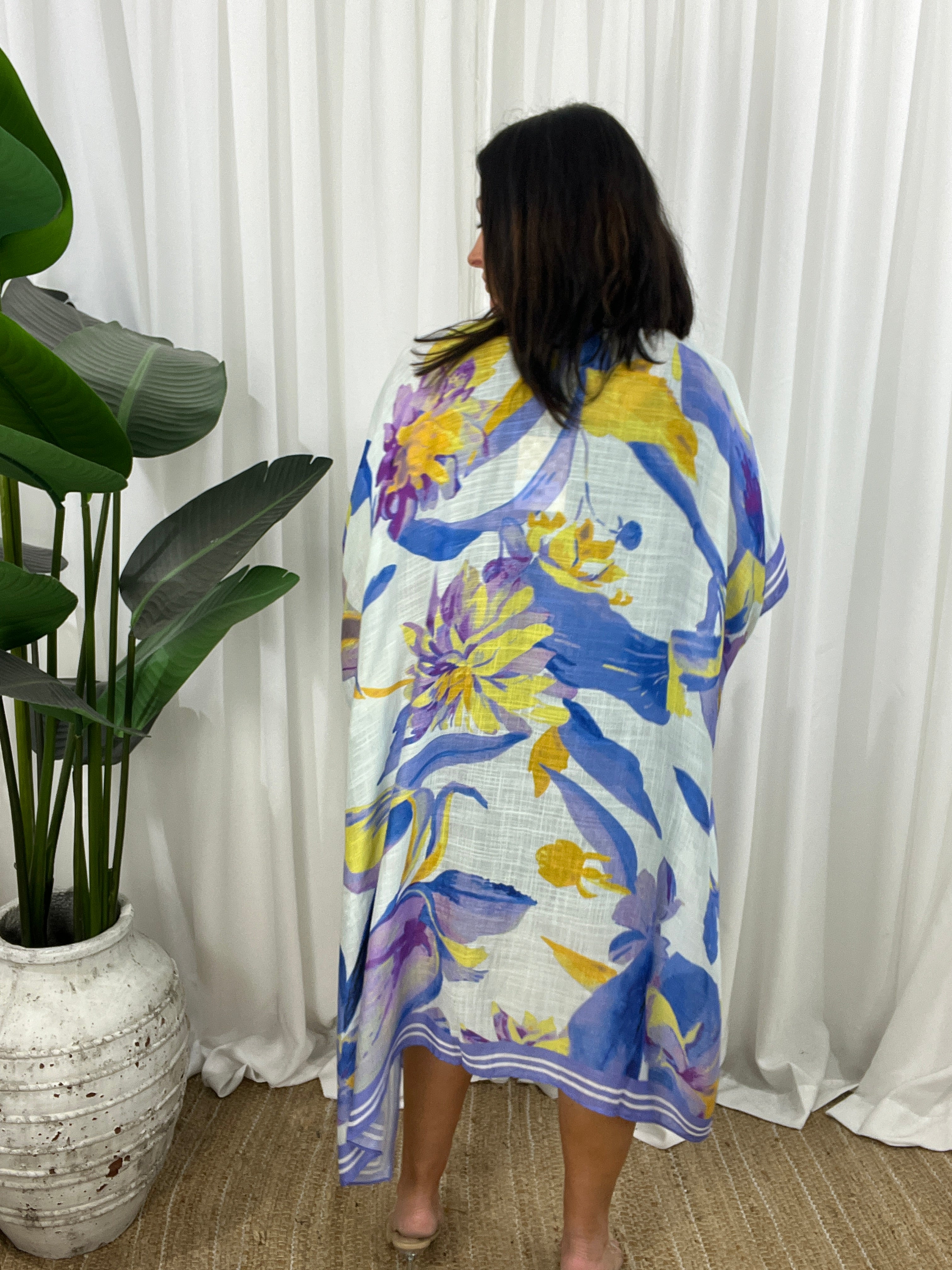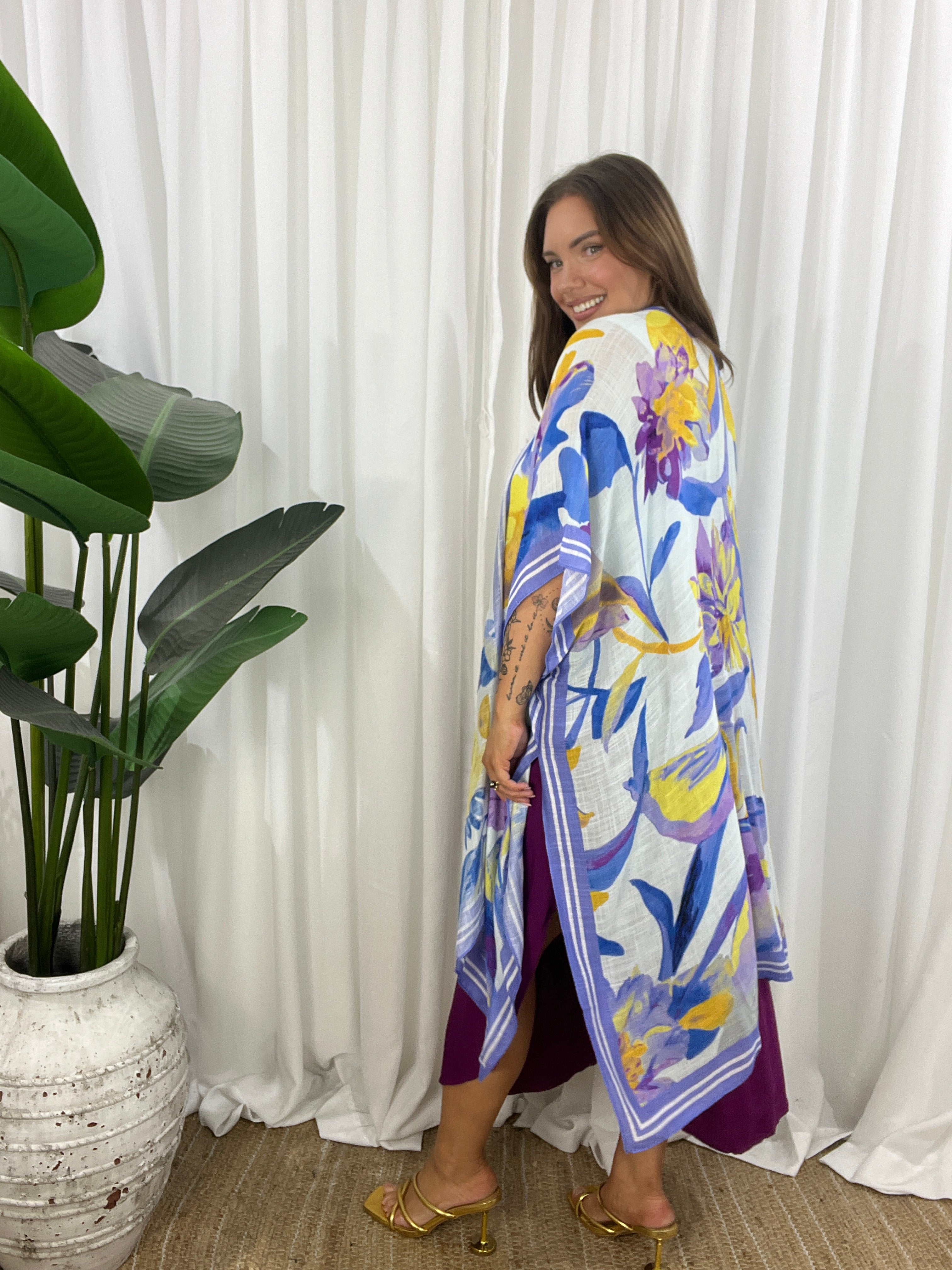 The open design and wide, airy sleeves create a flattering shape that moves beautifully with every step.