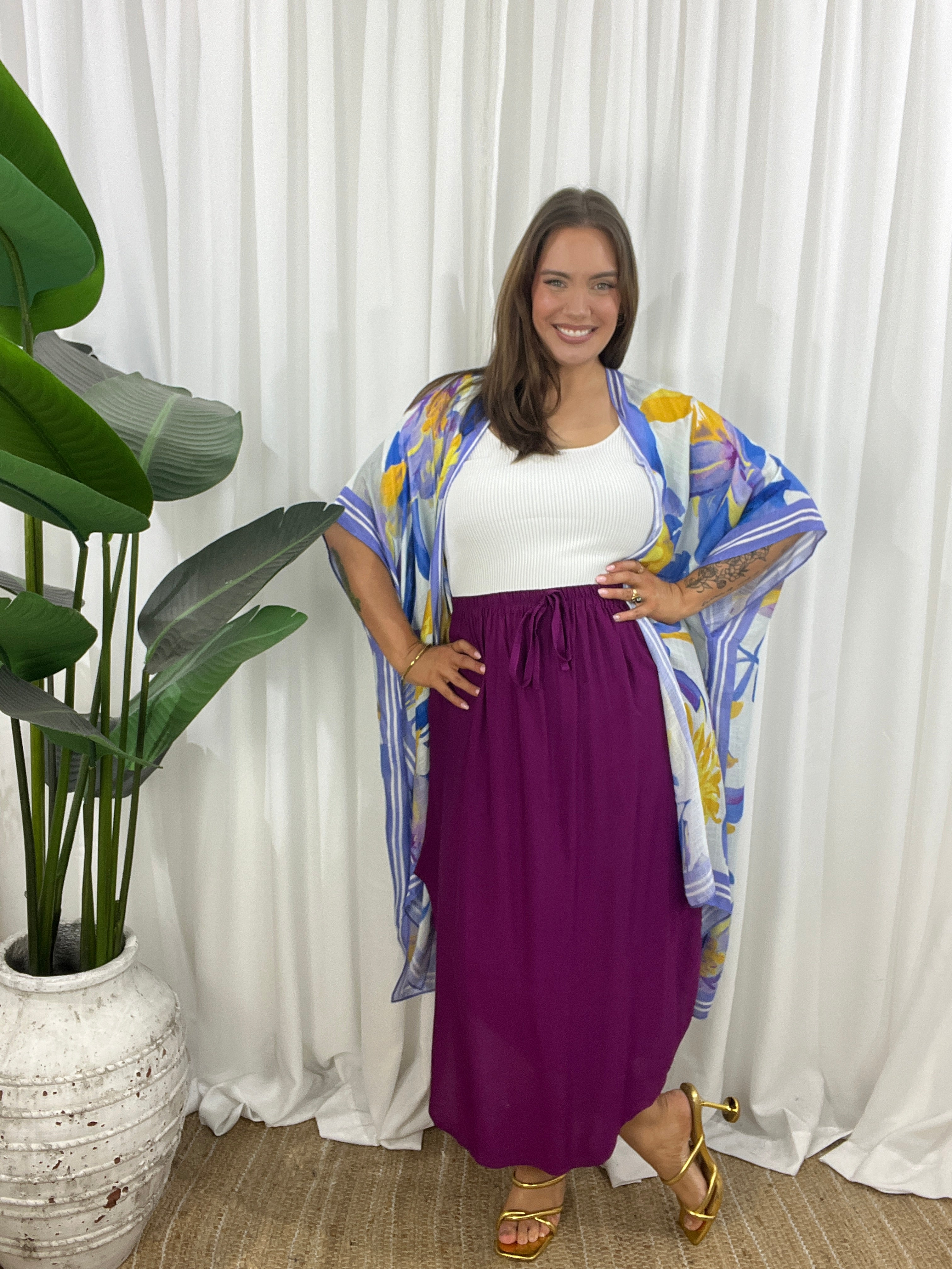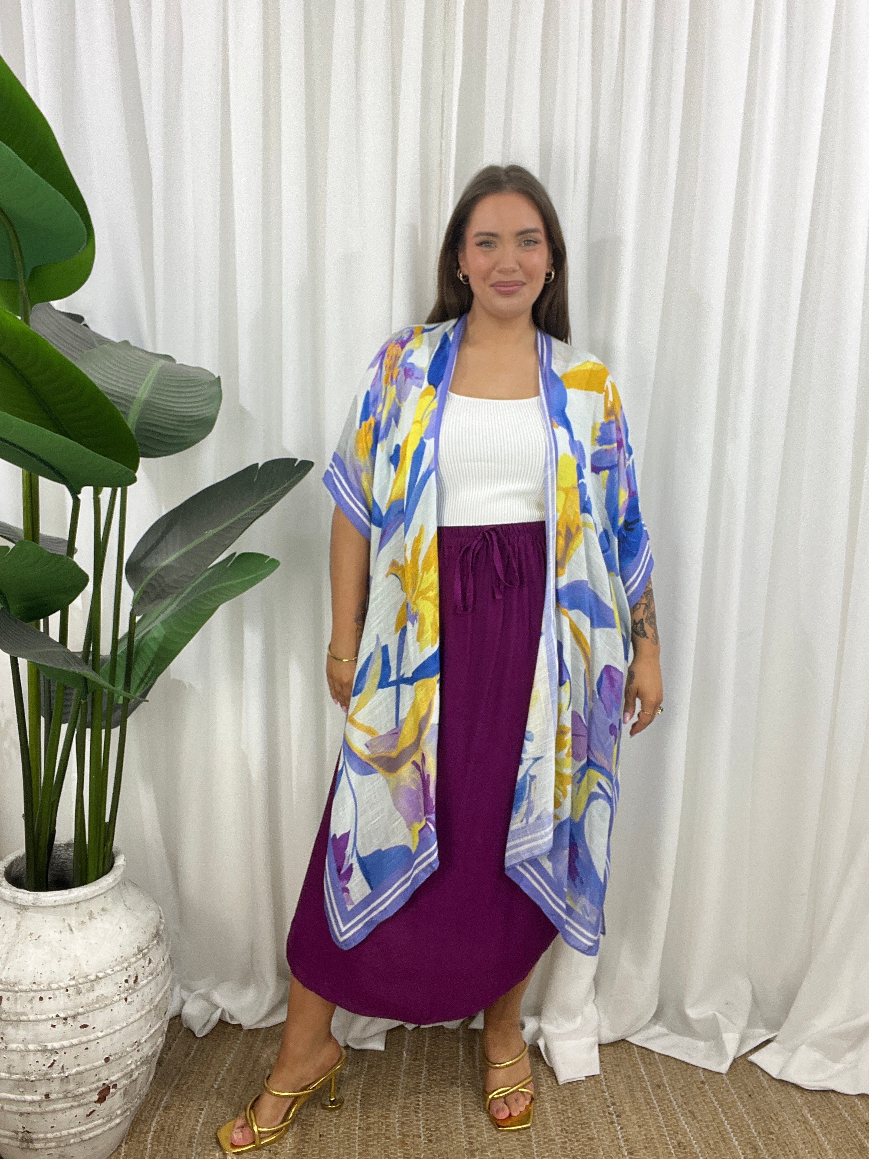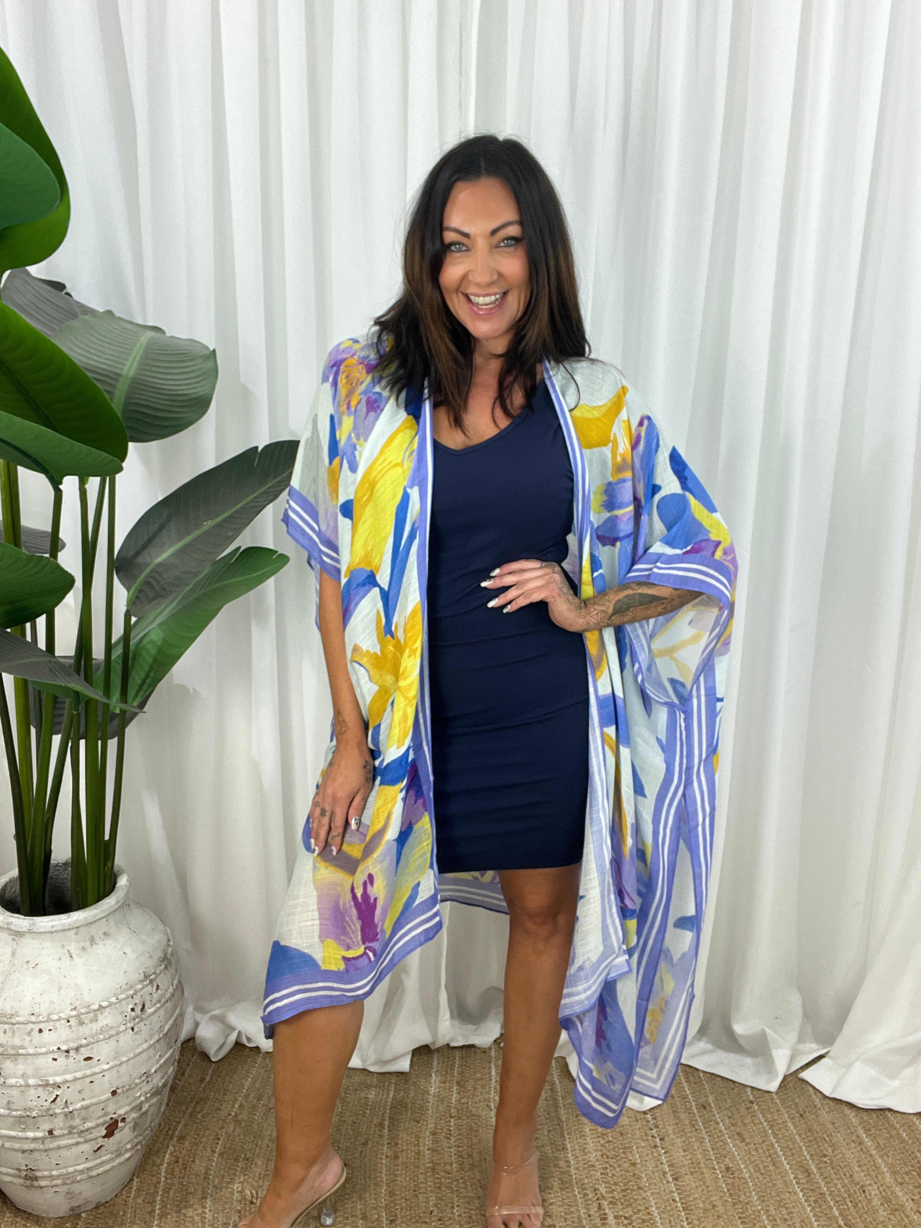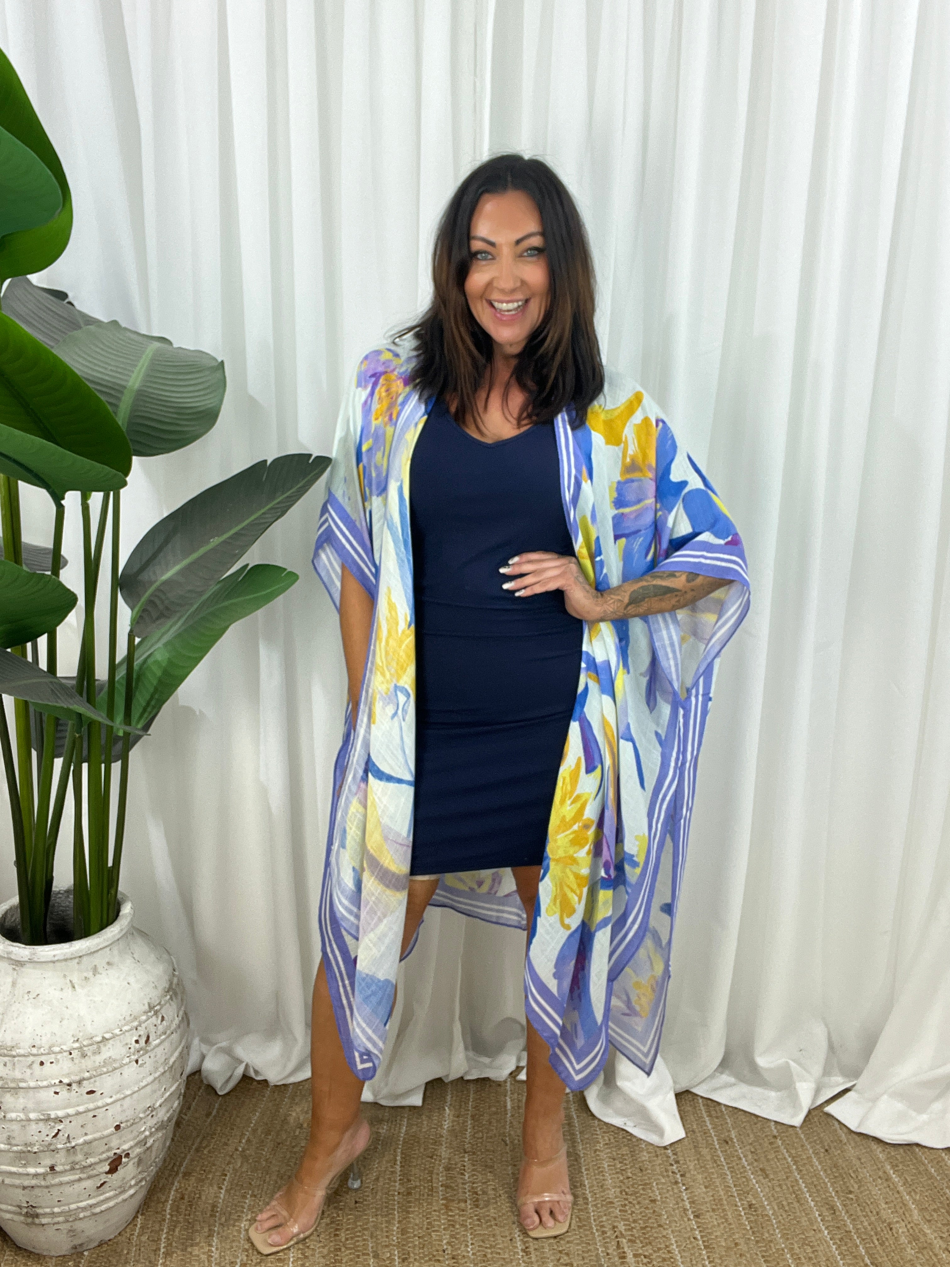 The open design and wide, airy sleeves create a flattering shape that moves beautifully with every step.