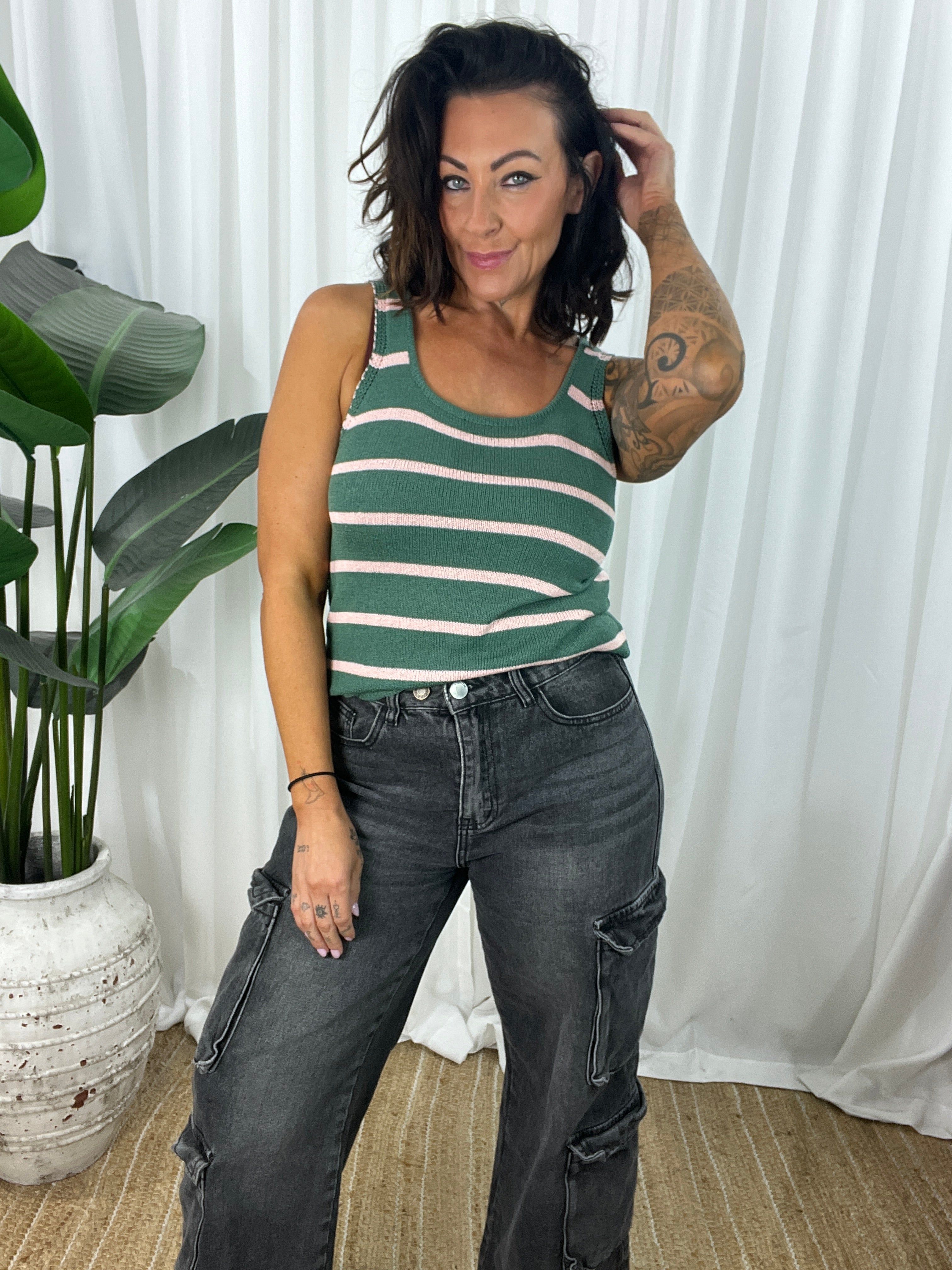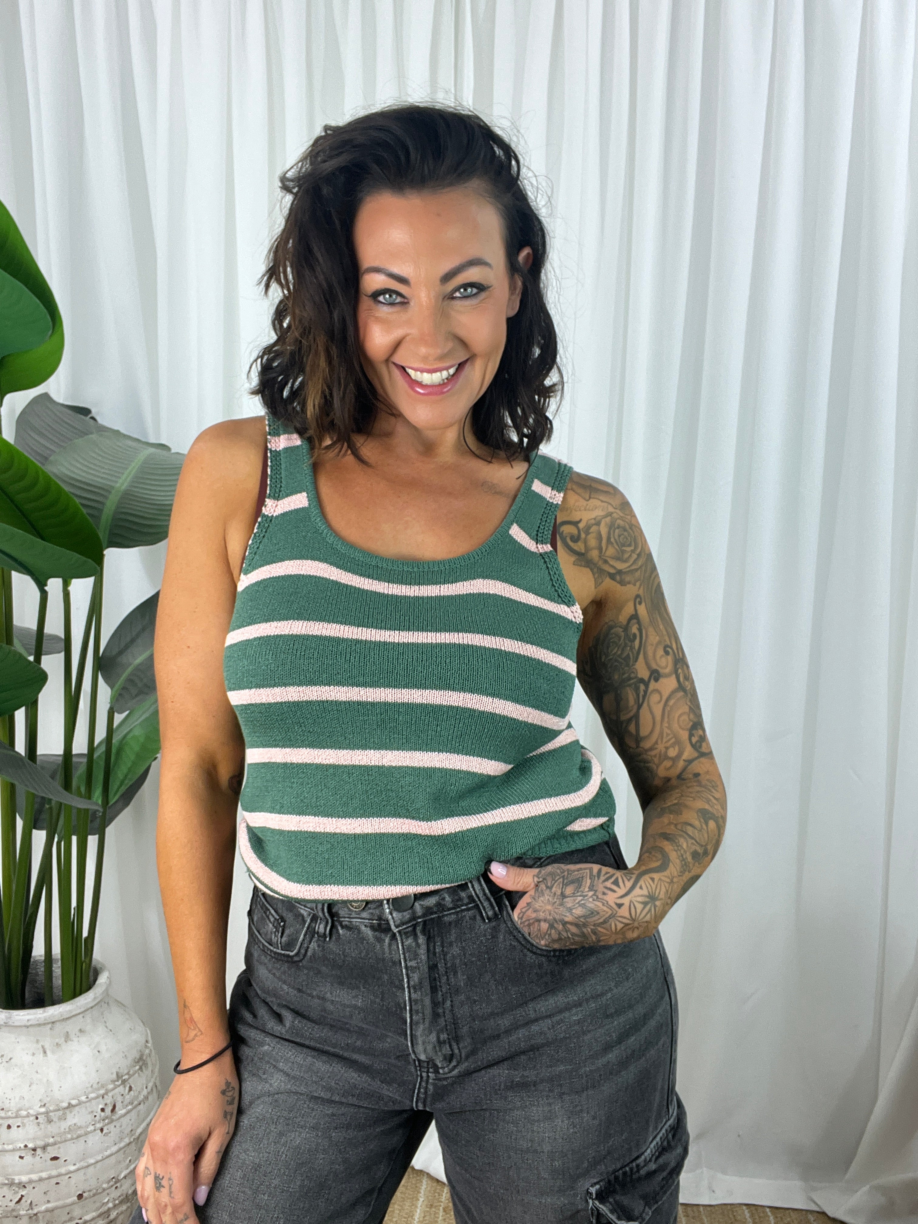 Cinta Knit Singlet - Green