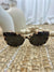 Step up your style game with our Chelsea Sunglasses. These chic cat-eye sunglasses feature a black lens, a tortoise shell frame, and elegant gold arms, making them a perfect accessory for any fashion-forward individual.