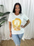 Introducing the Peace Tee—a cute graphic tee perfect for your inner hippy. This stretchy, classic cut tee features a peace hand symbol surrounded by a vibrant yellow rainbow, cheerful sunflowers, and a serene dove. Boldly written across the design are the words "Peace Now." Embrace your inner peace and spread good vibes with this charming tee. Ready to feel the love?