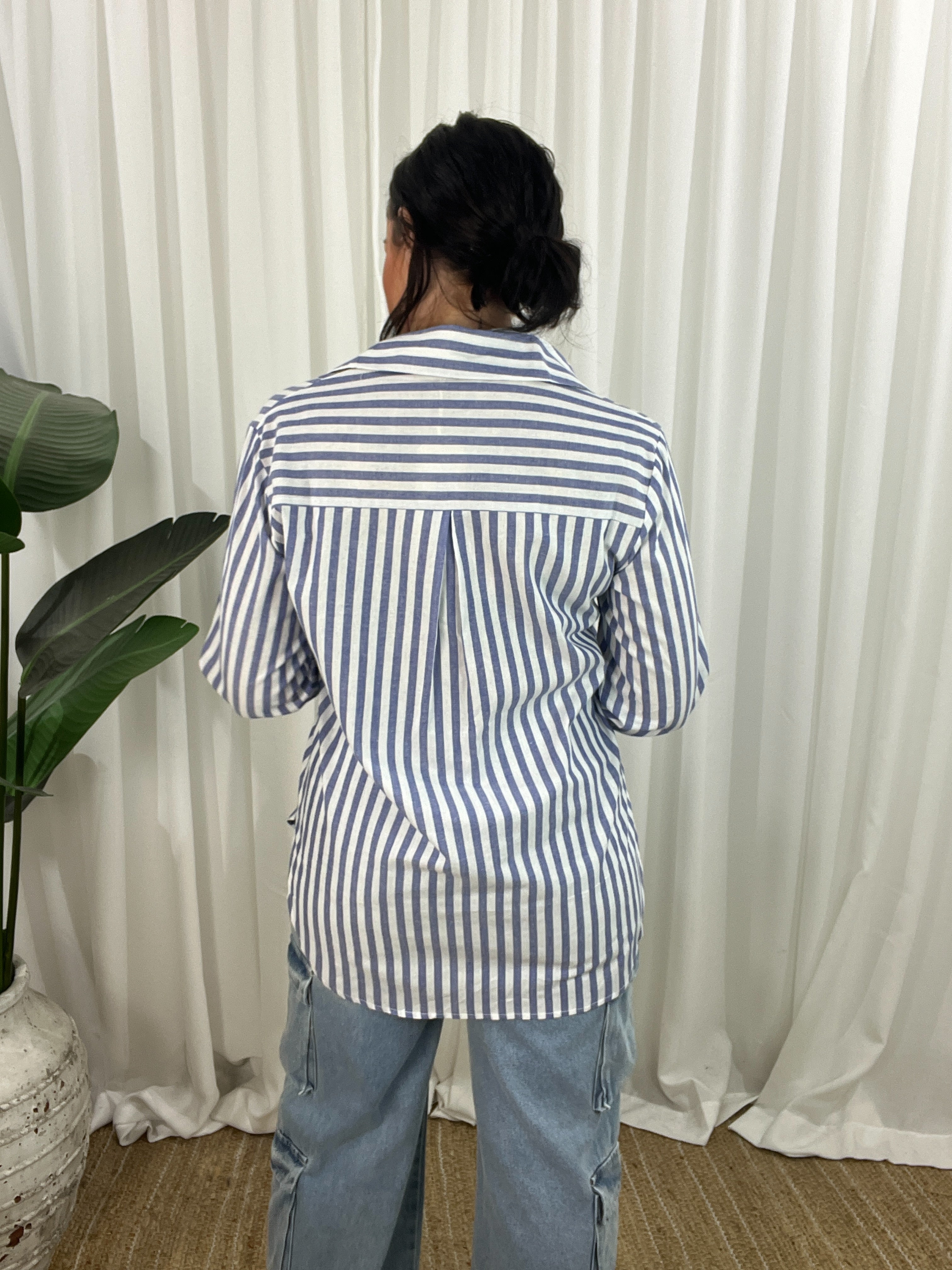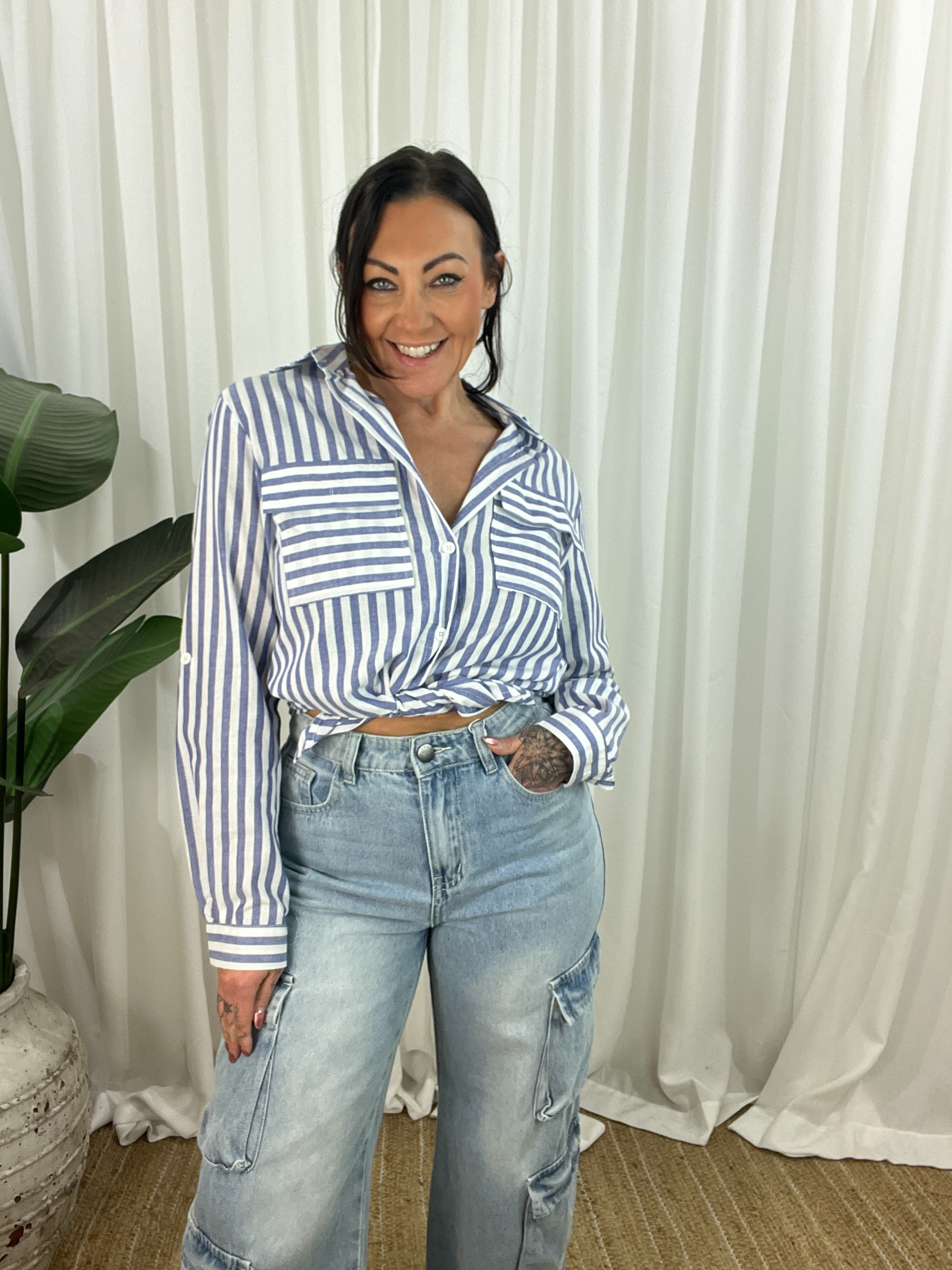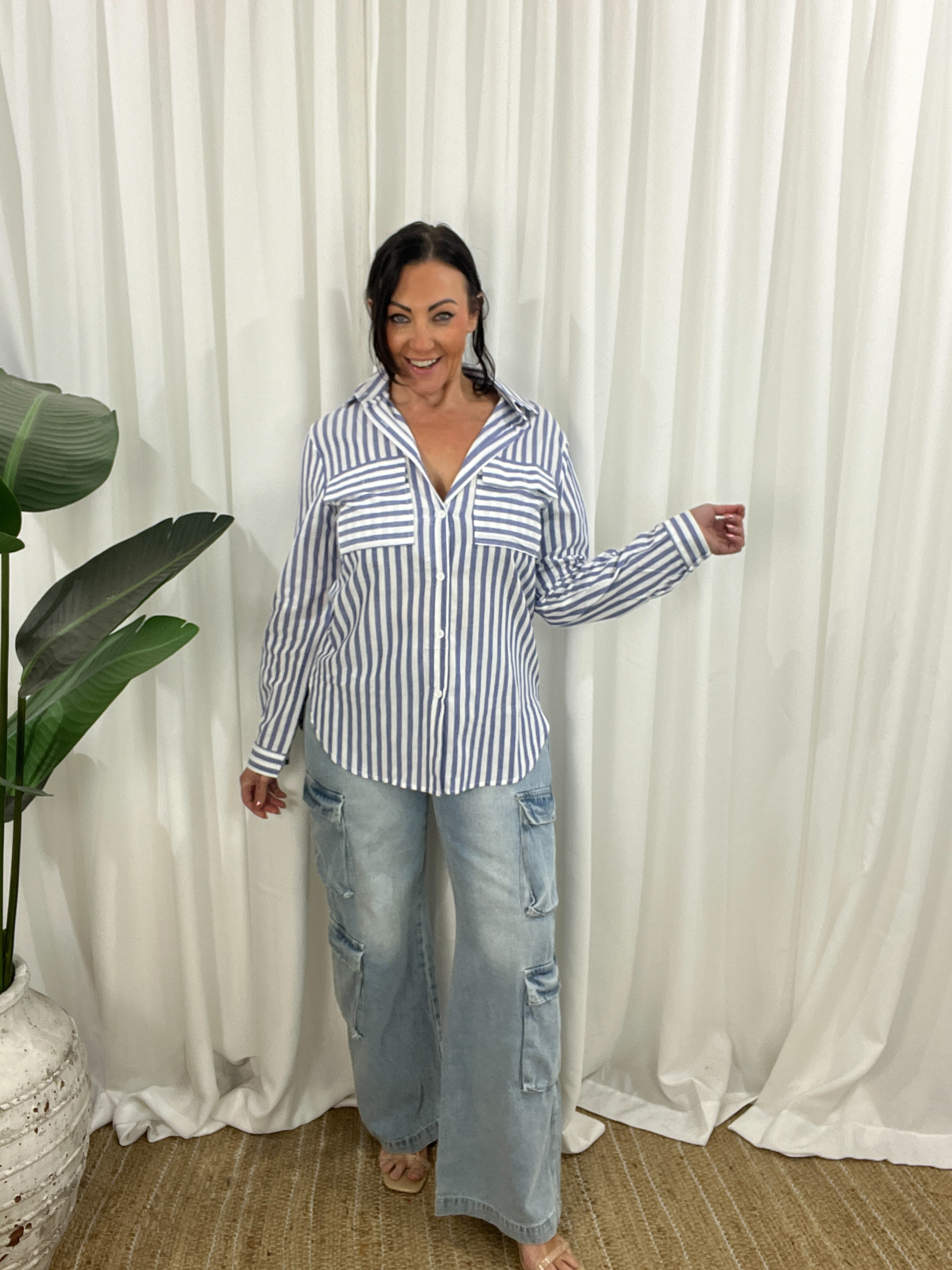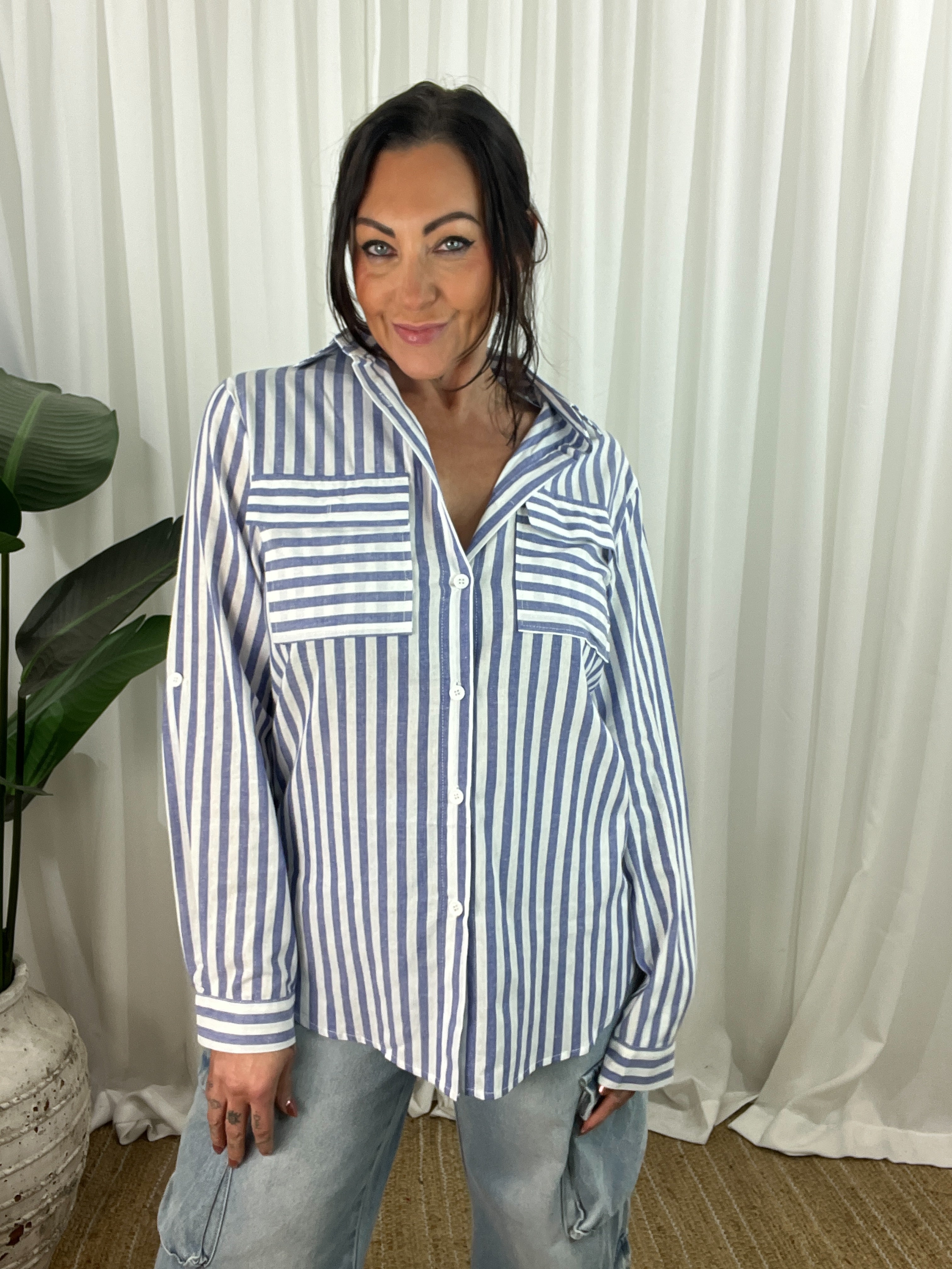 The Miley Shirt brings effortless polish to everyday dressing. Made from 100% cotton, it’s lightweight, breathable, and designed to move with you. A longline silhouette with a scooped hem adds flow and coverage, while the crisp vertical stripes contrast playfully with horizontal chest pockets for a modern twist. Functional details like a button-down front, collar, and convertible sleeves make this a wardrobe essential with styling flexibility built in.