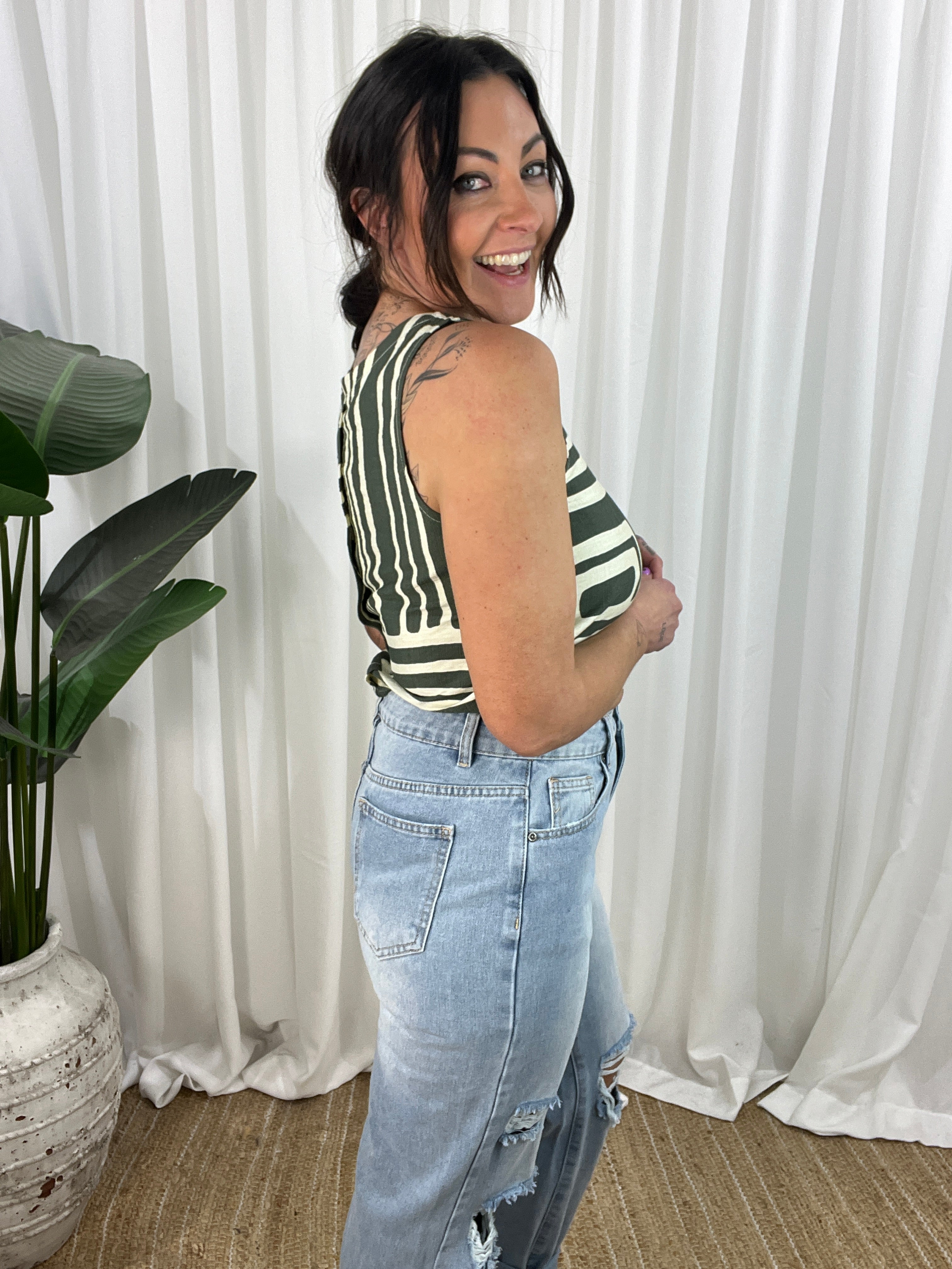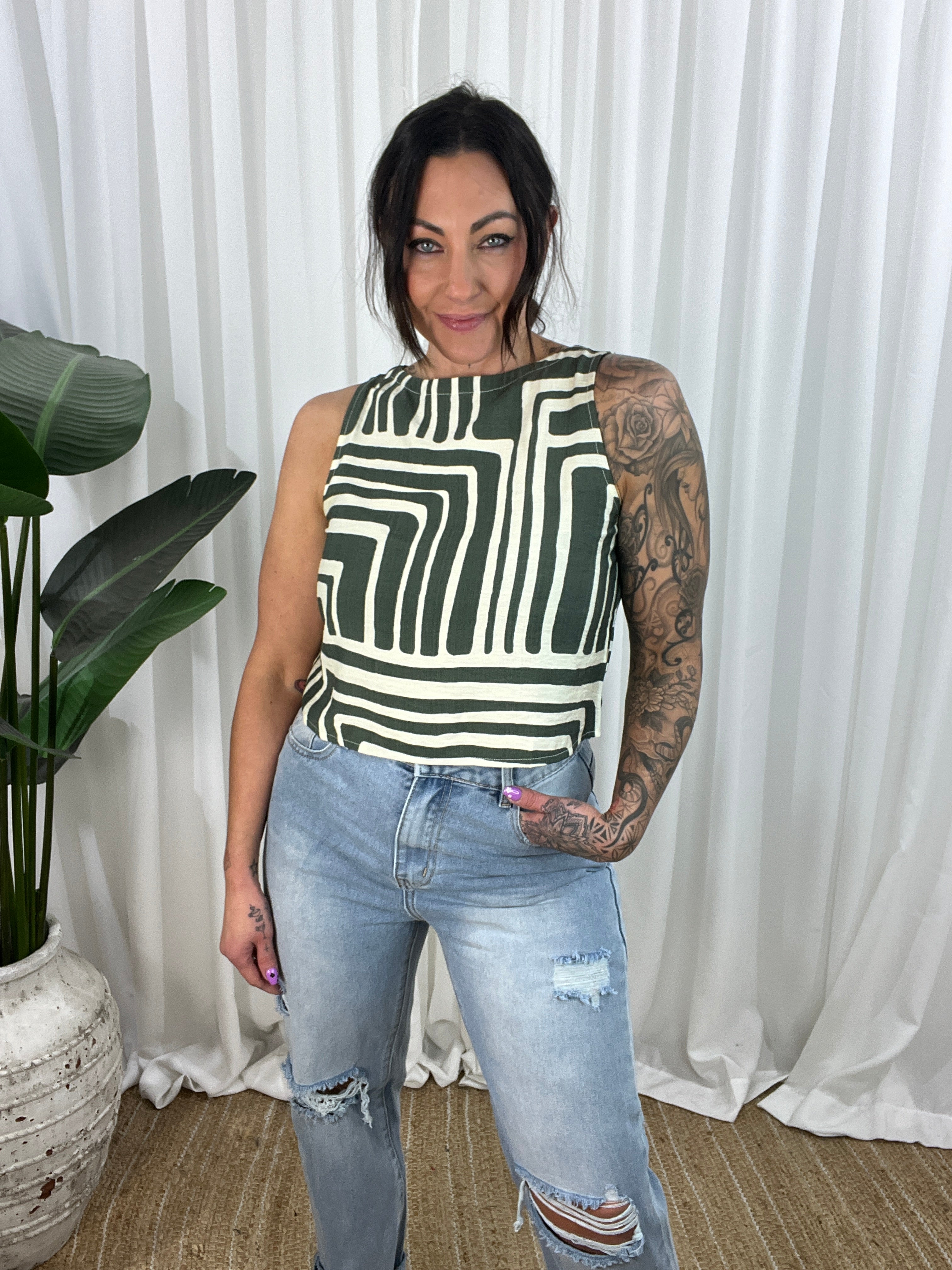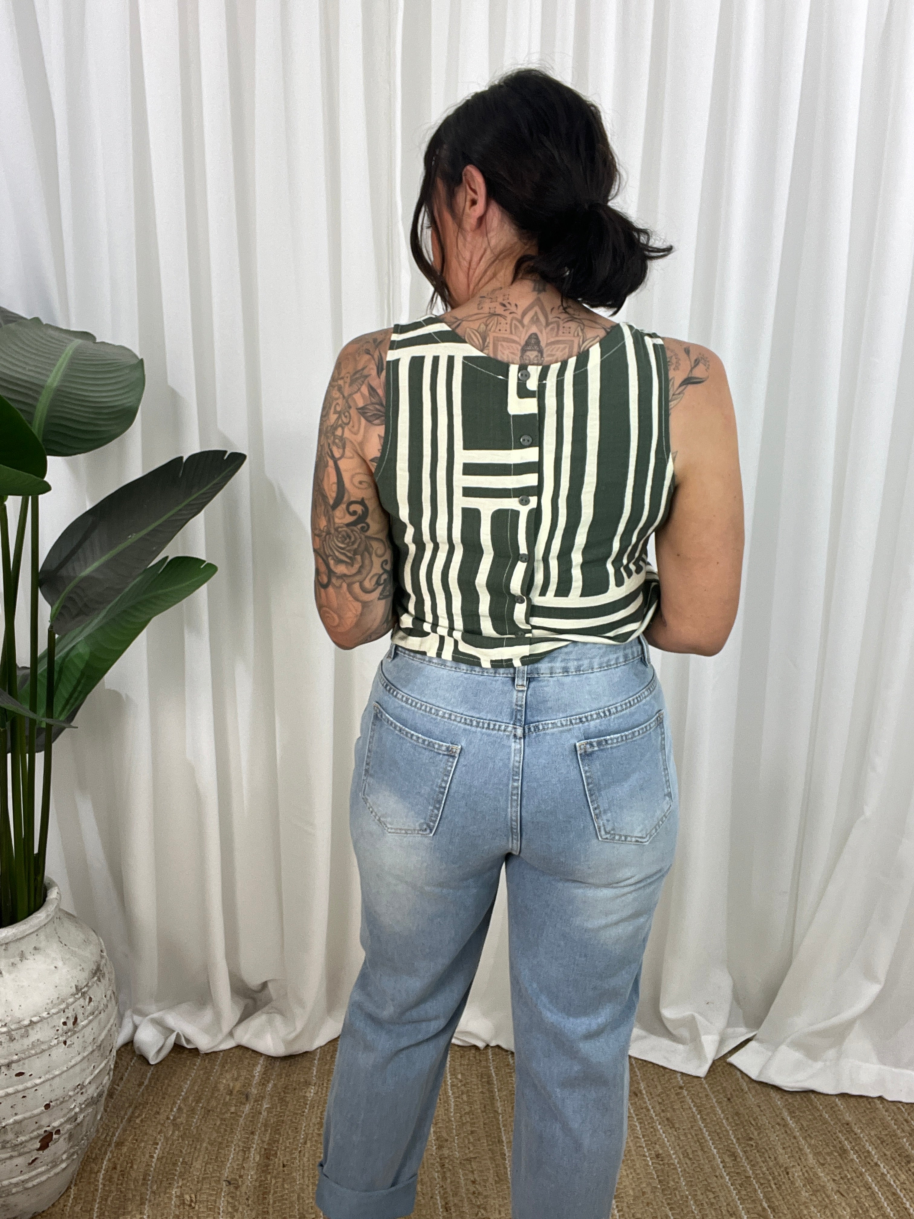 The Murphy top is a sophisticated light weight sleeveless top. This versatile Top is perfect for the spring/summer season. The top is a cropped design with a high neckline and non-functional buttons down the back for added style. Thicker straps ensure bra straps are covered, making it the perfect little top. Whether you’re heading out for a casual outing or a special event, this will make you look and feel fabulous.