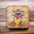 • Hand-tooled yellow flower design with intricate details and vibrant colors.