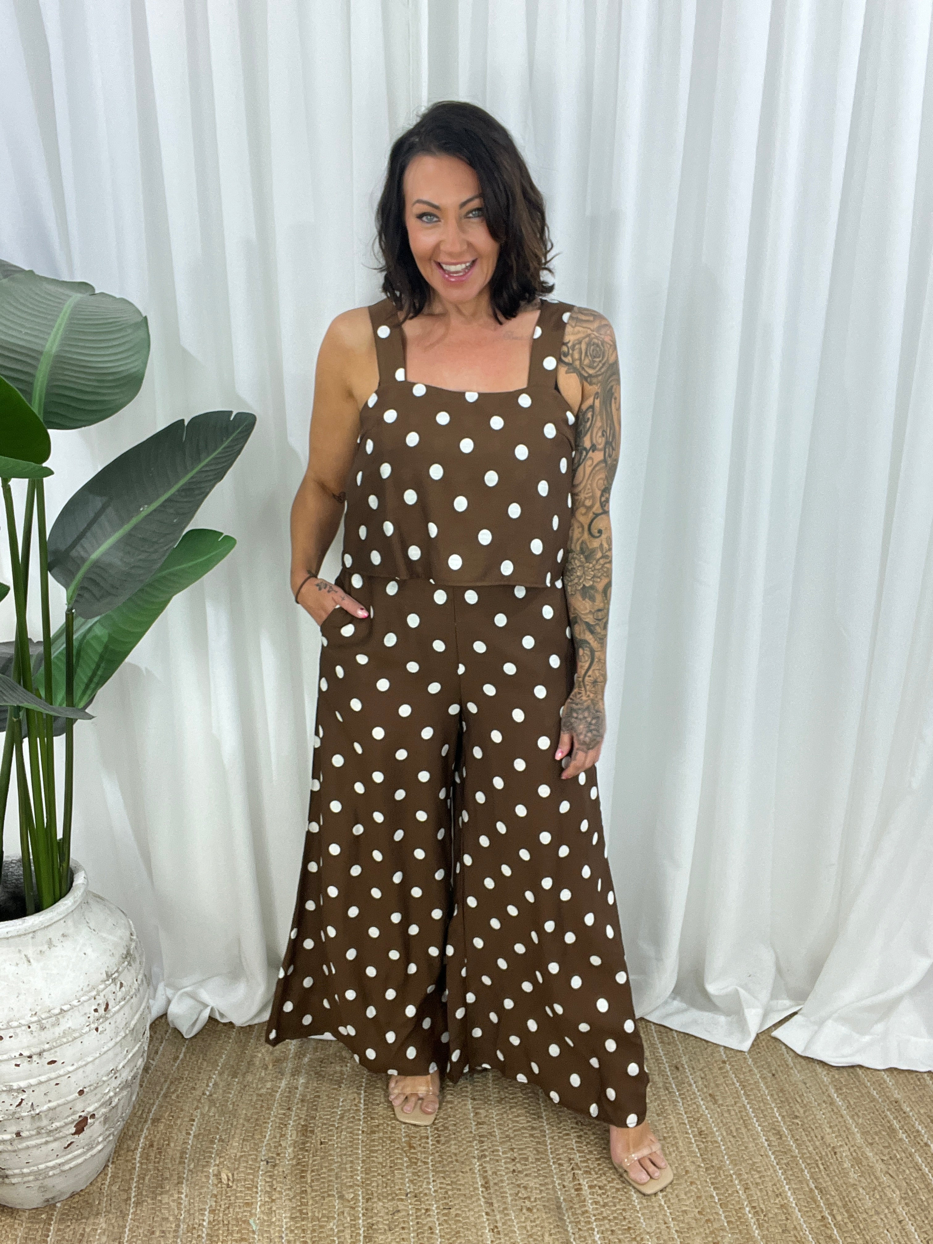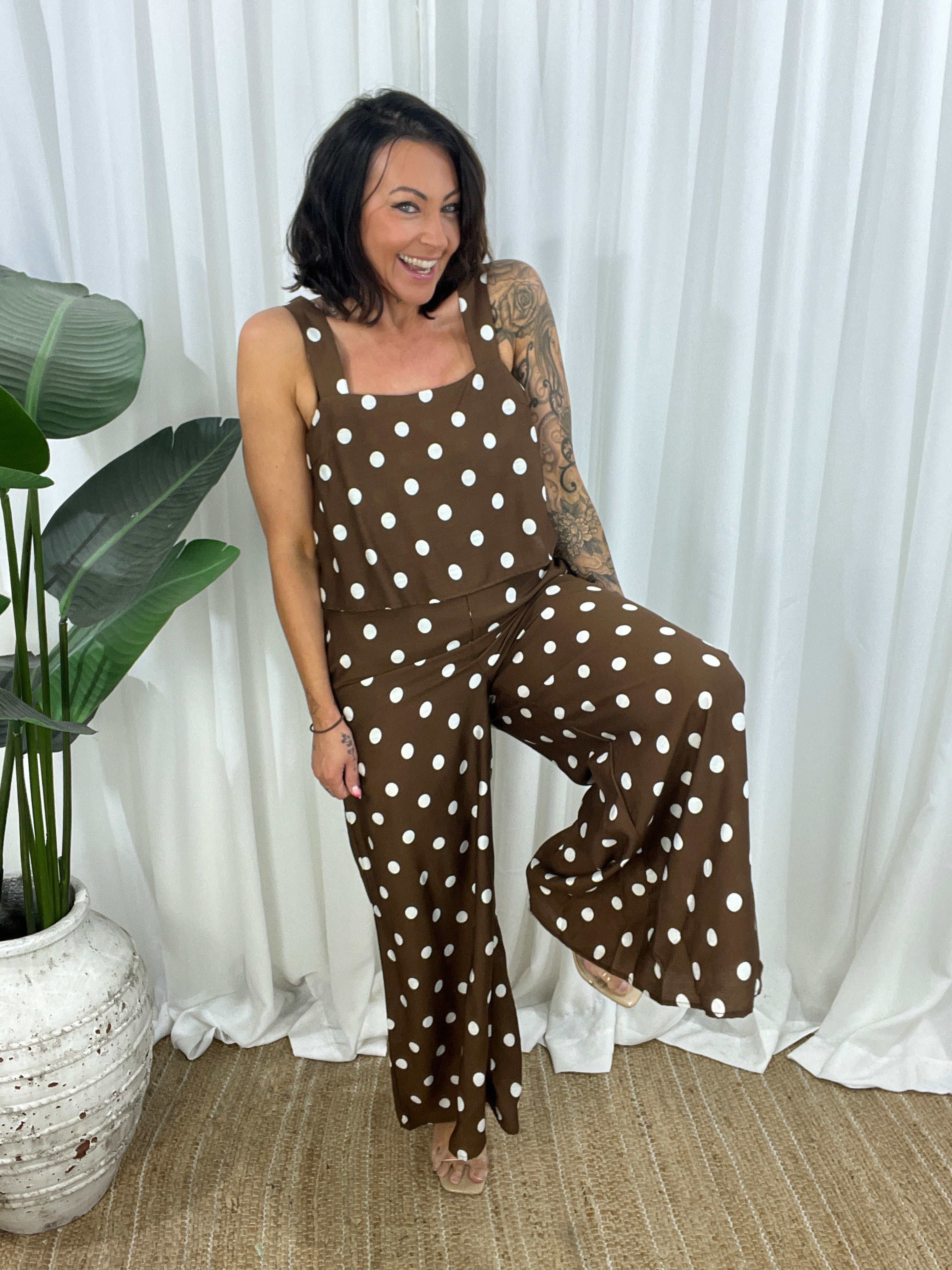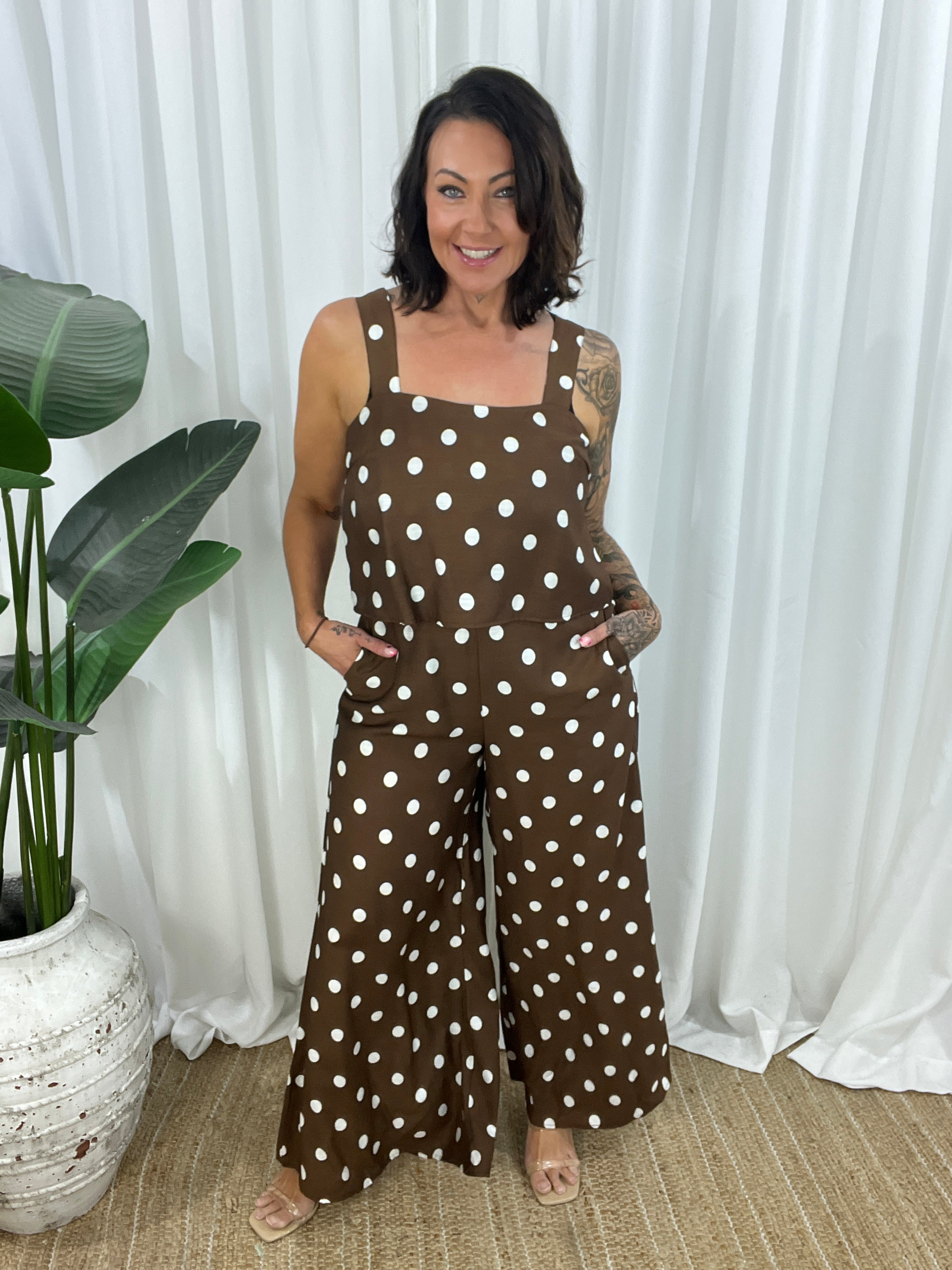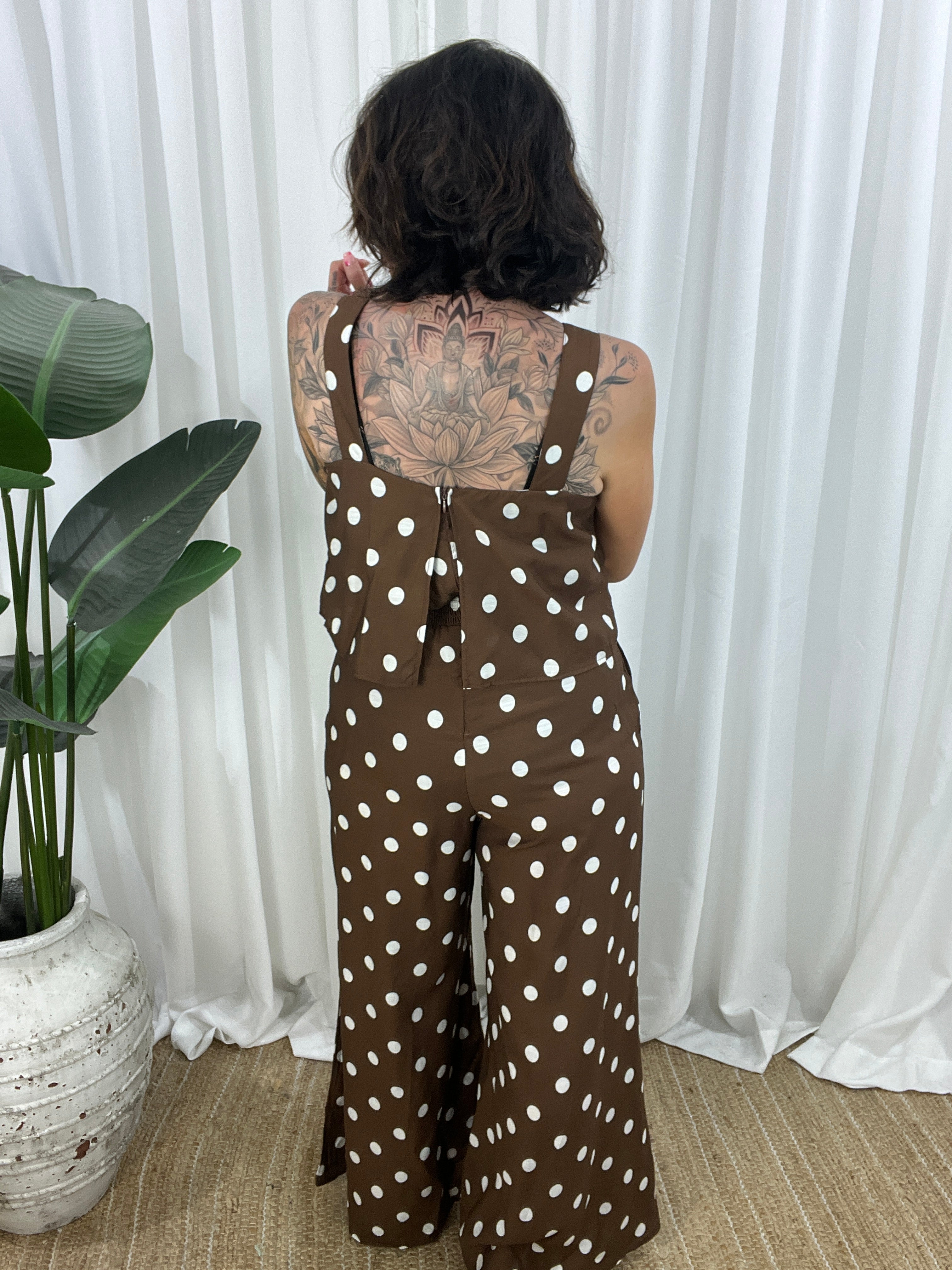 - Design : Jumpsuit, Slightly Wide Leg: Bib Detail: Elasticated Rear Waist: Rear Zip Closure: Functional Pockets. Broen base with cream spots