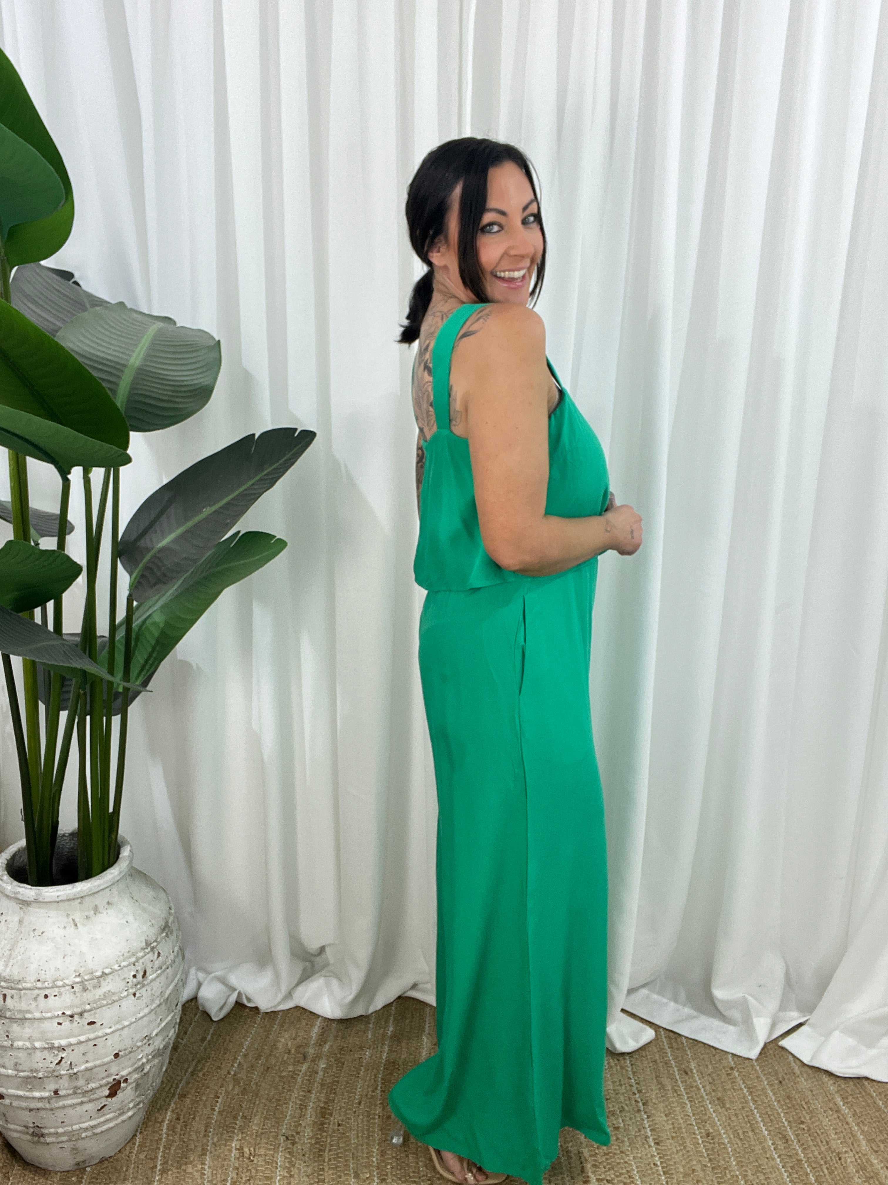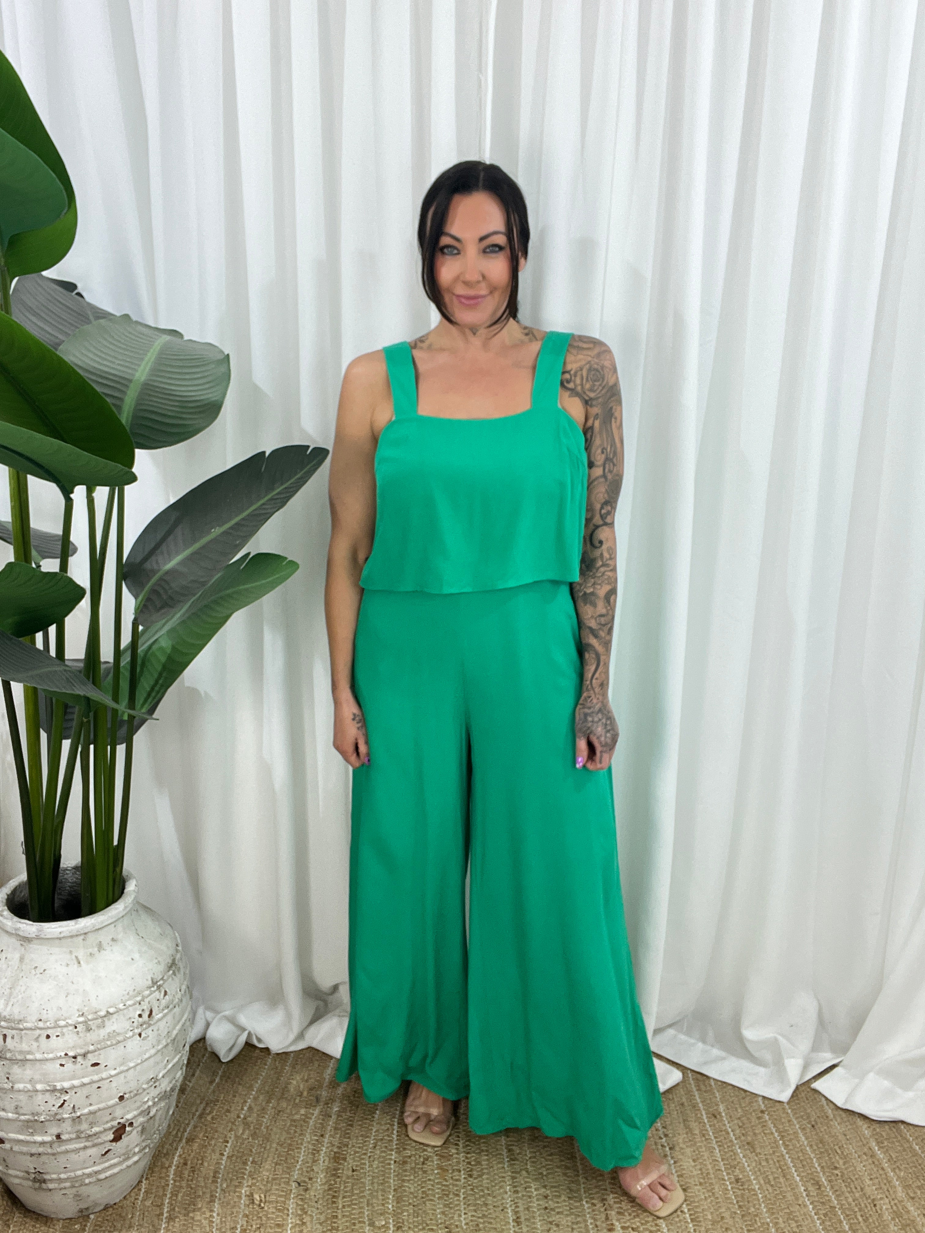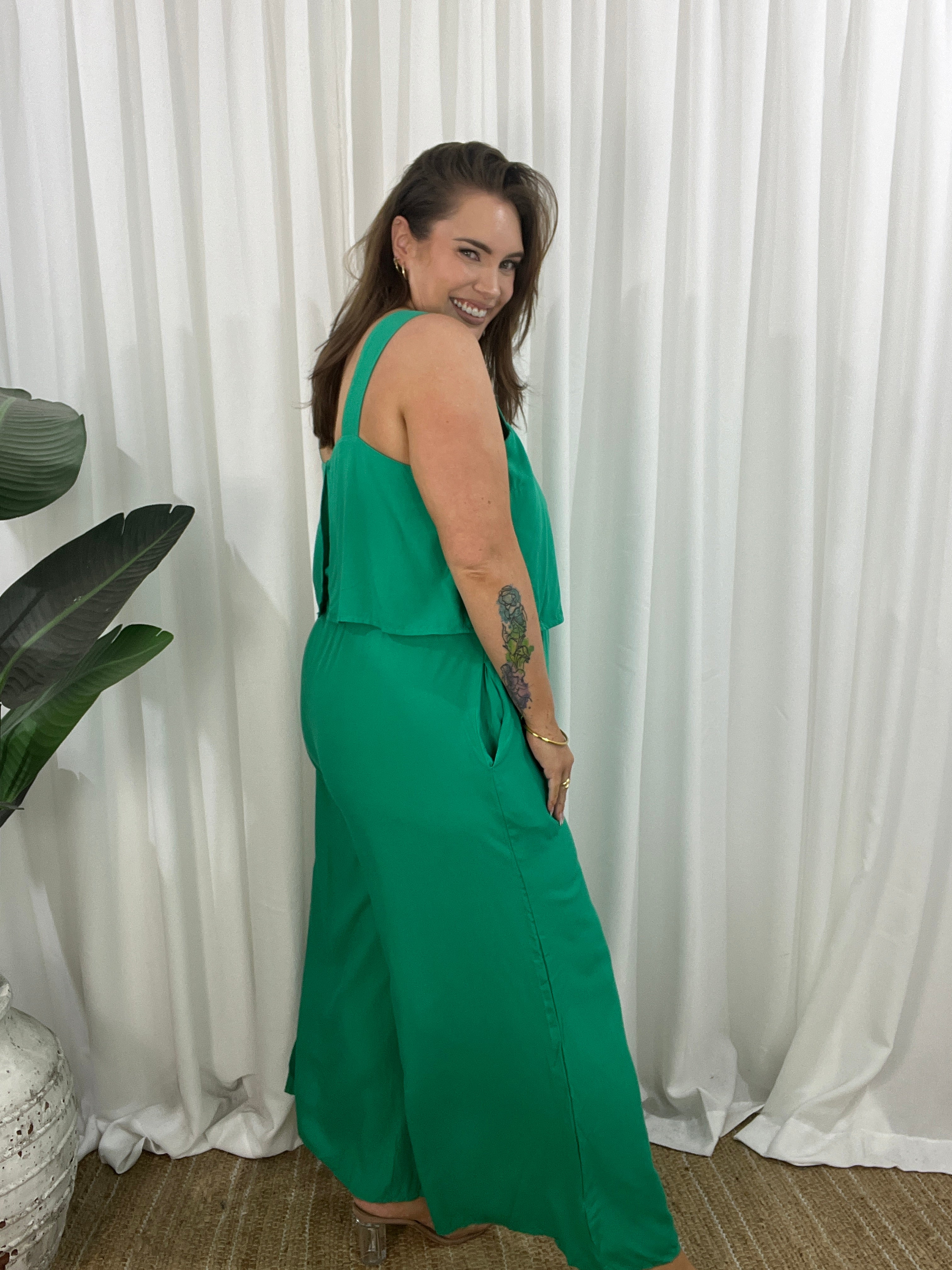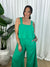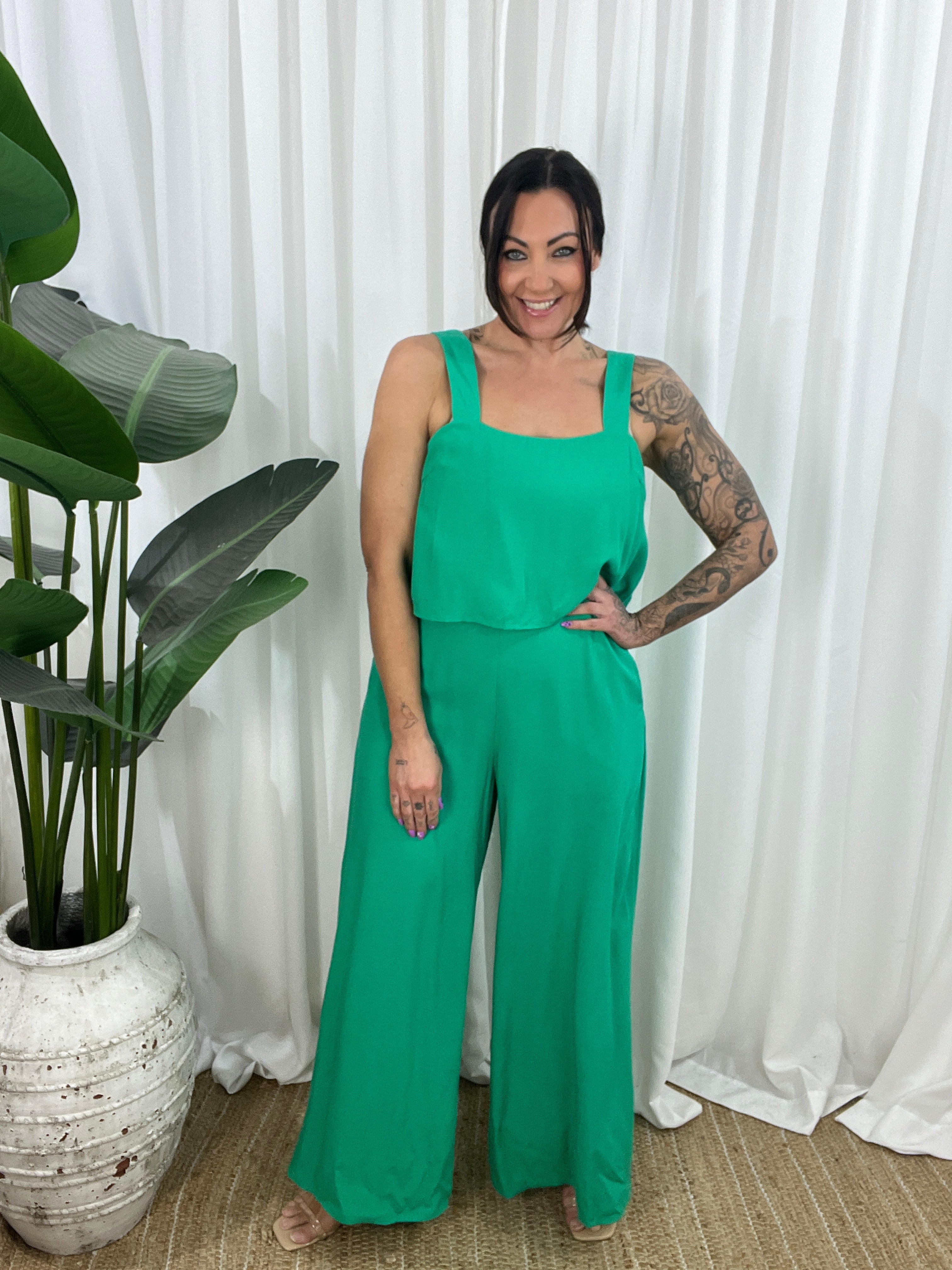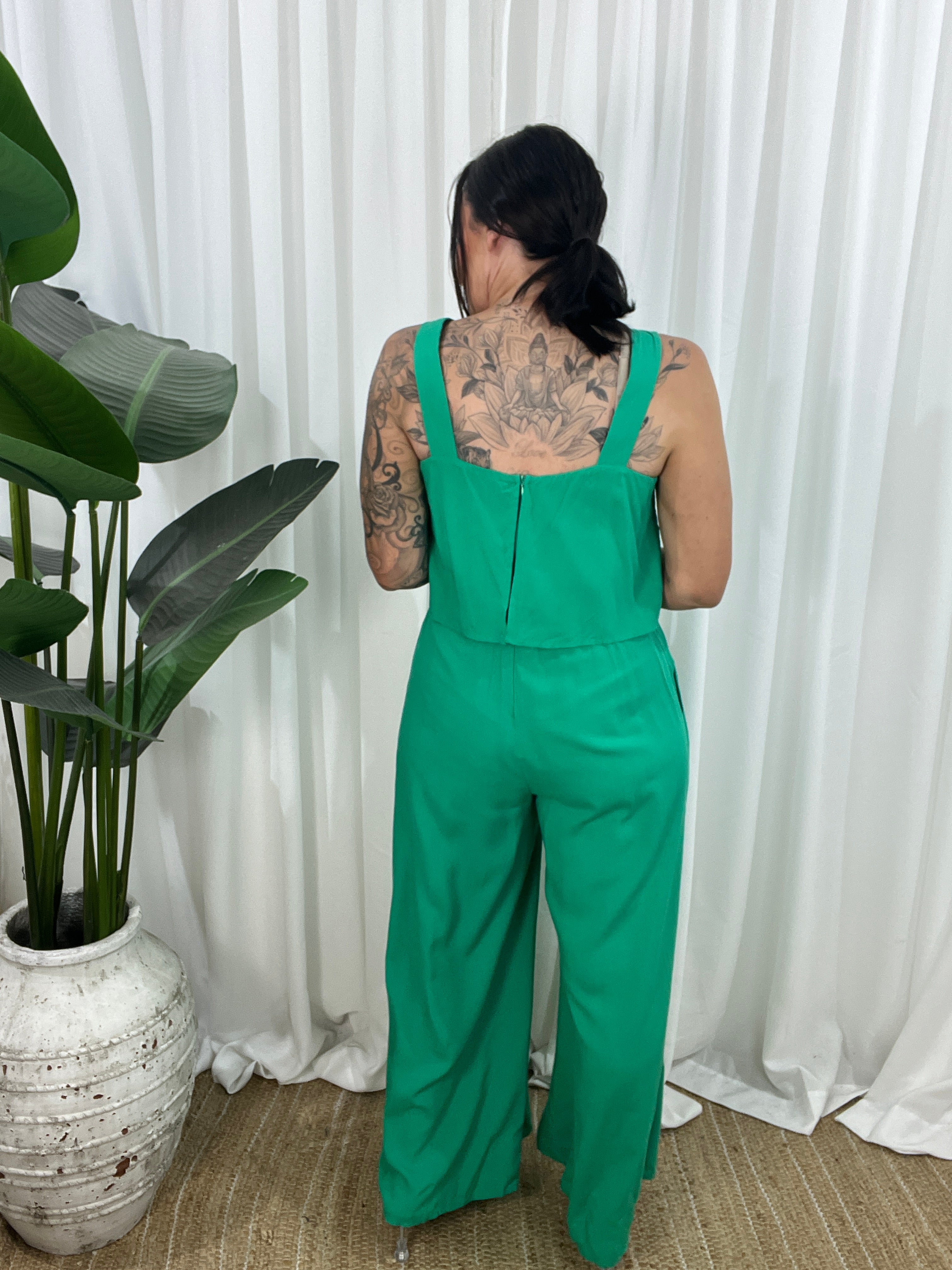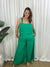 Introducing the Alice Jumpsuit, a stunning slim-fit piece that effortlessly combines elegance and comfort. This jumpsuit features a fitted bodice with a slightly wide leg, creating a flattering silhouette that suits all body types. The cute bib detail on the bust and thick straps ensure you can wear your favorite bra with confidence.