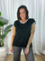 - Design : Relaxed cut, comfortable light weight tight knit design and a little stretch. Rolled hem. Black with a whire black pattern neck and sleeve trim