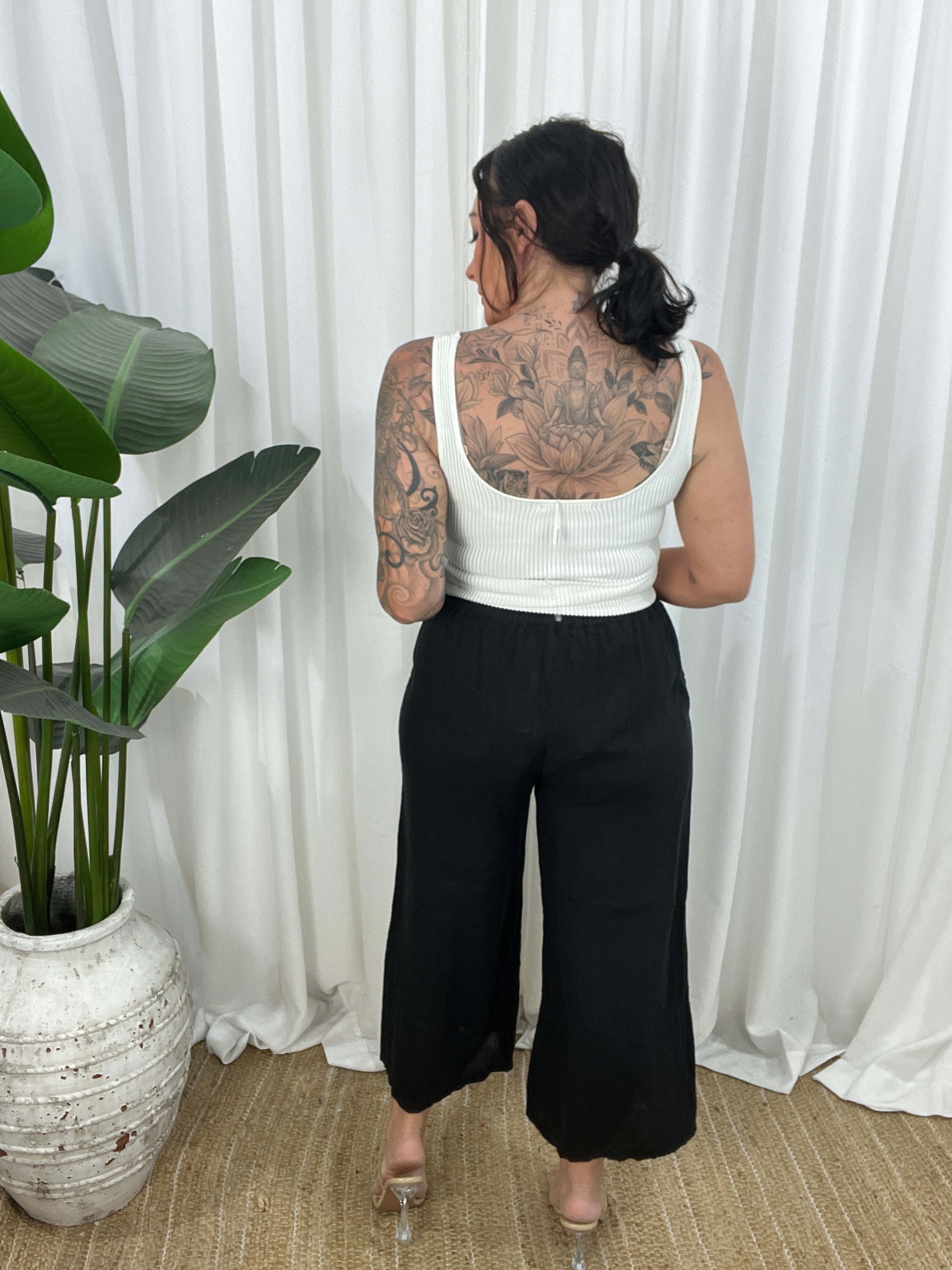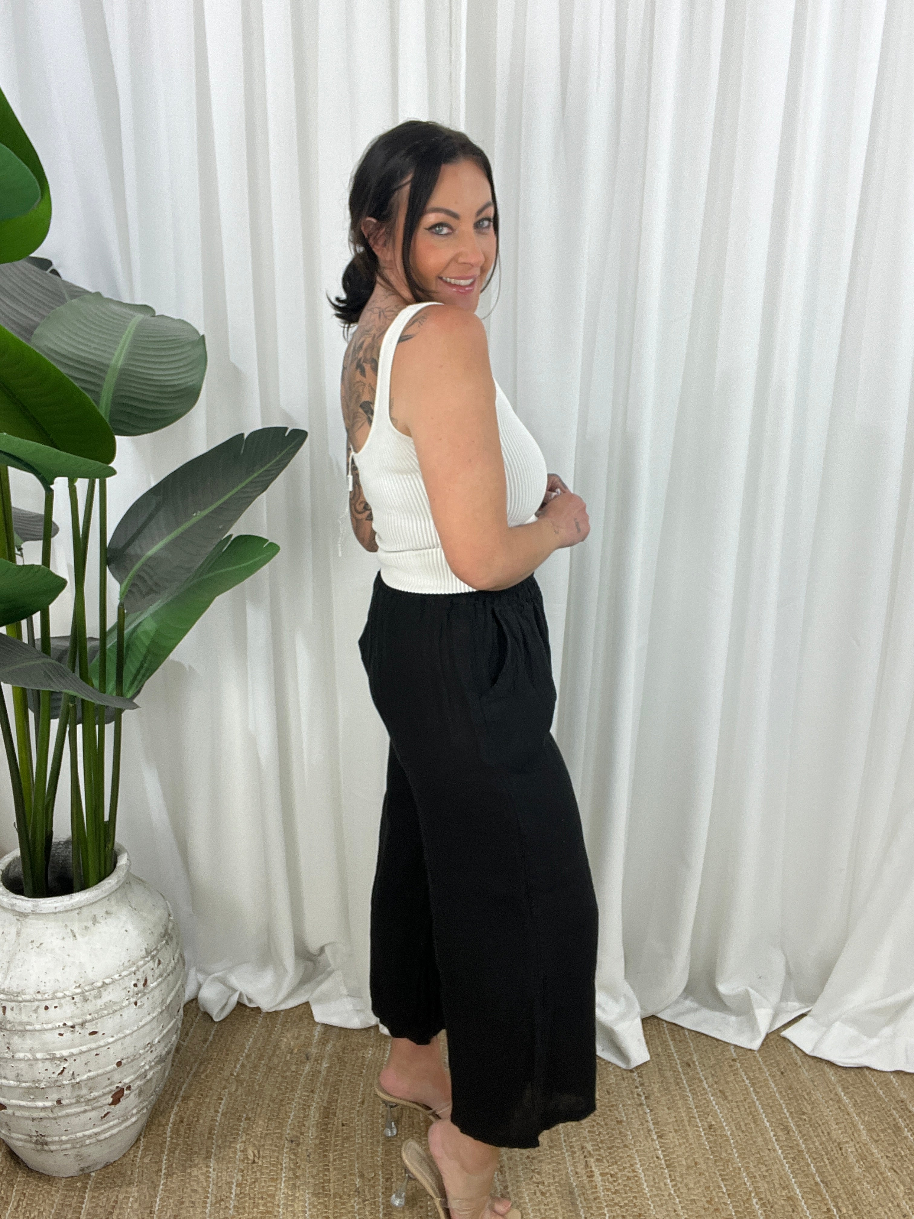Light, breathable, and made for movement, the Lainy Linen Pants are your everyday go-to for effortless style and comfort. Crafted from lightweight linen, these 3/4 length pants feature a relaxed fit, elasticated waistband, and side pockets for that perfect blend of function and flow.