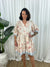 - Details: Manderin Collar with tie detail, empire line, drop waist, contrast pattern hem