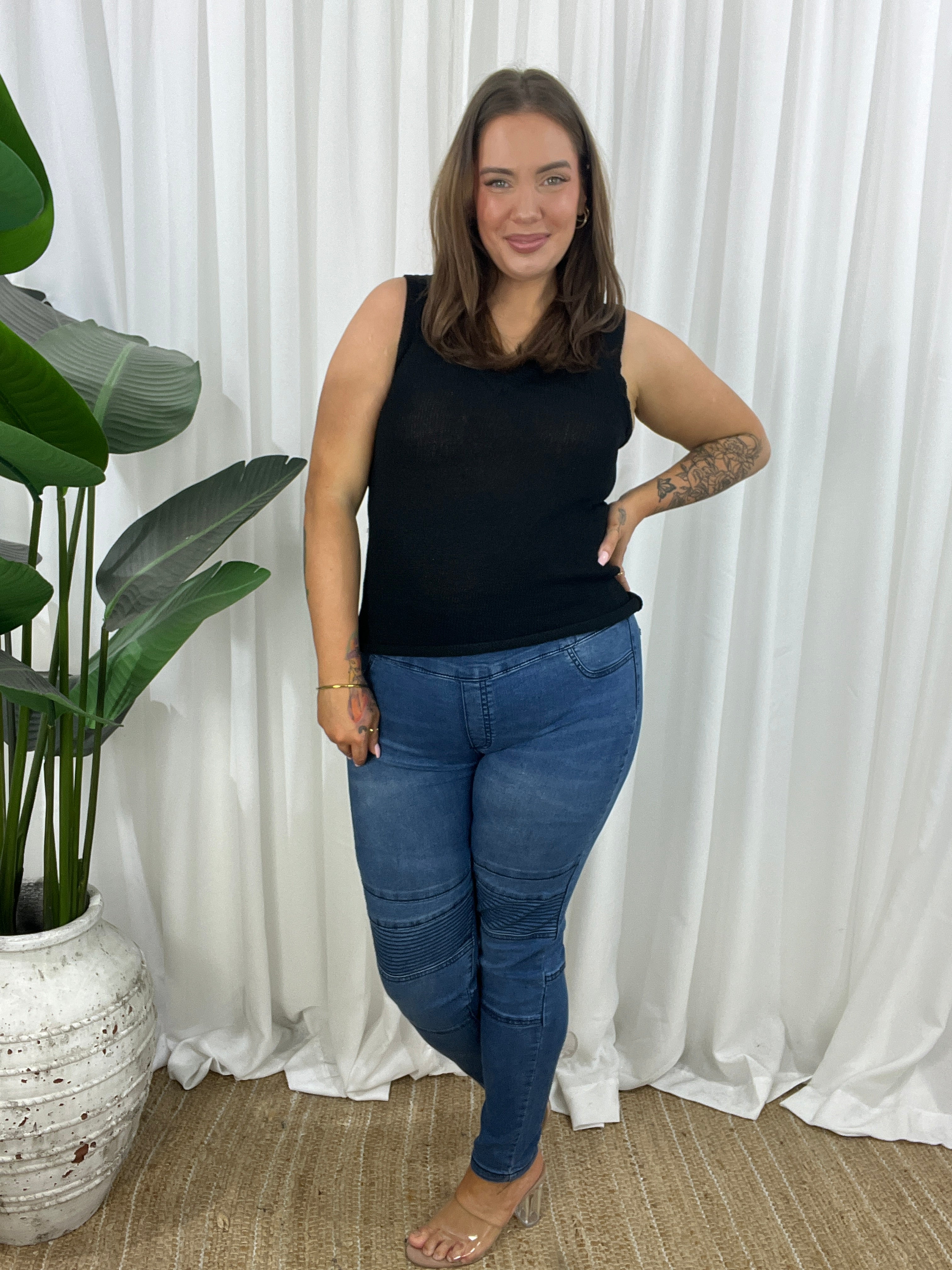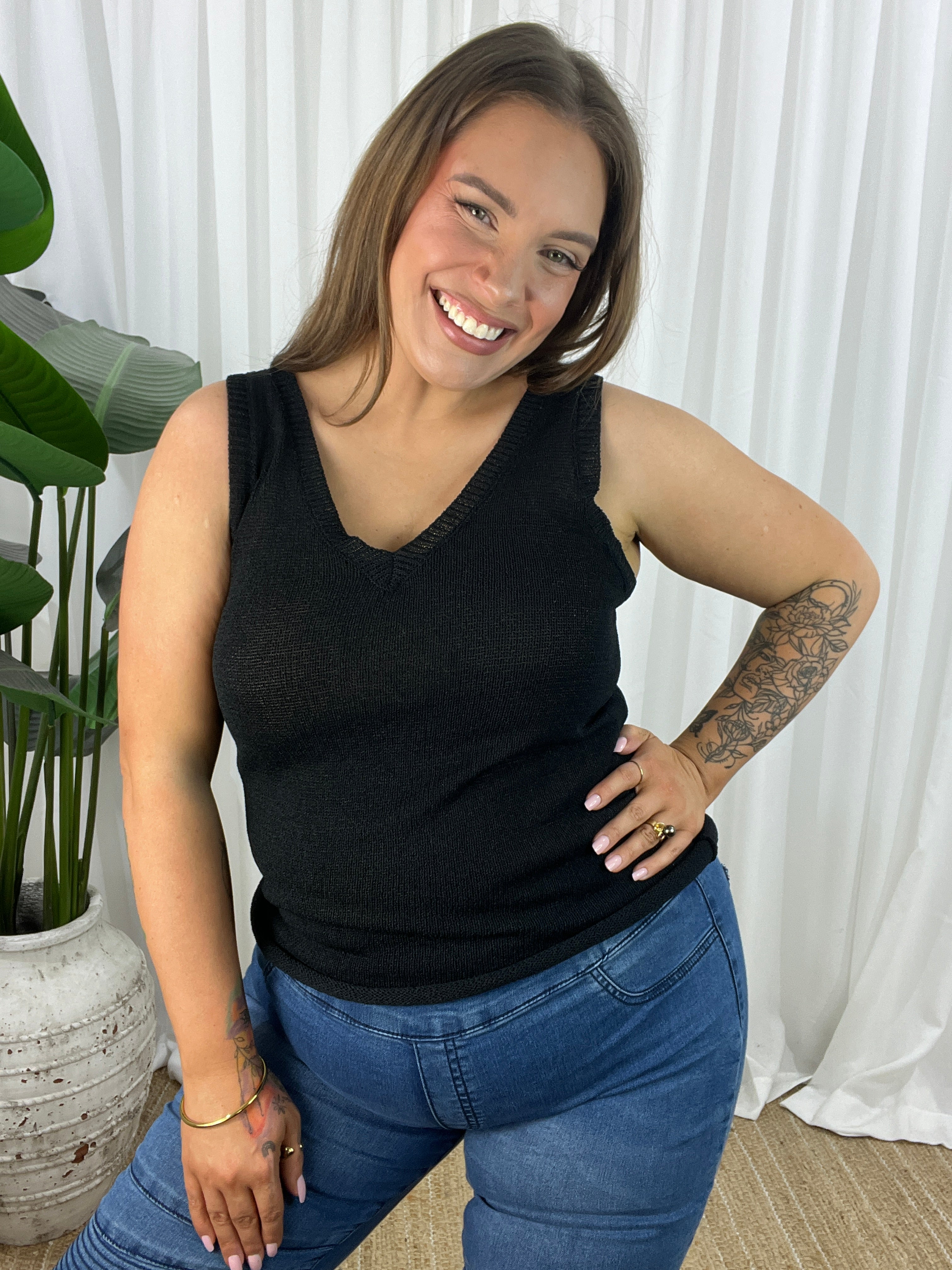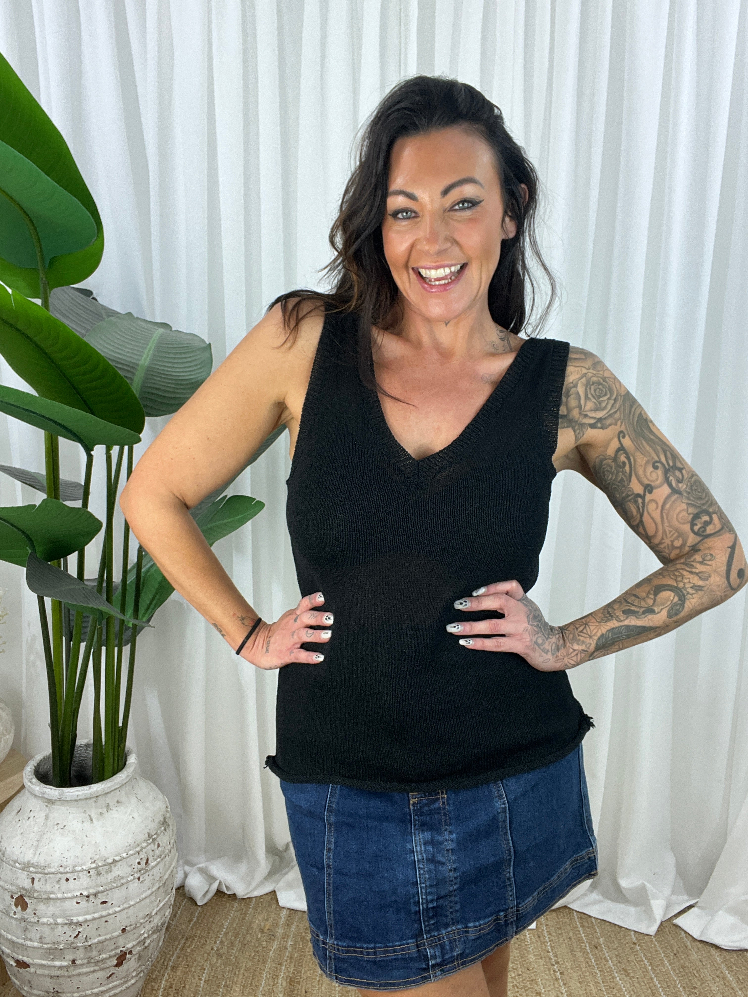 Lightweight, laid-back, and endlessly versatile—the Presha Singlet Top is your go-to for effortless layering and warm-weather ease. Crafted from a loose knit with gentle stretch, this sleeveless singlet features a flattering V neckline, adjustable straps, and a rolled hemline for a relaxed finish.