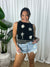 - Cropped Top: High neckline with non-functional buttons for a chic look.