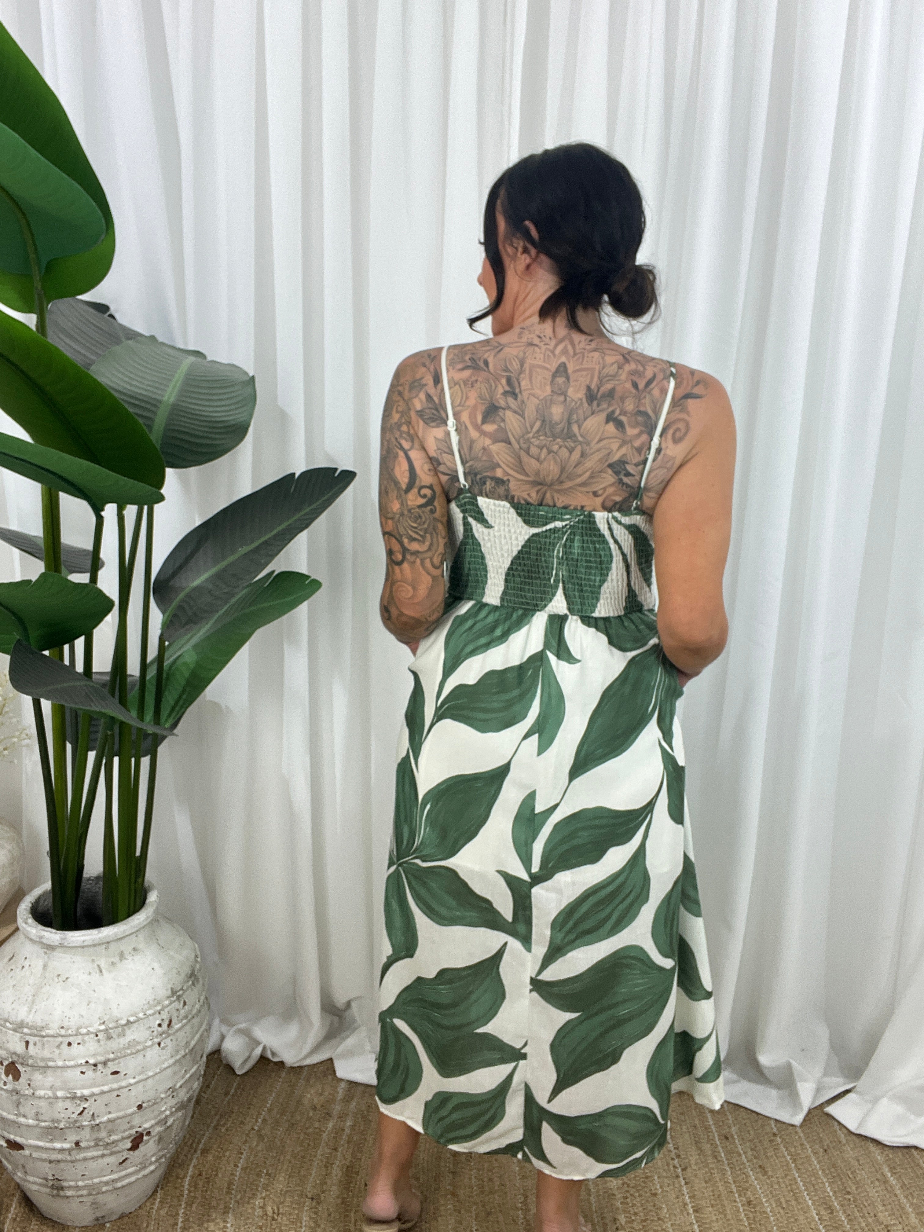 A stretchy elasticated panel at the back ensures comfort and shape, while side pockets add a touch of practicality to this dreamy design. Whether you're heading to brunch or beach, Vaga is your go-to for relaxed glamour. NOTE: Pattern Placement may differ from item to item