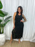 - Design : Cute midi-maxi length, comfortable slip dress with a little stretch, side splits and ready to sip cocktails at any moment. Black with a gold thread weaved through.